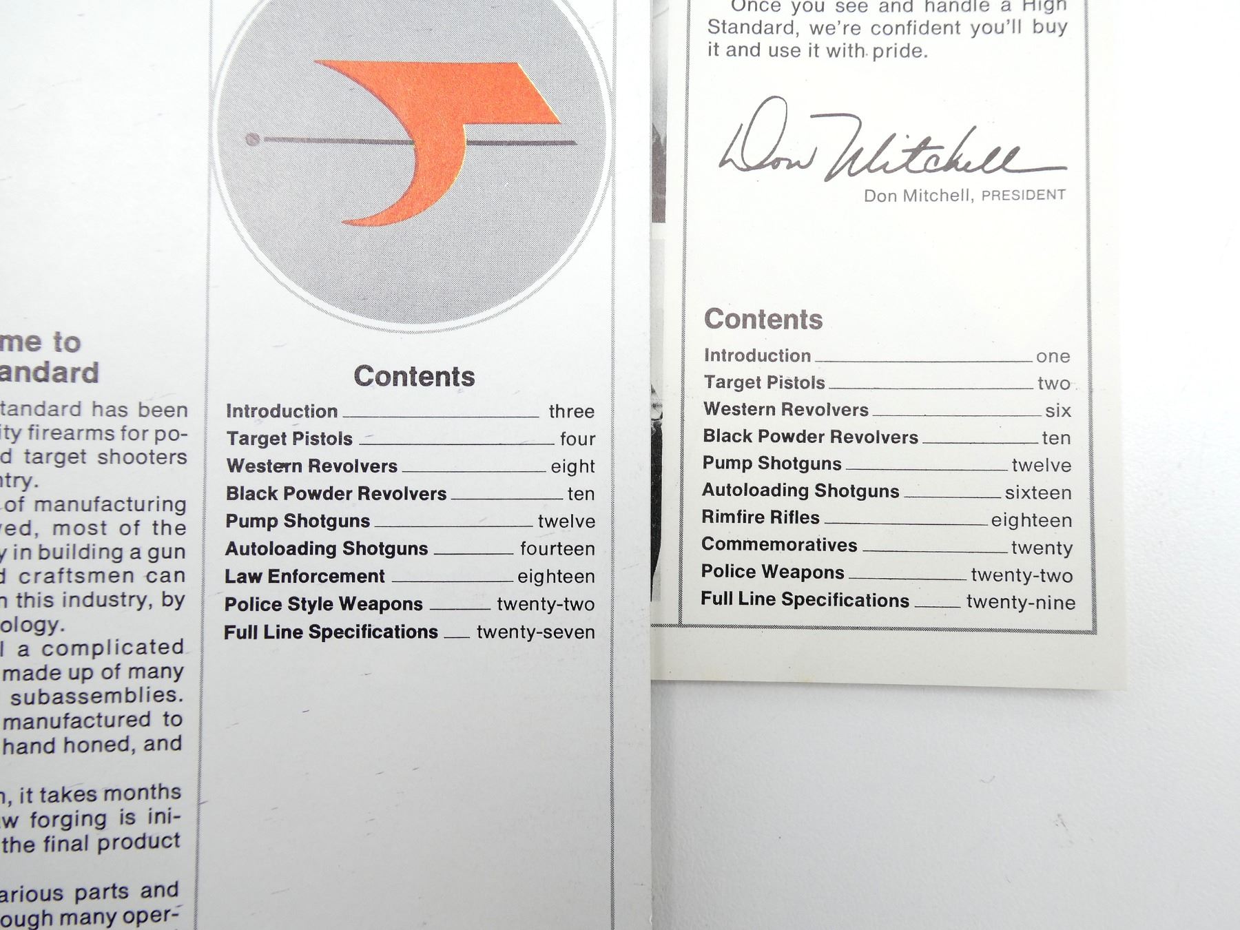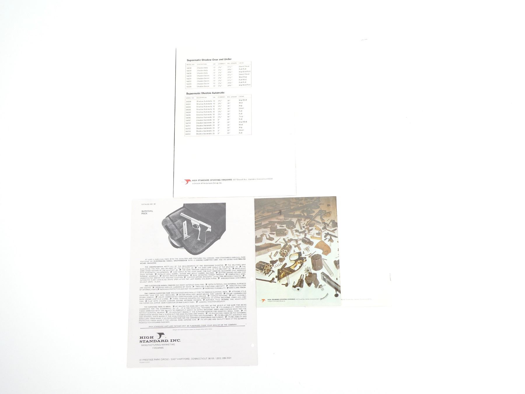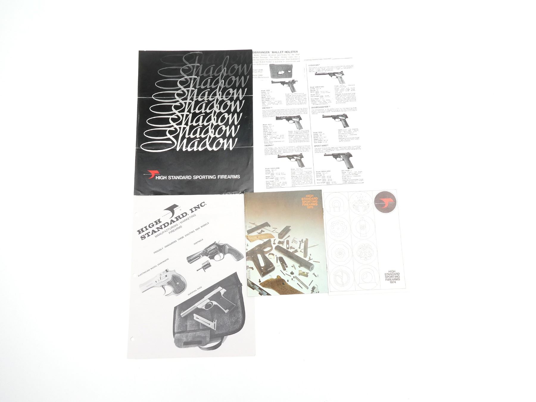 SOFT COVERS, LOT INCLUDES; (1) "HIGH STANDARD SPORTING FIREARMS 1975" BOOKLET, (1) "HIGH STANDARD SPORTING FIREARMS 1974" BOOKLET, (1) "HIGH STANDARD, INC. MANUFACTURING / MARKETING FIREARMS" BROCHURE, "HIGH STANDARD, INC. MANUFACTURING / MARKETING FIREARMS" FLIER & (1) "HIGH STANDARD SPORTING FIREARMS" BROCHURE. SEE PHOTOS.