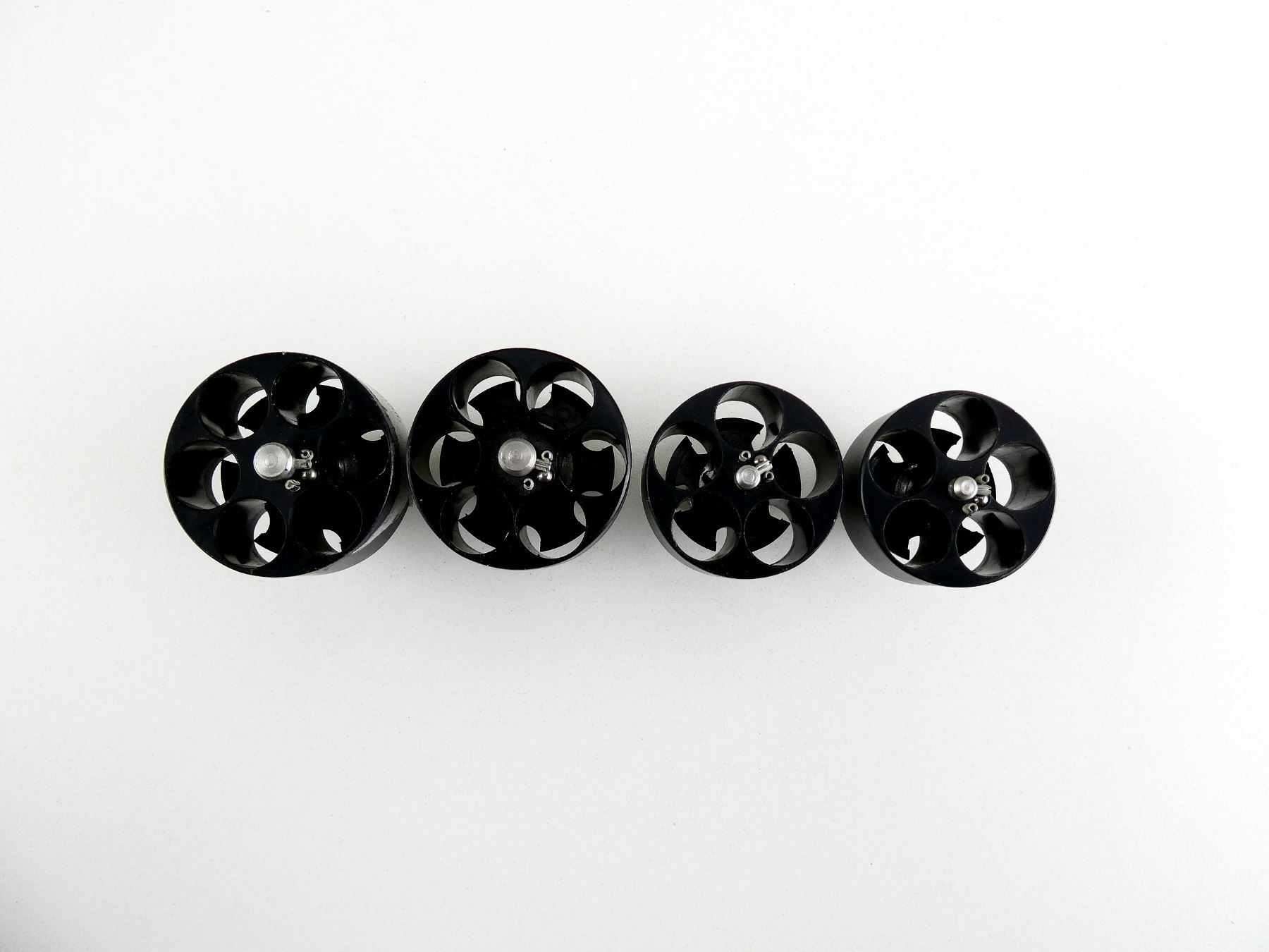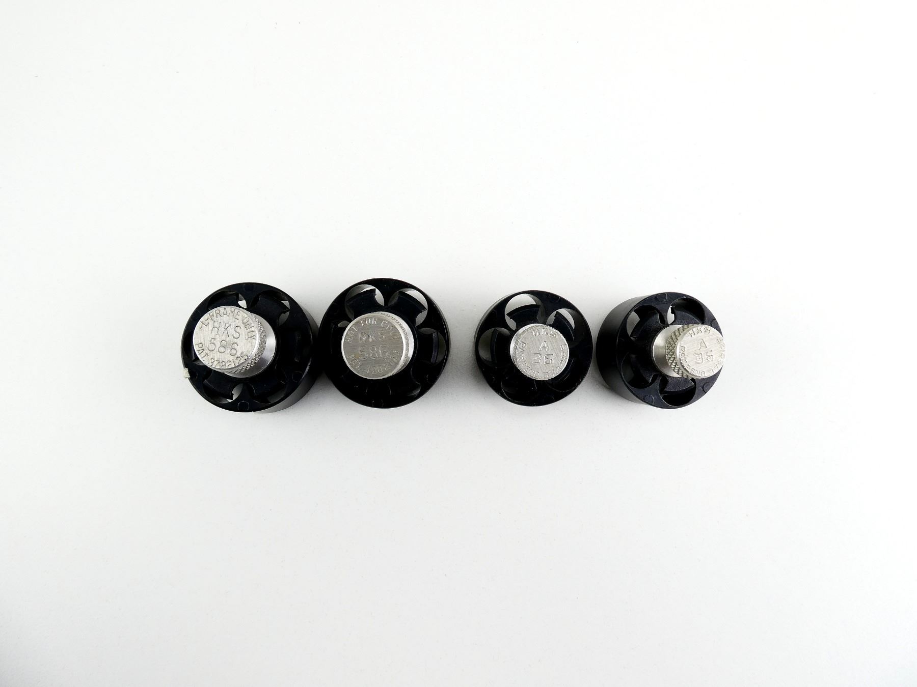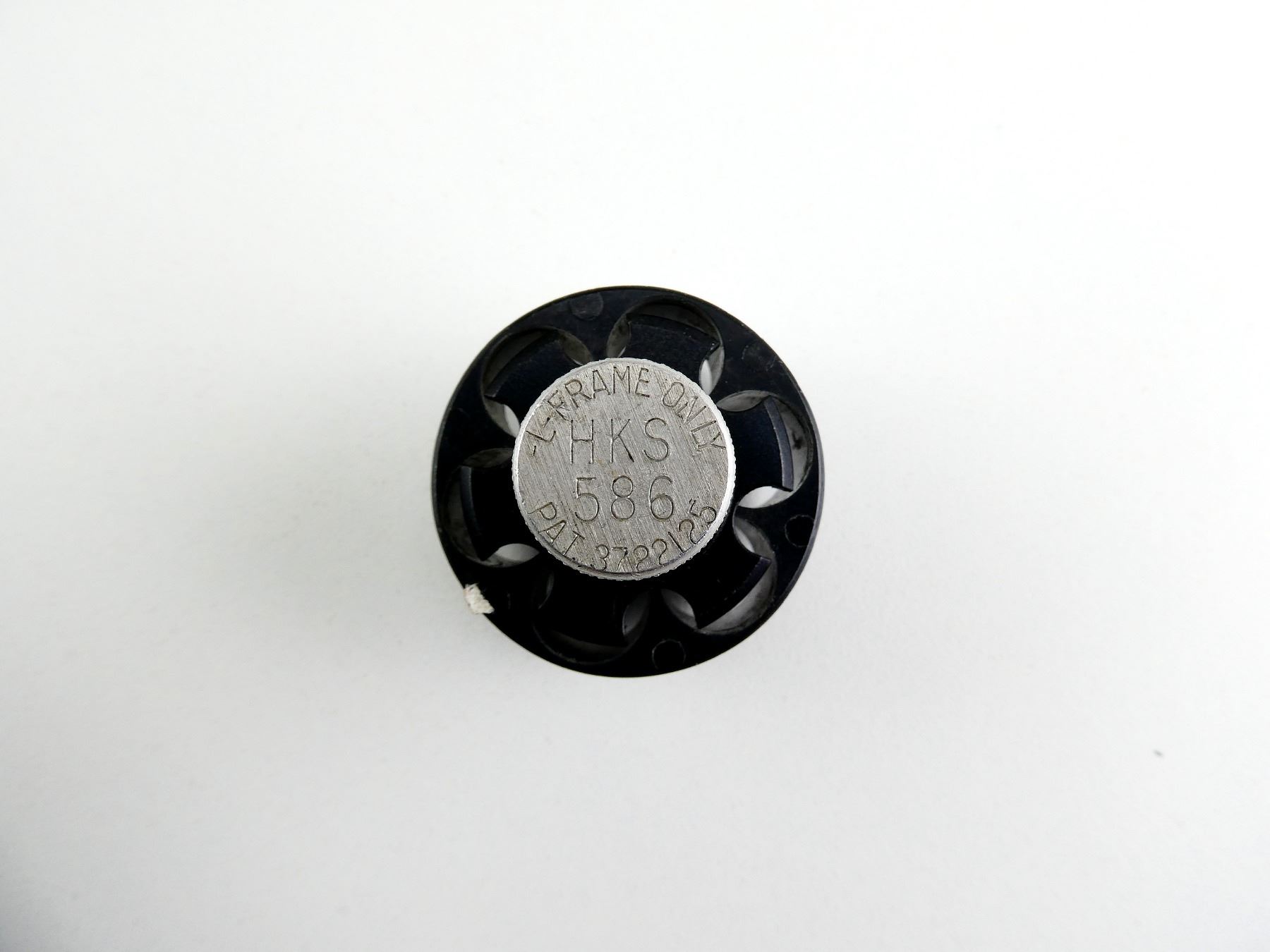 LOT INCLUDES; (2) HKS 586 .38 / .357 SPEED LOADERS, BLACK POLYMER & ALUMINIUM CONSTRUCTION, MARKED: "HKS, 586", ETC. & (2) HKS A 36 .38 / .357 SPEED LOADERS, BLACK POLYMER & ALUMINIUM CONSTRUCTION, MARKED: "HKS, A, 36", ETC. SEE PHOTOS.