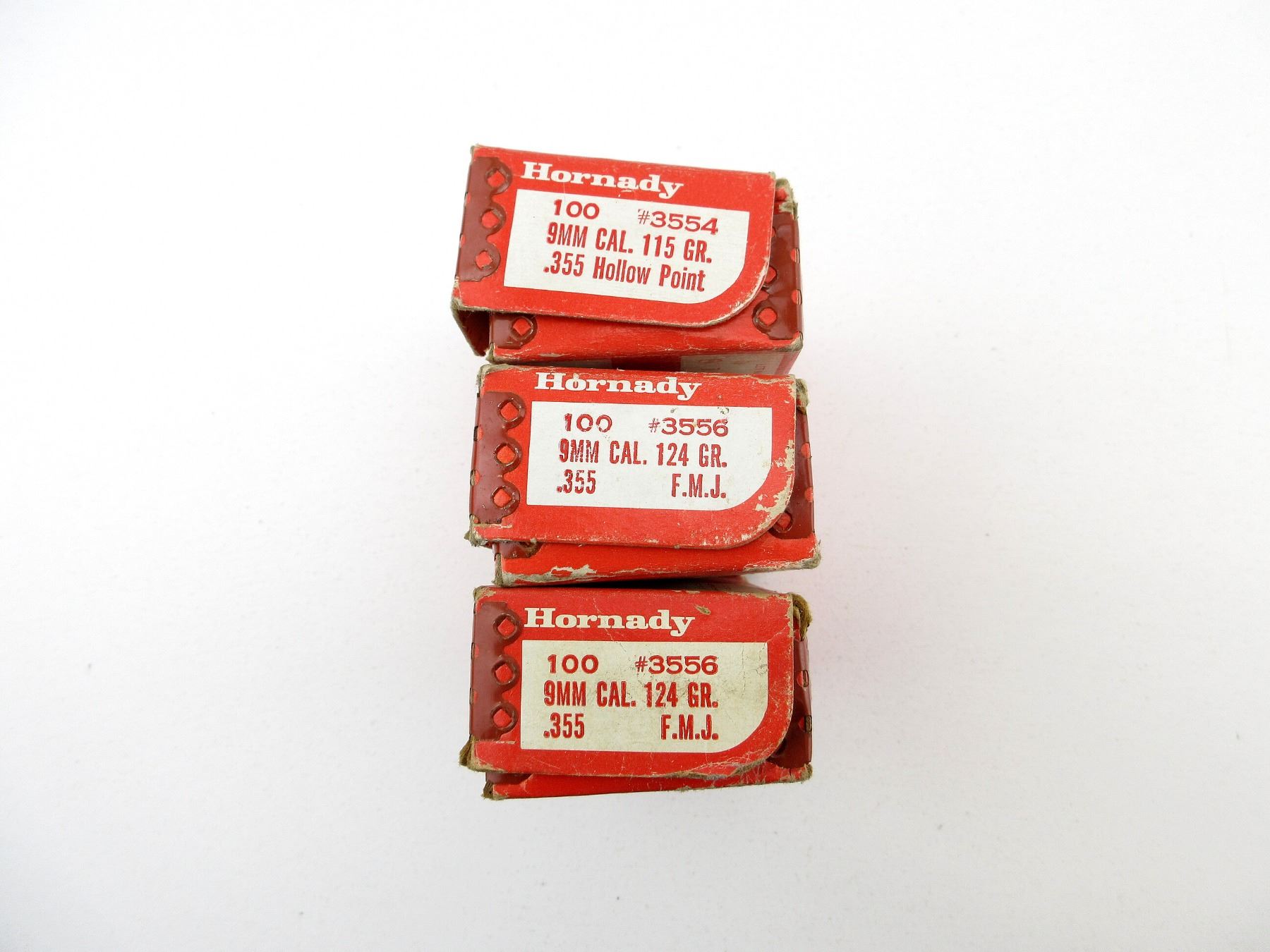LOT INCLUDES; APPROX. 4.2 LBS BULLETS, APPROX. DIA .355", 115 GRNS (STATED ON BOX NOT CONFIRMED) HP & 124 (STATED ON BOXES NOT CONFIRMED) FMJ.