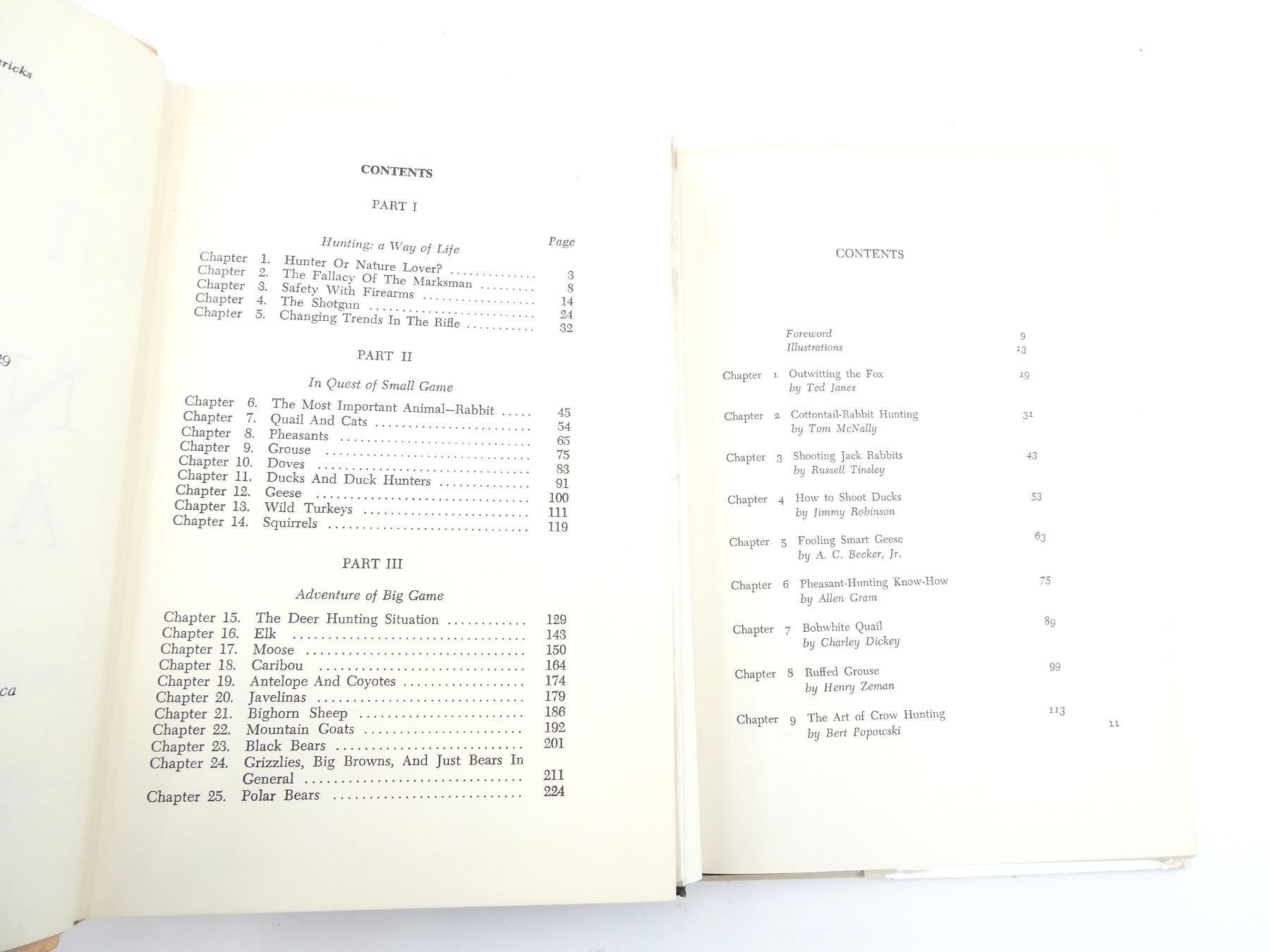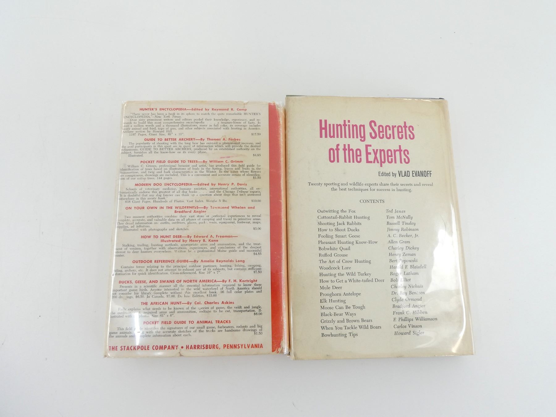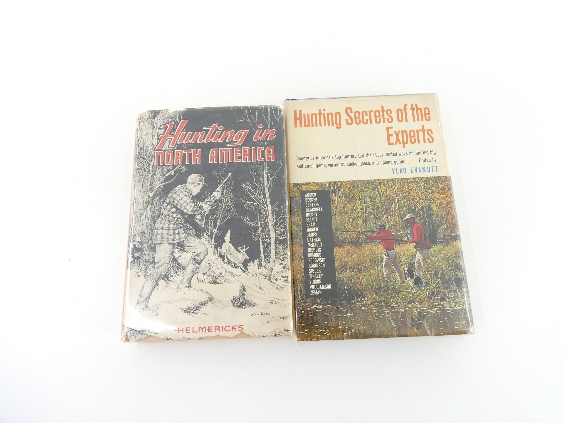 HARD COVERS WITH DUST COVERS, LOT INCLUDES; (1) "HUNTING SECRETS OF THE EXPERTS" BOOK EDITED BY VLAD EVANOFF, COPYRIGHT 1964 & (1) "HUNTING IN NORTH AMERICA" BY CONSTANCE HELMERICKS, COPYRIGHT 1959. SEE PHOTOS.