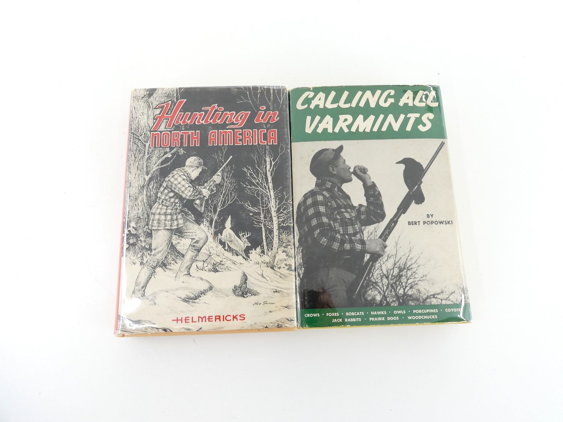 HARD COVERS WITH DUST COVERS, LOT INCLUDES; (1) "HUNTING IN NORTH AMERICA" BOOK BY CONSTANCE HELMERICKS, COPYRIGHT 1956 & (1) "CALLING ALL VARMINTS" BOOK BY BERT POPOWSKI, COPYRIGHT 1952. SEE PHOTOS.