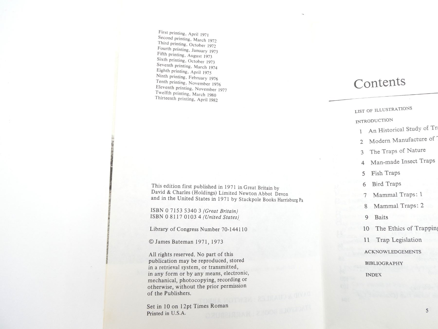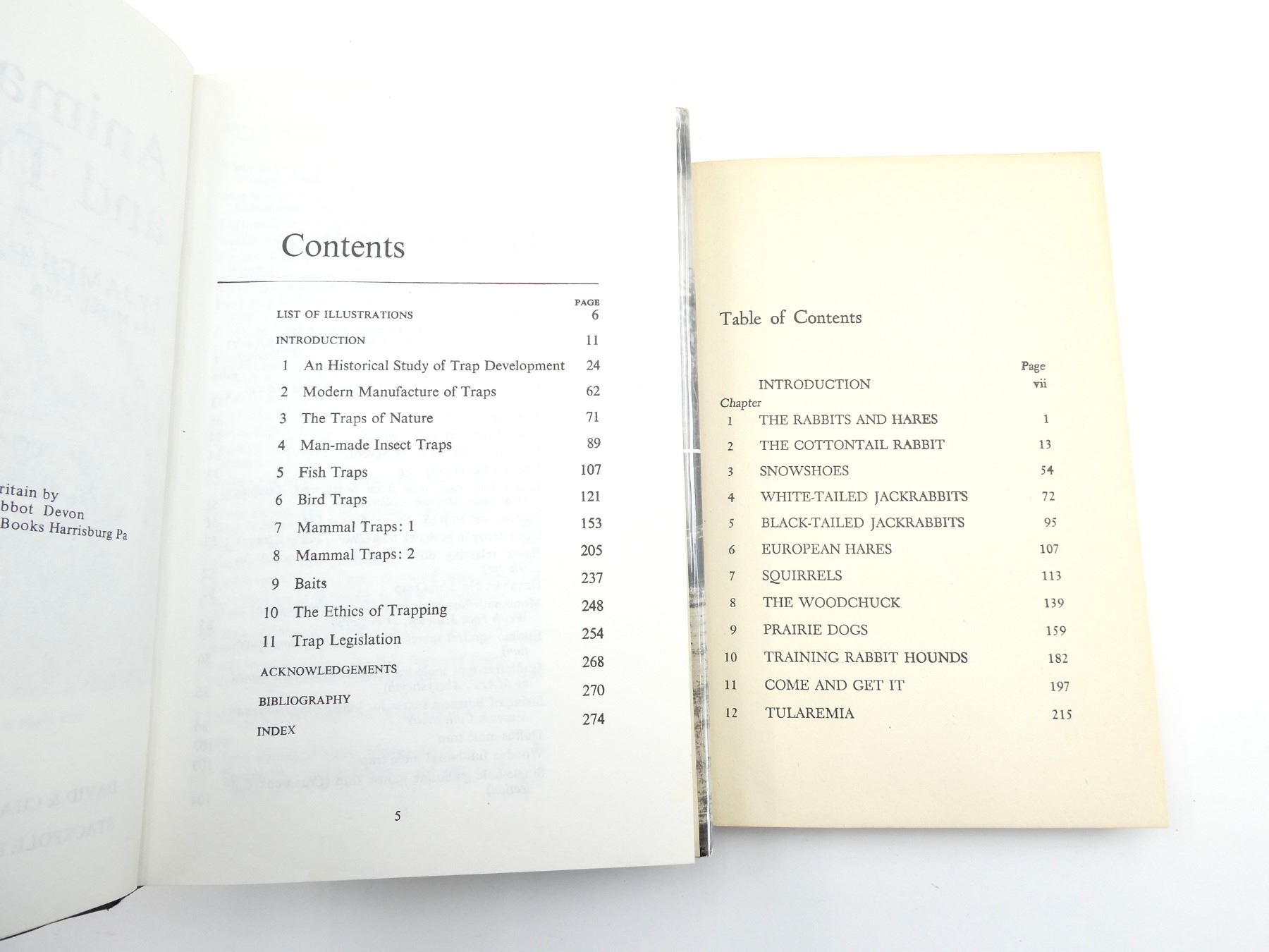 HARD COVERS WITH DUST COVERS, LOT INCLUDES; (1) "ANIMAL TRAPS AND TRAPPING" BOOK BY JAMES A. BATEMAN, ISBN: 0-8117-0103-4 & (1) "HUNTING SMALL GAME" BOOK BY BERT POPOWSKI, COPYRIGHT 1948. SEE PHOTOS.