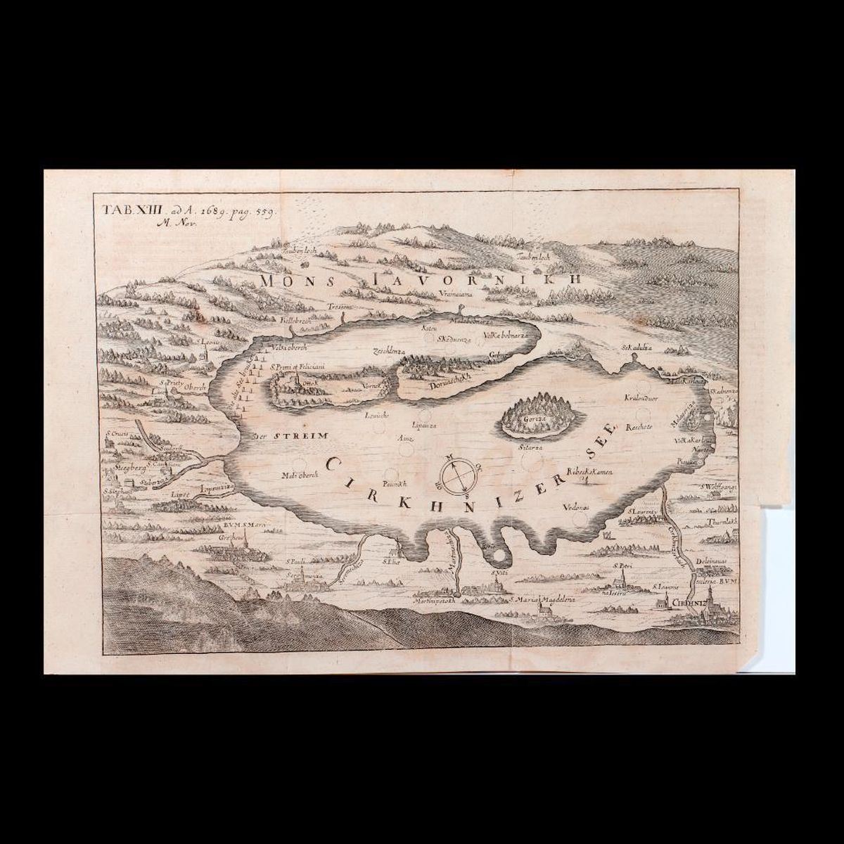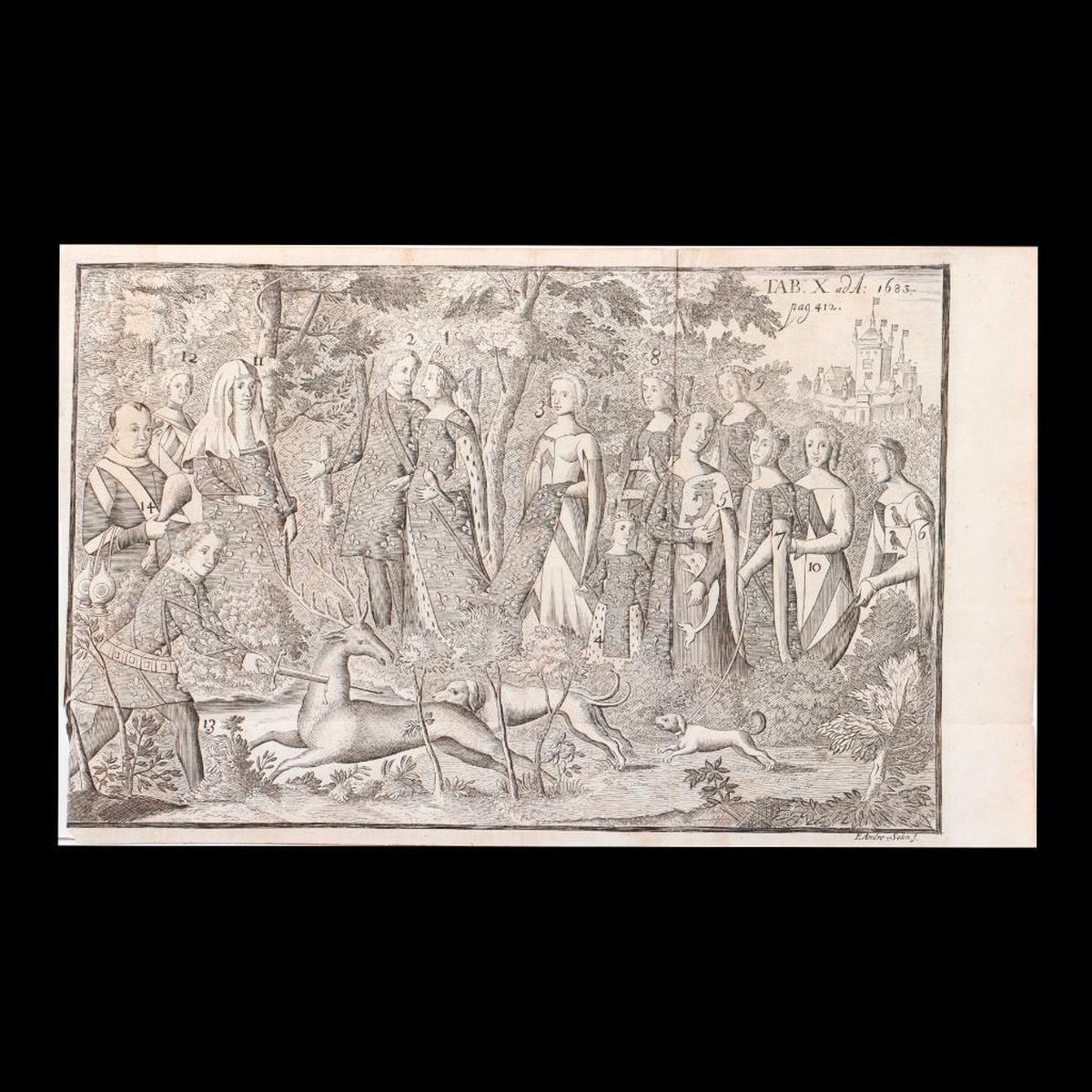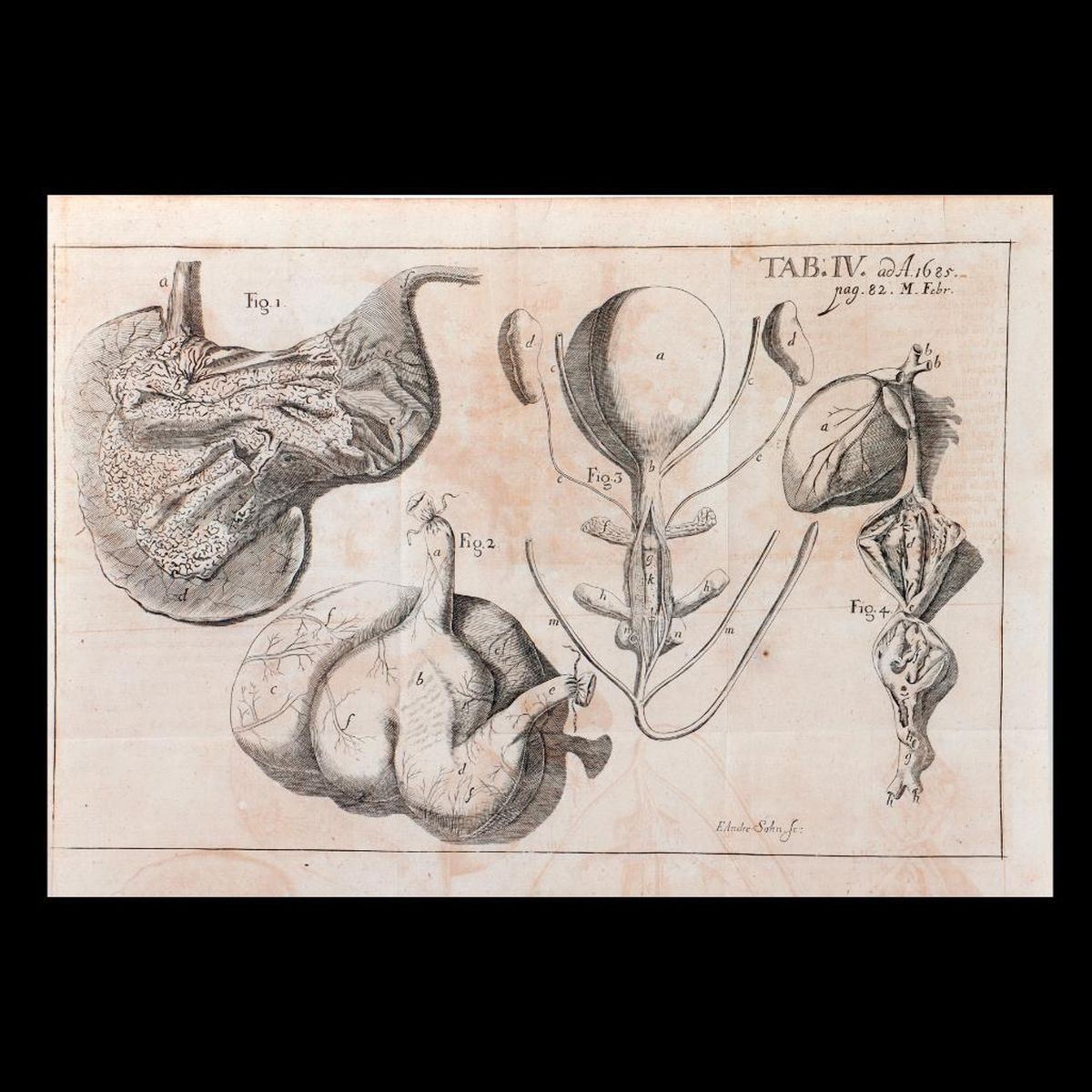 Three plates: 1. ANDRESOHN, ERASMUS. Organ dissections. 9 1/4in. x 13in. Condition: At least three vertical and one horizontal folds; toned, including from folded image; edge tears, including one 1-in. tear top margin. 2. ANDRESOHN, ERASMUS. Royal stag hunt forest scene. 8 3/8in. x 13 3/4in. Condition: Three horizontal and one vertical fold; light toning/foxing; tears/small losses to left margin. 3. Map of lake and towns. 10 1/2in. x 15 1/2in. Condition: Two vertical, one horizontal fold; toning, including images from folding; loss to right margin, edge tears, including 1in. to 2in. fold tears at top.