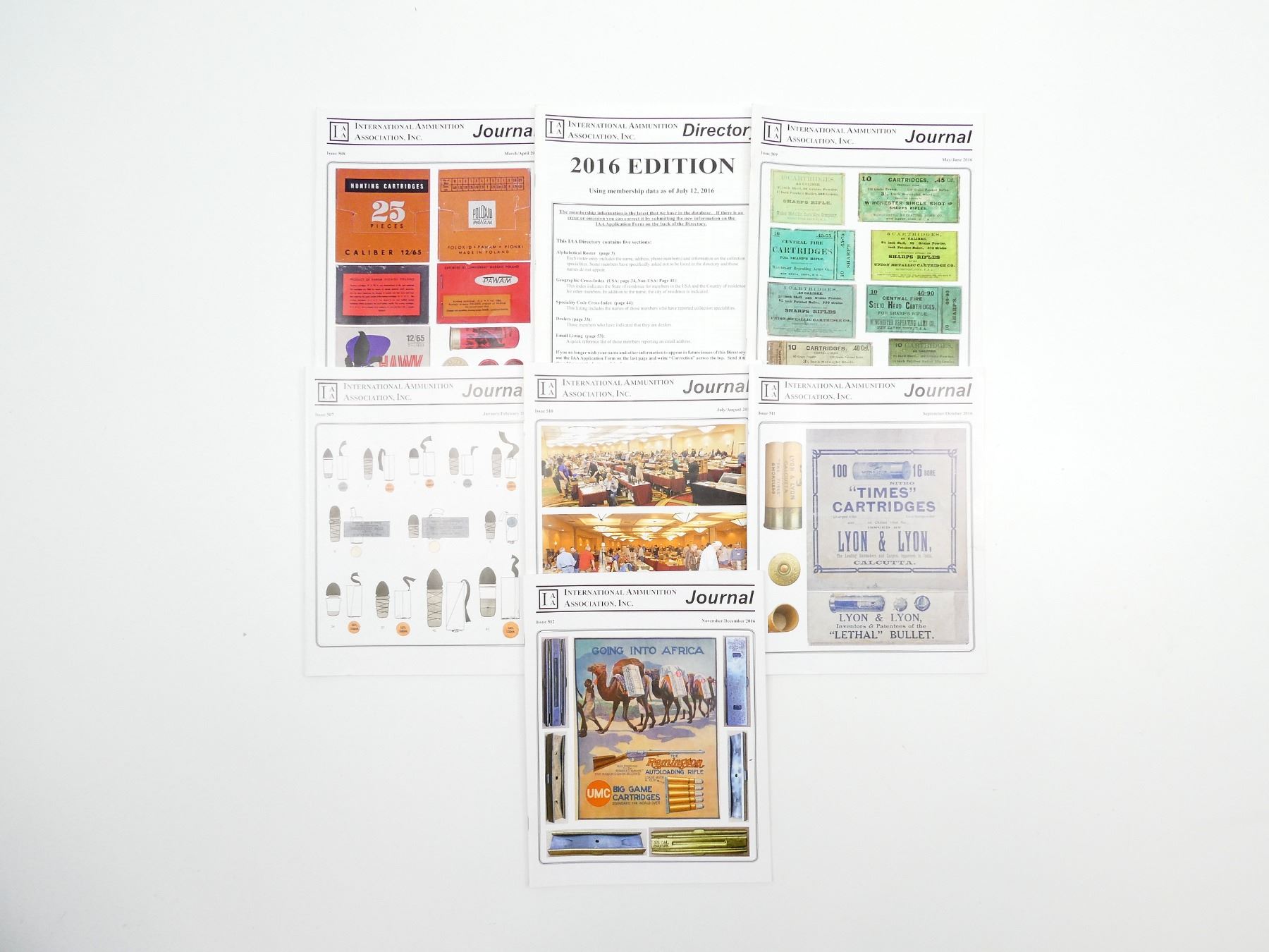 SOFT COVERS, LOT INCLUDES; (6) "INTERNATIONAL AMMUNITION ASSOCIATION INC." JOURNALS FROM JANUARY 2016 TO DECEMBER 2016 & (1) "INTERNATIONAL AMMUNITION ASSOCIATION INC." DIRECTORY, 2016 EDITION, SERIES NOT COMPLETE / SOME ISSUES MISSING / MAY CONTAIN DUPLICATES. SEE PHOTOS.
