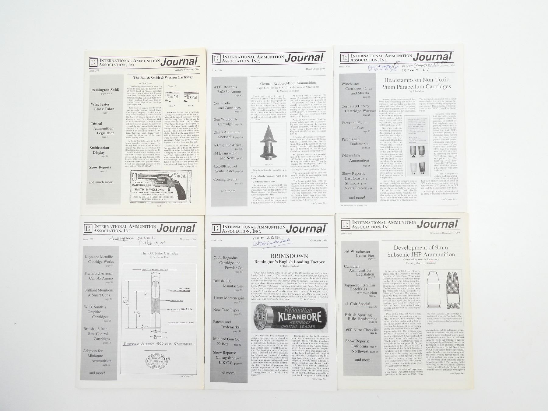 SOFT COVERS, LOT INCLUDES; (6) "INTERNATIONAL AMMUNITION ASSOCIATION INC." JOURNALS FROM JANUARY 1994 TO DECEMBER 1994, SERIES NOT COMPLETE / SOME ISSUES MISSING / MAY CONTAIN DUPLICATES. SEE PHOTOS.
