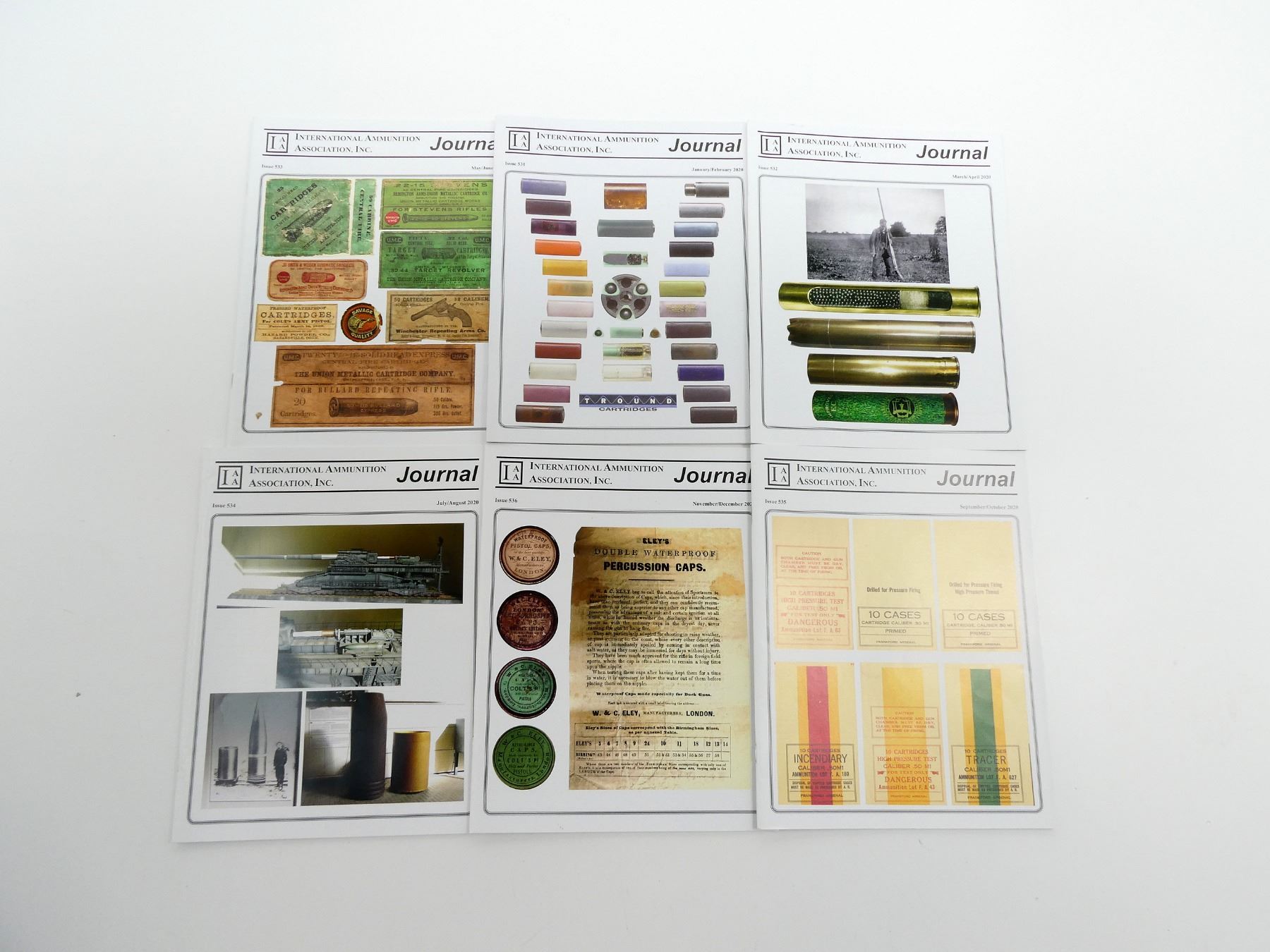 SOFT COVERS, LOT INCLUDES; (6) "INTERNATIONAL AMMUNITION ASSOCIATION INC." JOURNALS FROM JANUARY 2020 TO DECEMBER 2020, SERIES NOT COMPLETE / SOME ISSUES MISSING / MAY CONTAIN DUPLICATES. SEE PHOTOS.