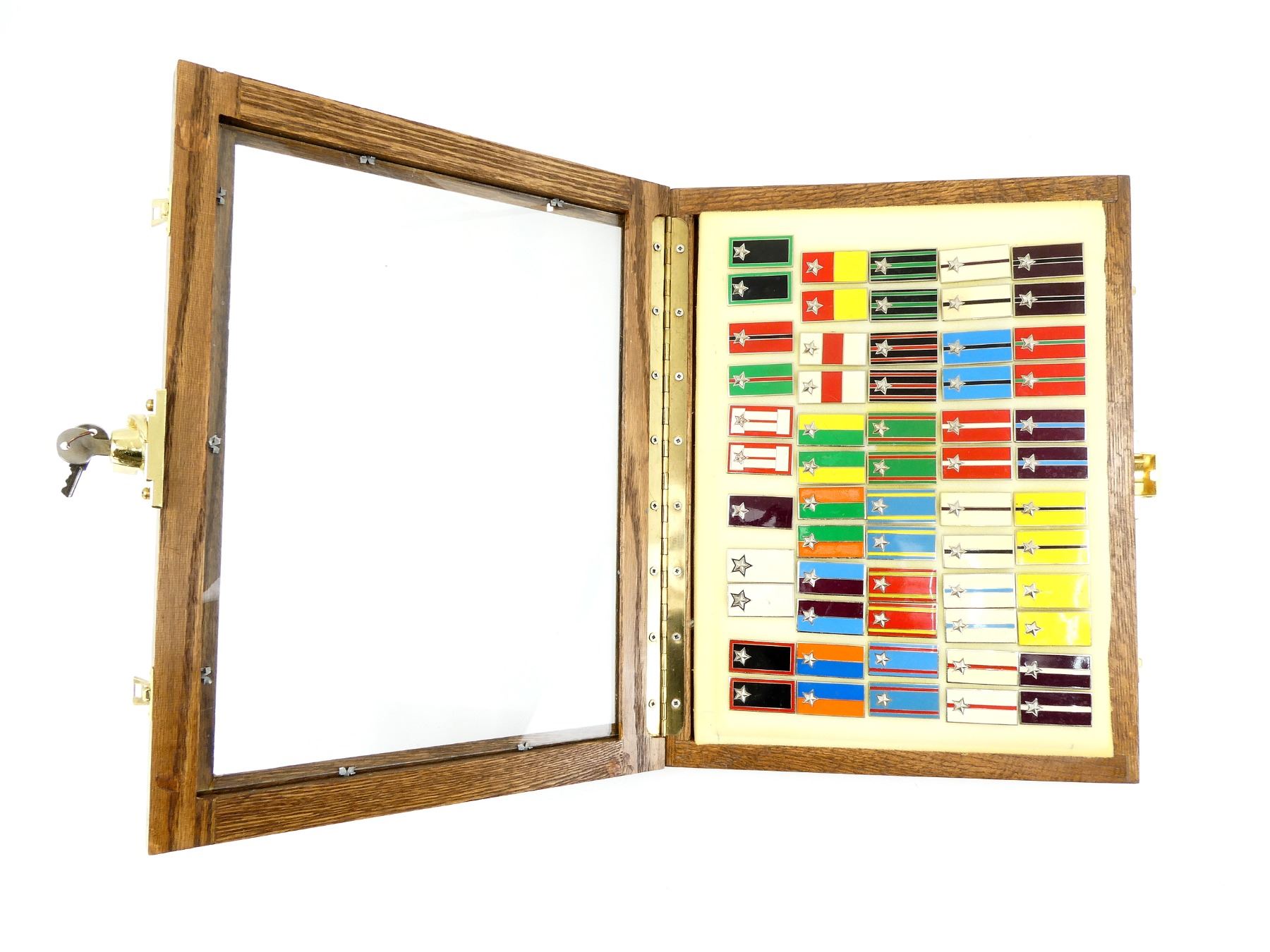ASSORTED ITALIAN MILITARY MOSTRINE BADGES IN GLASS DISPLAY CASE LOT