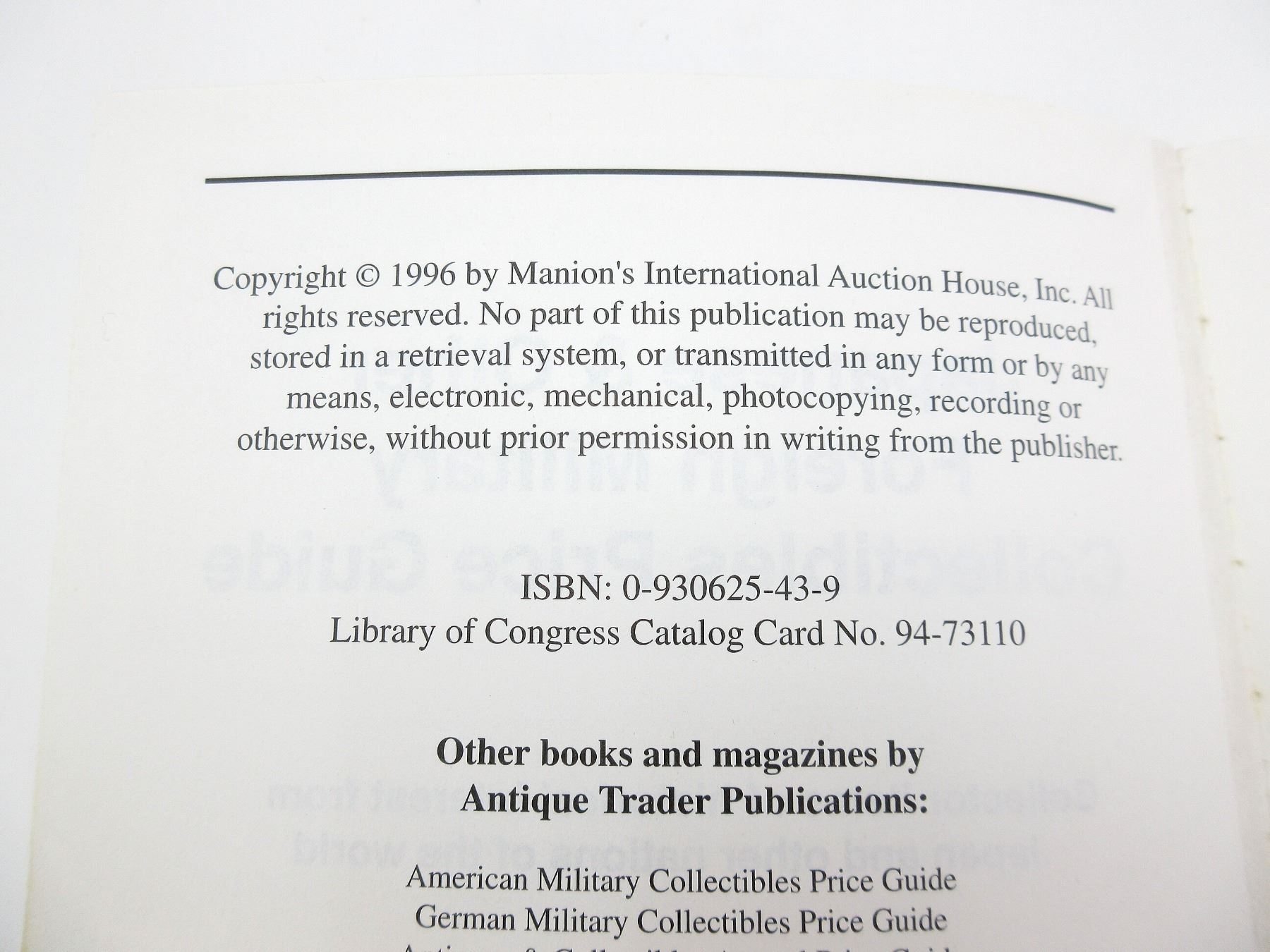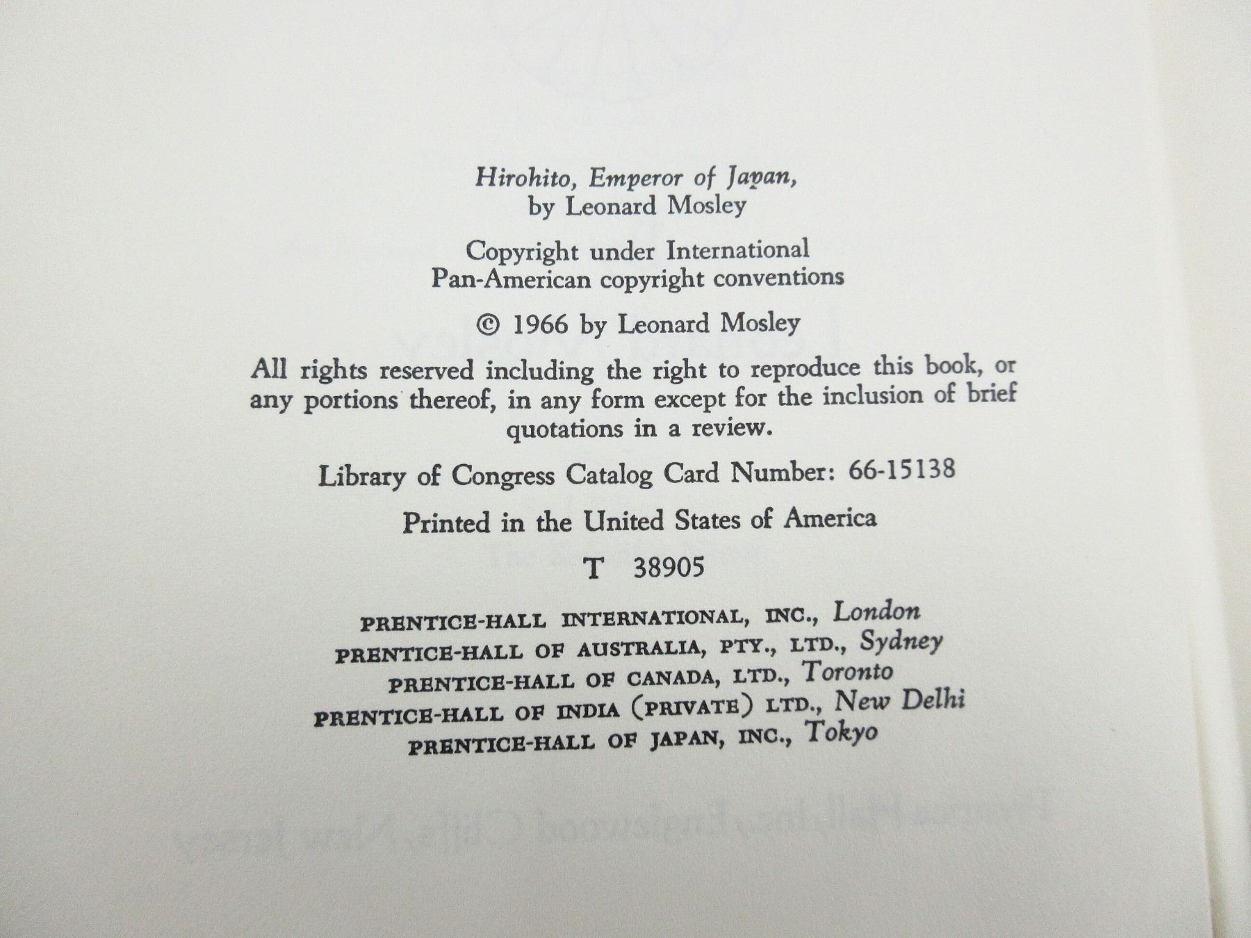 LOT INCLUDES; (1) "THE BATTLE OF LEYTE GULF" BOOK BY ADRIAN STEWART, HARD COVER WITH DUST COVER, COPYRIGHT 1979, (1) "JAPANESE & OTHER FOREIGN MILITARY COLLECTIBLES PRICE GUIDE" BOOK BY RON MANION, SOFT COVER, ISBN: 0-930625-43-9, (1) "HIROHITO EMPEROR OF JAPAN" BOOK BY LEONARD MOSLEY, HARD COVER WITH DUST COVER, COPYRIGHT 1966, (1) "THE ILLUSTRATED HISTORY OF THE VIETNAM WAR, ARTILLERY" BOOK BY JAMES R. ARNOLD, SOFT COVER, ISBN: 0-553-34319-X & (1) "THE NEW FACE OF WAR, A REVISED EDITION" BOOK BY MALCOLM W. BROWNE, HARD COVER WITH DUST COVER, COPYRIGHT 1968. SEE PHOTOS.