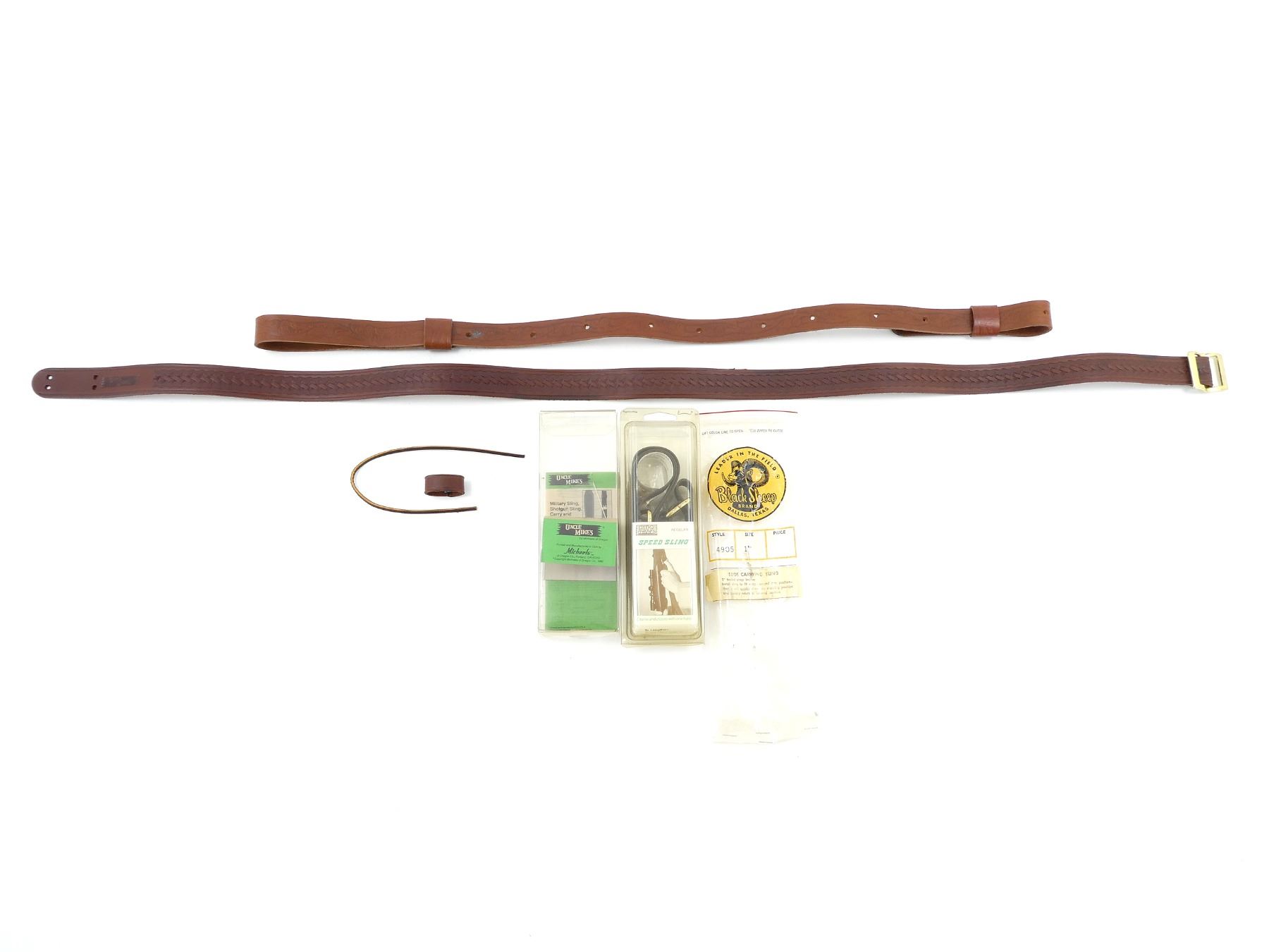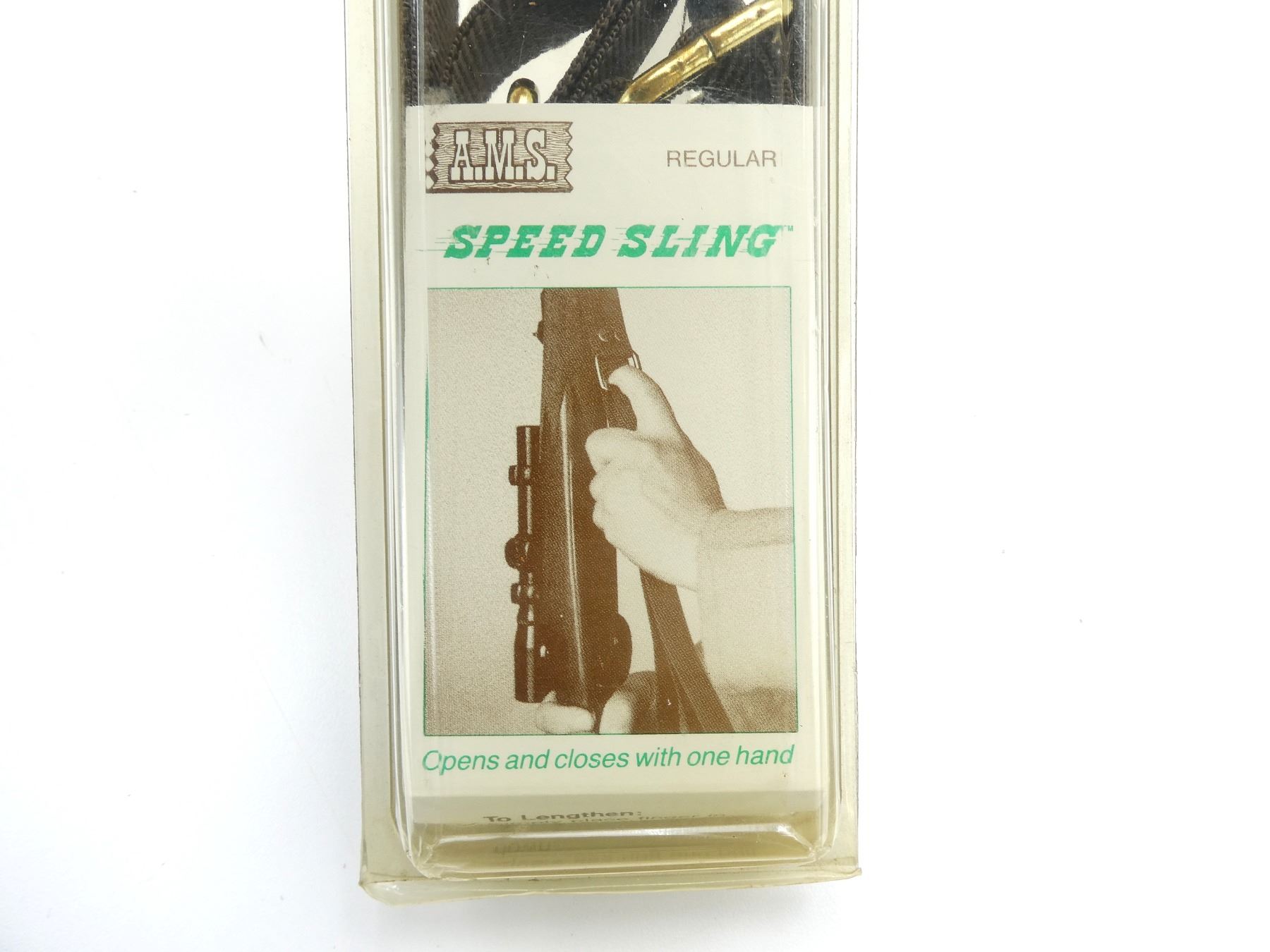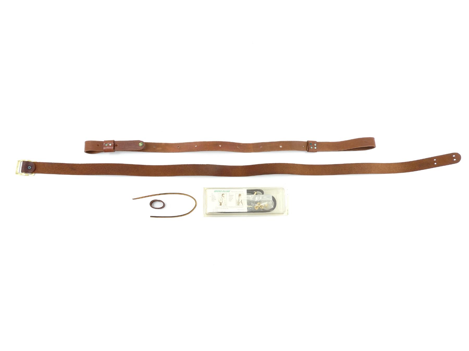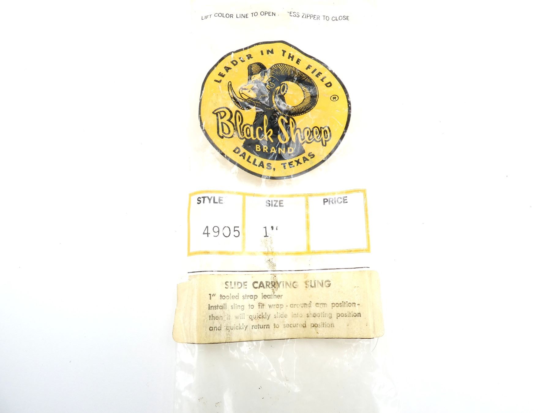 VARIOUS LENGTHS, LOT INCLUDES; (1) UNCLE MIKE'S BROWN LEATHER SLING, APPEAR NOS IN ORIGINAL PACKAGING, (1) A.M.S. SPEED BROWN LEATHER SLING, APPEAR NOS IN ORIGINAL PACKAGING & (1) BLACK SHEEP BROWN LEATHER SLING, APPEAR NOS IN ORIGINAL PACKAGING. SEE PHOTOS.