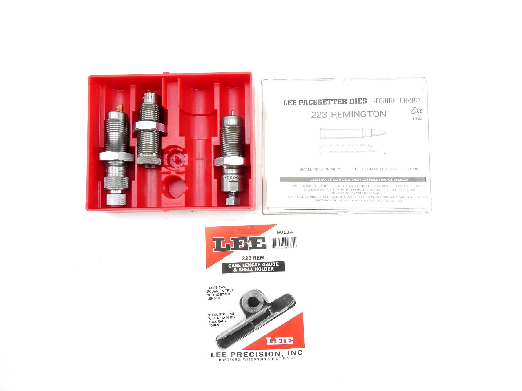 LOT INCLUDES; (1) LEE .223 3-PIECE PACESETTER RELOADING DIES & (1) LEE .223 REM CASE LENGTH GAUGE & SHELL HOLDER, NOS, UN-OPENED PACKAGING. SEE PHOTOS.