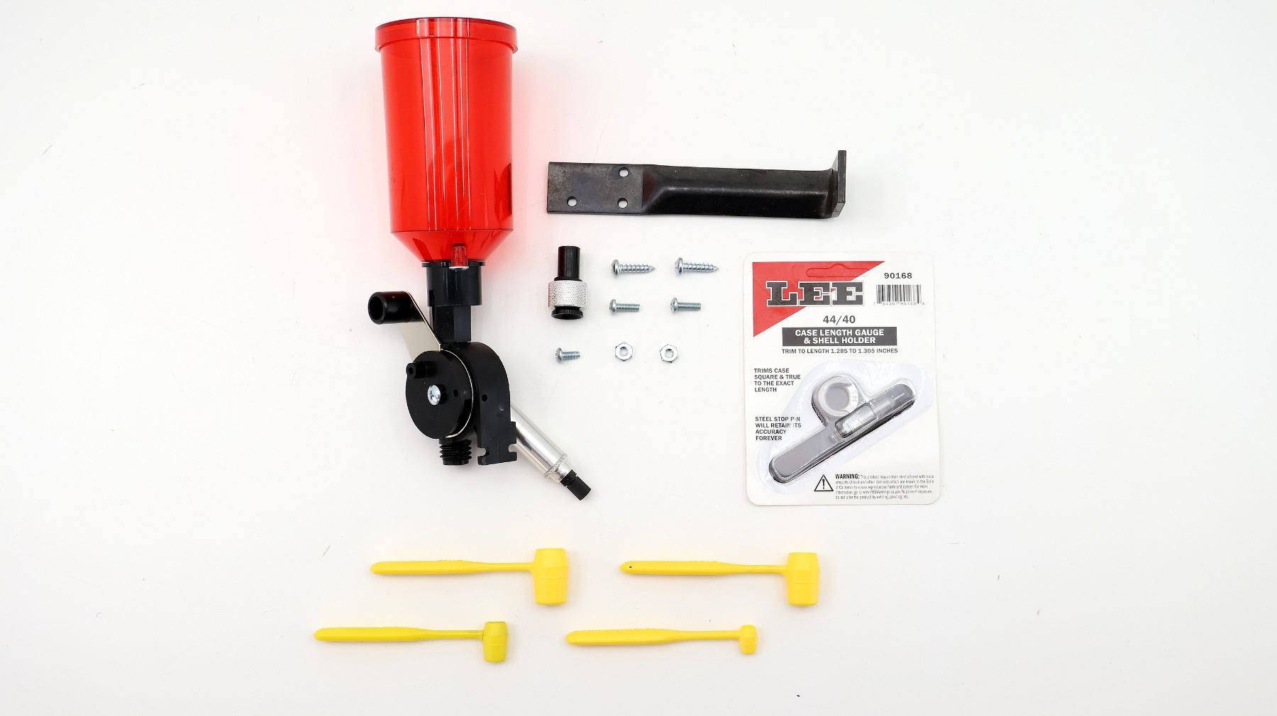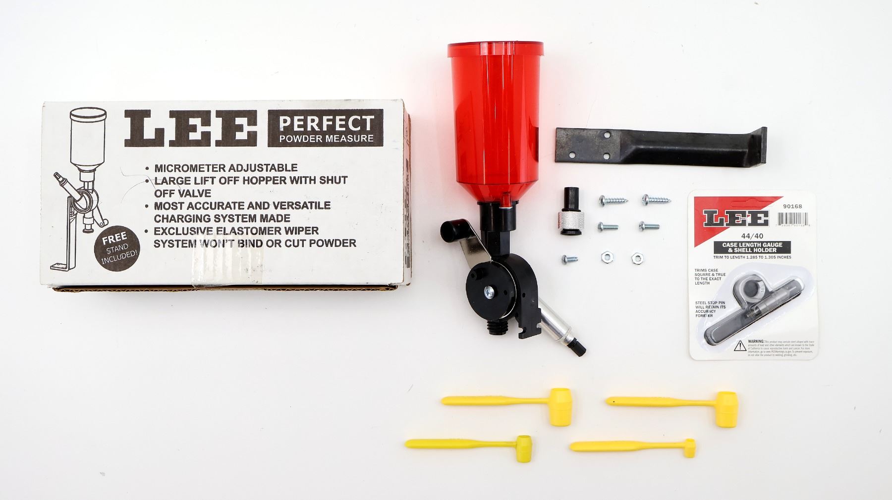 LOT INCLUDES; (1) LEE PERFECT POWDER MEASURE KIT, KIT MAY NOT BE COMPLETE, (1) LEE .44/40 CASE LENGTH GAUGE WITH #14 SHELL HOLDER, NEW OLD STOCK & (3) SCOOPS, .3CC, 1CC, 2.5CC & 3.1CC. SEE PHOTOS.