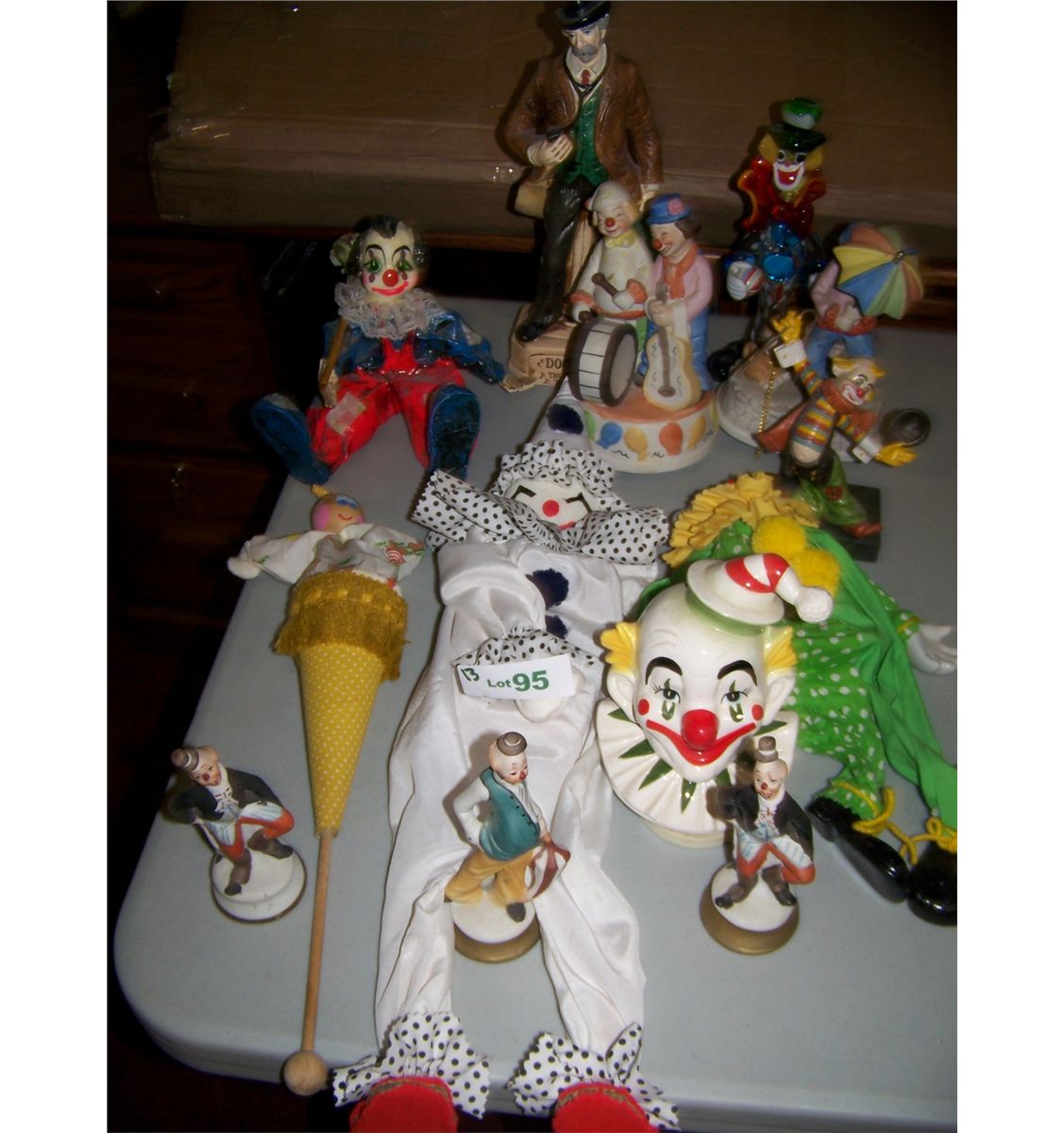 ASSORTED LOT OF (13) VARIOUS CLOWN FIGURINES, AS SHOWN. SOME VINTAGE