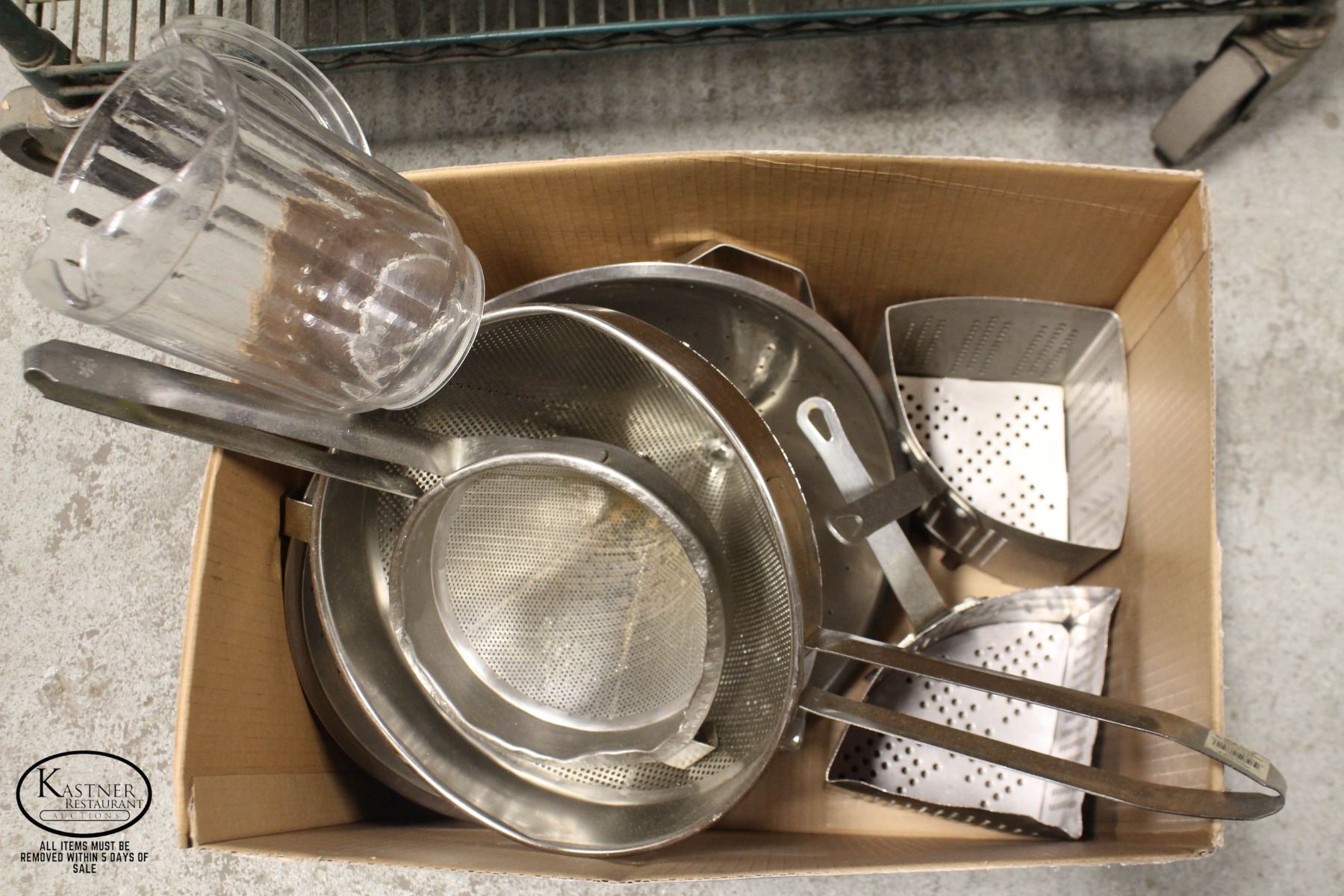 ASSORTED LOT OF S/S STRAINERS (X5), LARGE PLASTIC