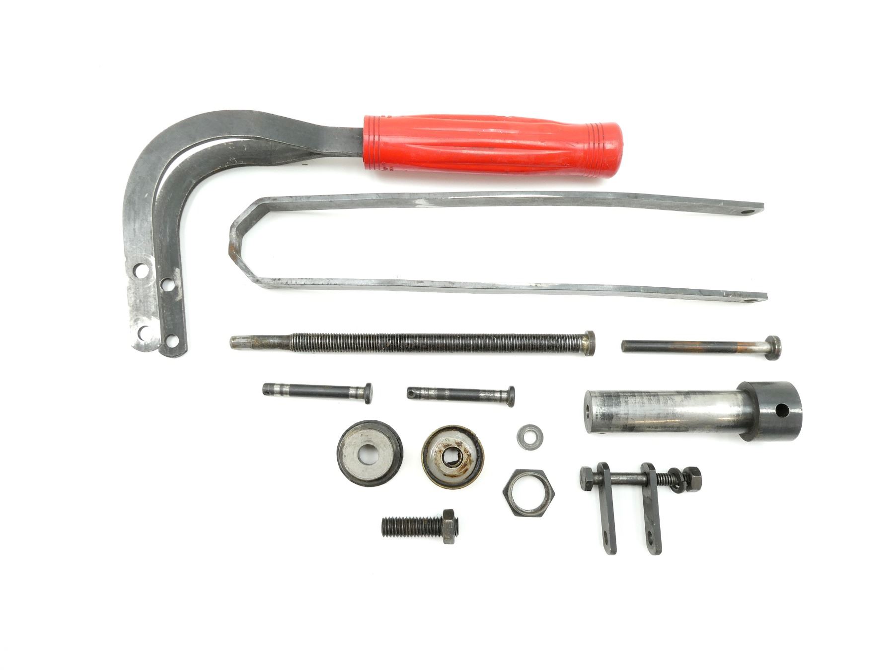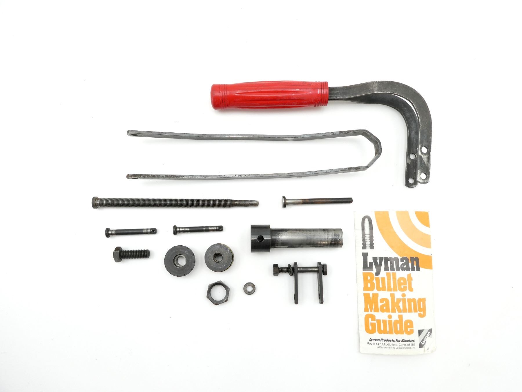 APPROX. (14) PIECES, INCLUDES; LYMAN BULLET MAKING GUIDE, HANDLE, BRACKET THAT ATTACHES TO HANDLE, VARIOUS SCREWS / BOLTS, ETC. SEE PHOTOS.