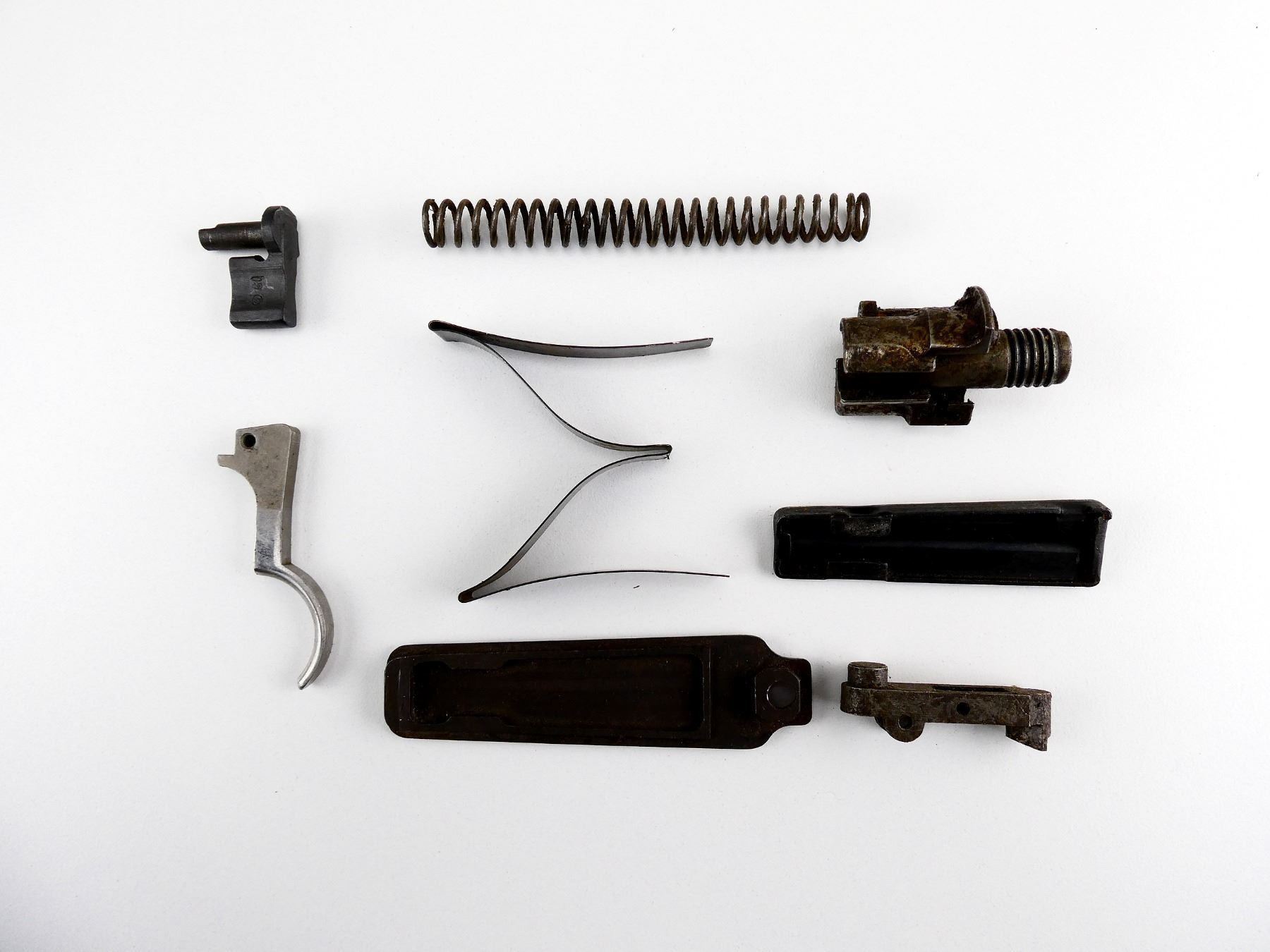LOT INCLUDES; FLOOR PLATE, FOLLOWER, SAFETY, SEAR, BOLT SHROUD, ETC. MAY REQUIRE FITTING. SEE PHOTOS.