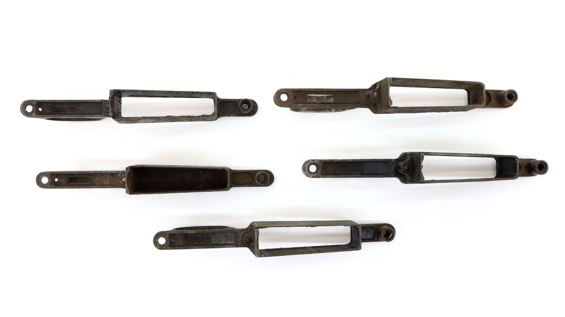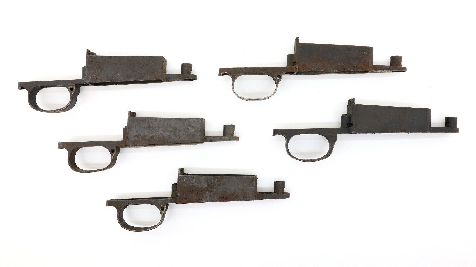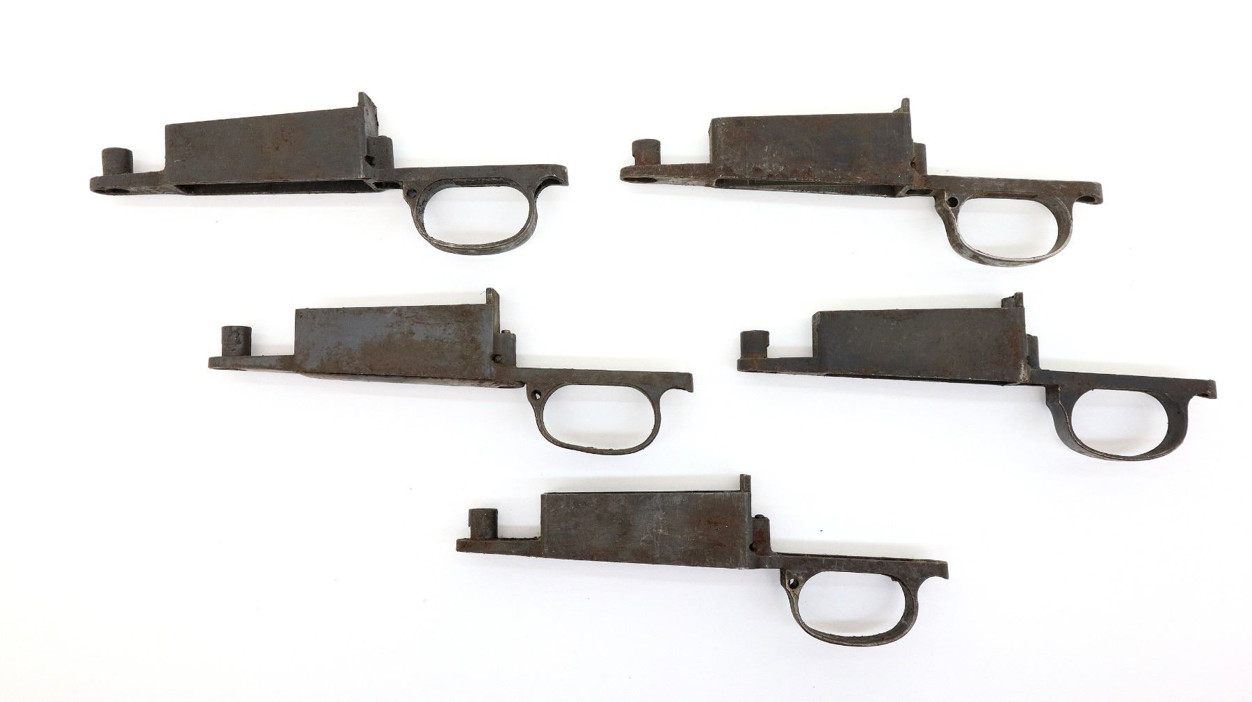 LOT INCLUDES; (5) TRIGGER GUARDS, STEEL CONSTRUCTION, SOME SMALL PARTS MIGHT BE INCLUDED, VARIOUS MARKINGS, OVERALL LENGTH APPROX. 8.5". MAY REQUIRE FITTING. SEE PHOTOS.