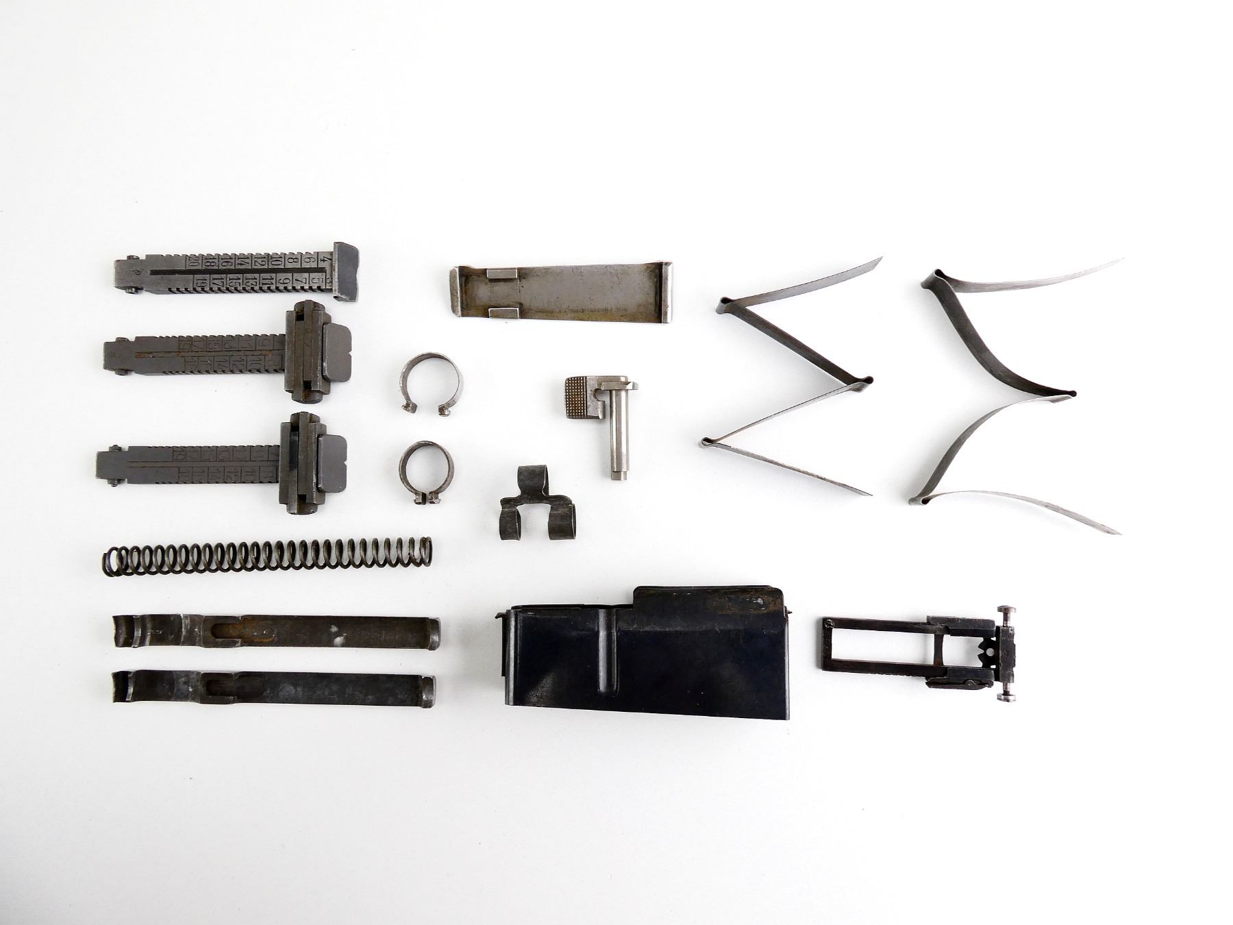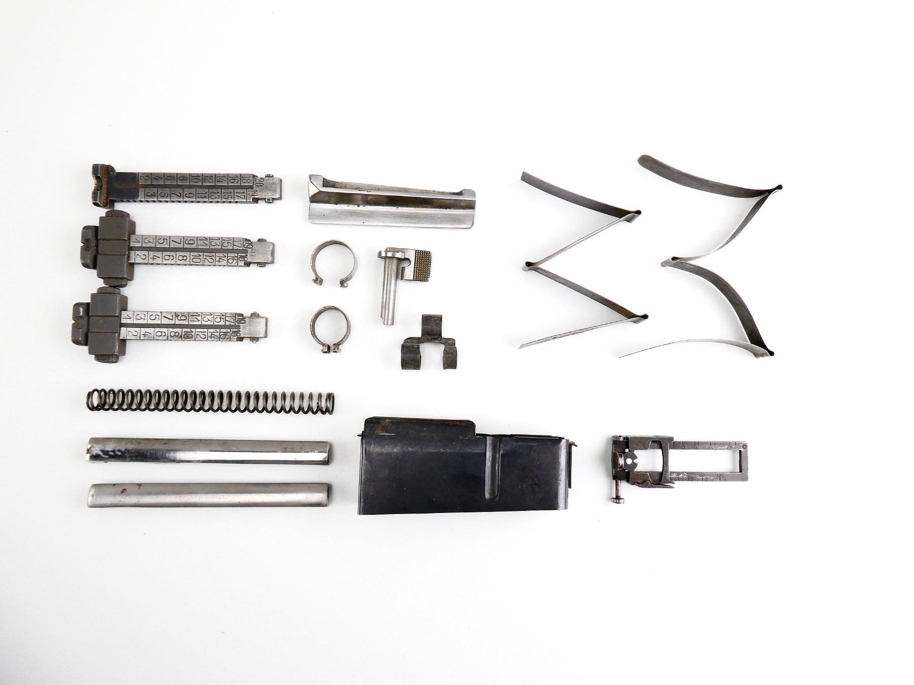 LOT INCLUDES; (2) EXTRACTORS, MAG FOLLOWER, SWEDISH SAFETY, EXTRACTOR COLLARS, MAG SPRINGS, (3) MAUSER REAR SIGHTS, ETC. MAY REQUIRE FITTING. SEE PHOTOS.