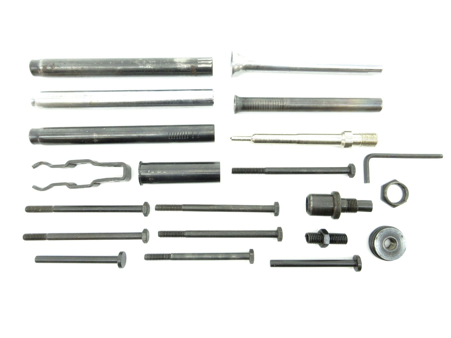 APPROX. (21) PIECES, ASSORTED GAUGES, INCLUDES; VARIOUS SIZED SCREWS, VARIOUS FUNNELS / TUBES, LOCKING RINGS, ALLEN KEY, METAL BRACKET, ETC. SEE PHOTOS.