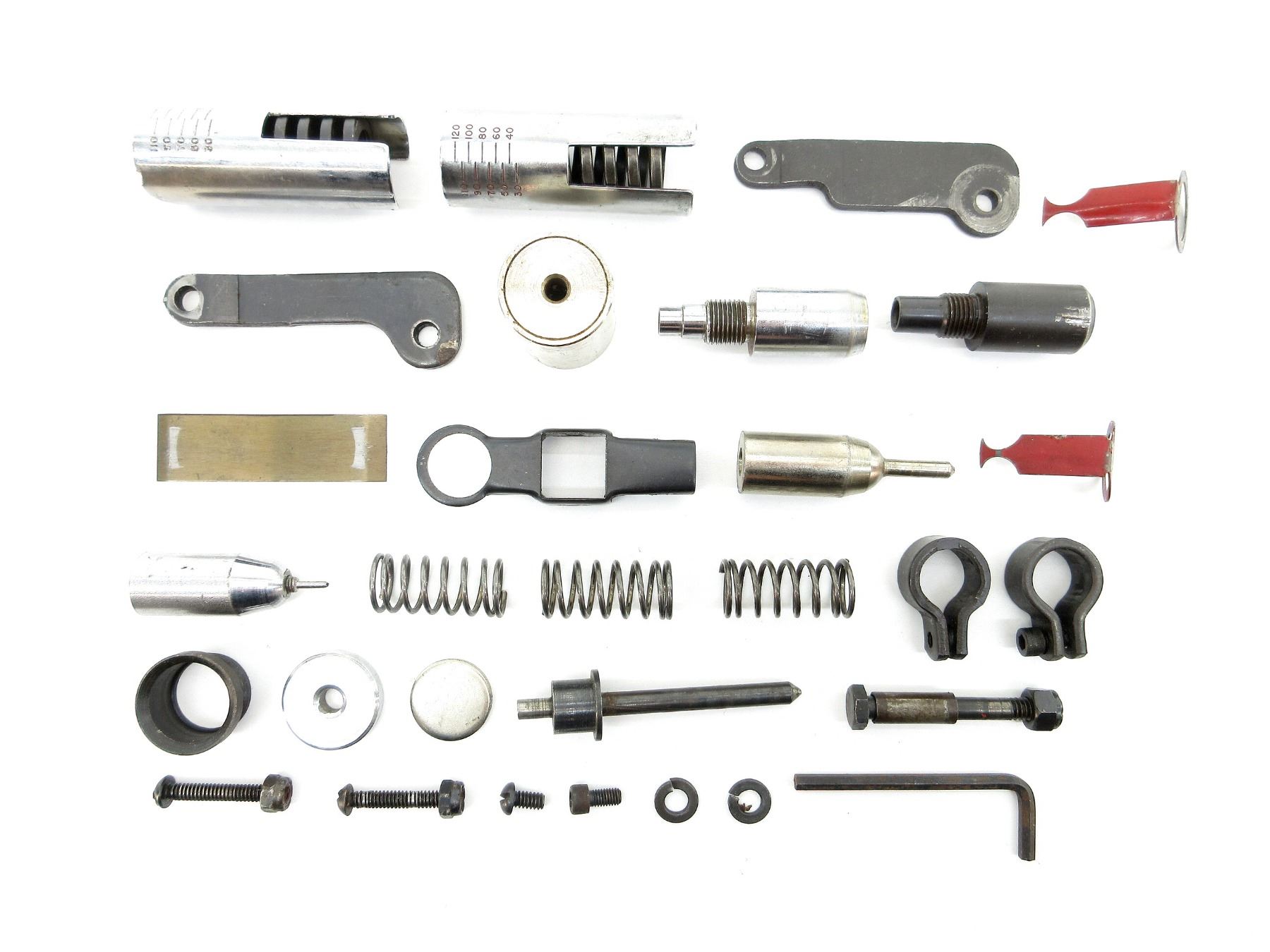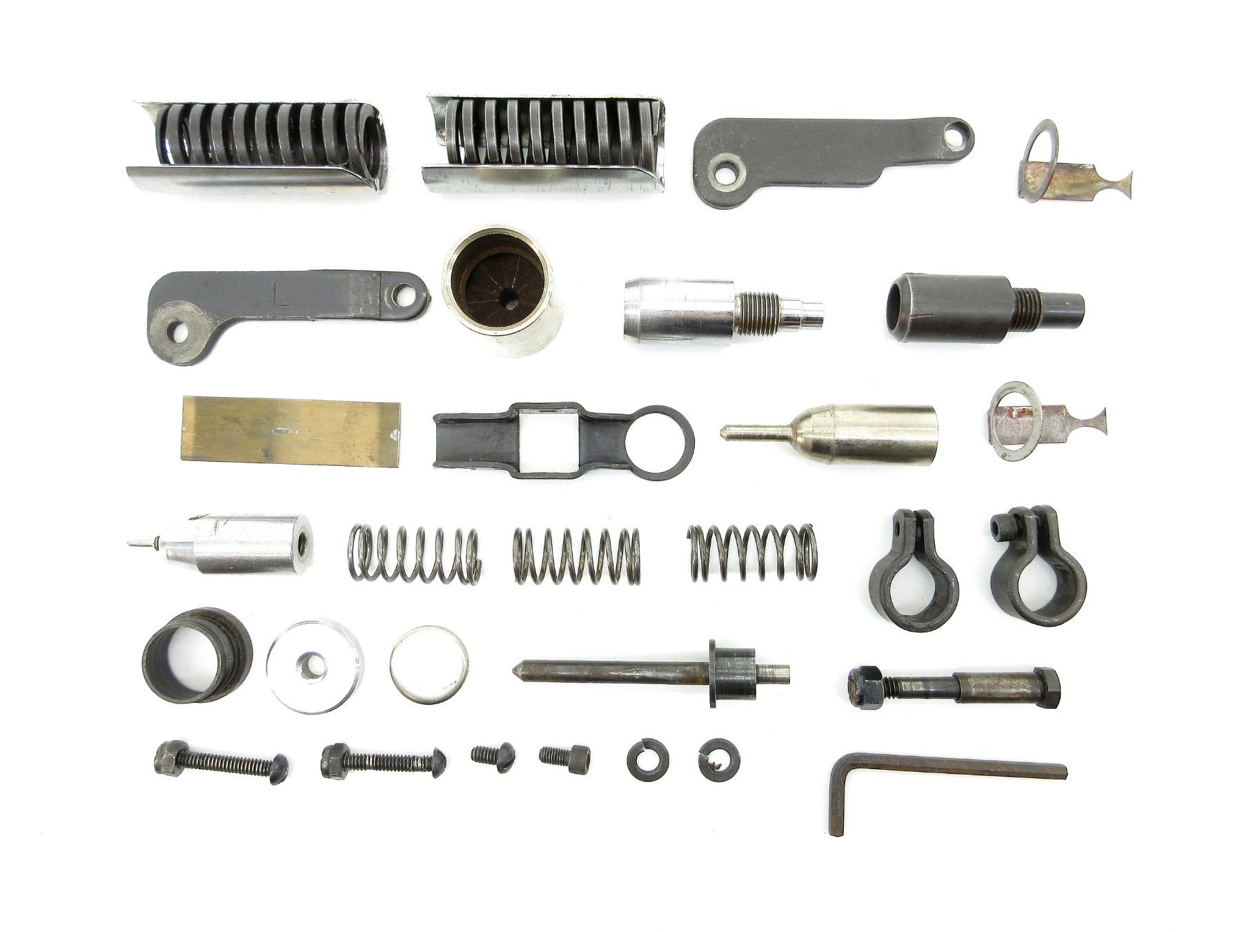 APPROX. (31) PIECES, POSSIBLY ALL 20 GA., MAY INCLUDE OTHER GAUGES, INCLUDES; VARIOUS SPRINGS, BRACKETS, VARIOUS SIZED SCREWS, WASHERS, CRIMPER, ETC. SEE PHOTOS.