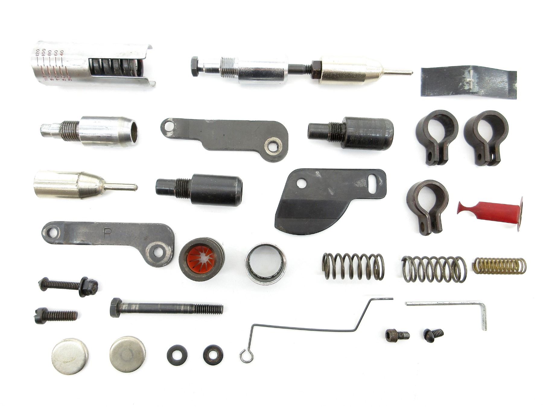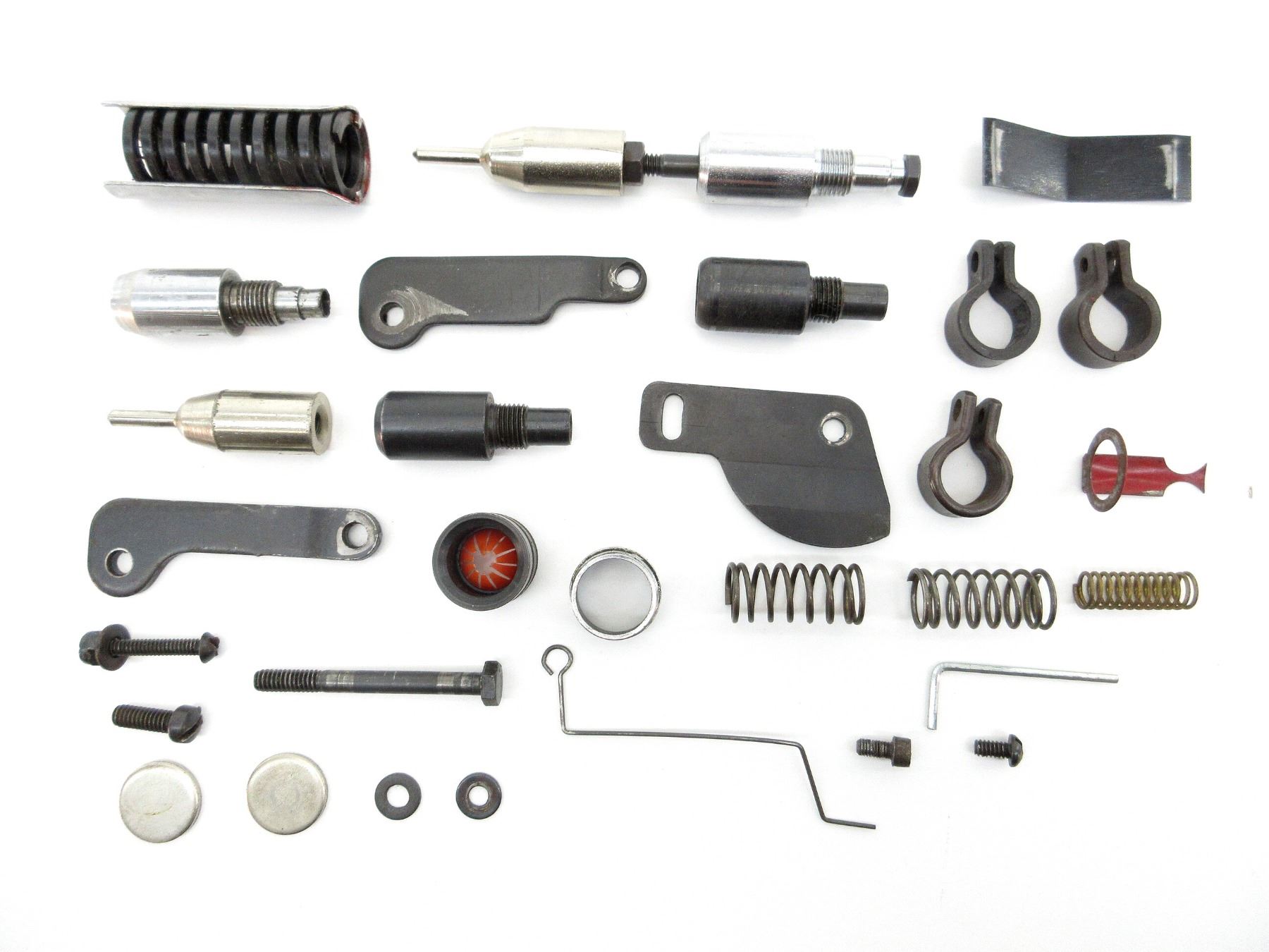 APPROX. (31) PIECES, POSSIBLY ALL 20 GA., MAY INCLUDE OTHER GAUGES, INCLUDES; VARIOUS SPRINGS, BRACKETS, VARIOUS SIZED SCREWS, WASHERS, CRIMPER, ETC. SEE PHOTOS.