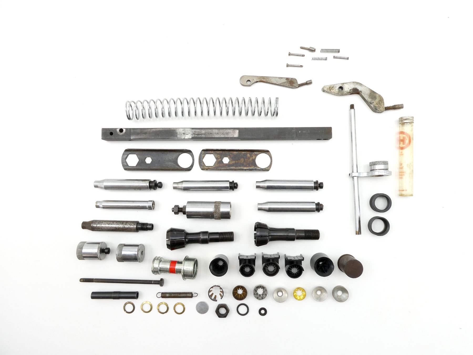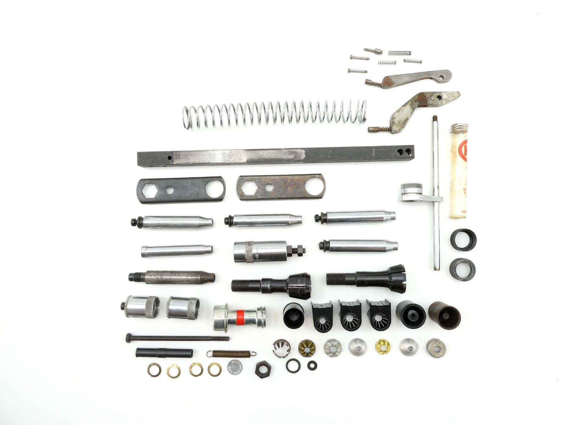 APPROX. (44) PIECES, ASSORTED GAUGES, INCLUDES; VARIOUS CRIMPERS, VARIOUS SIZED SPRINGS, WRENCHES, POWDER BAFFLES, LOCKING RINGS, PRIMER ARMS, ETC. SEE PHOTOS.