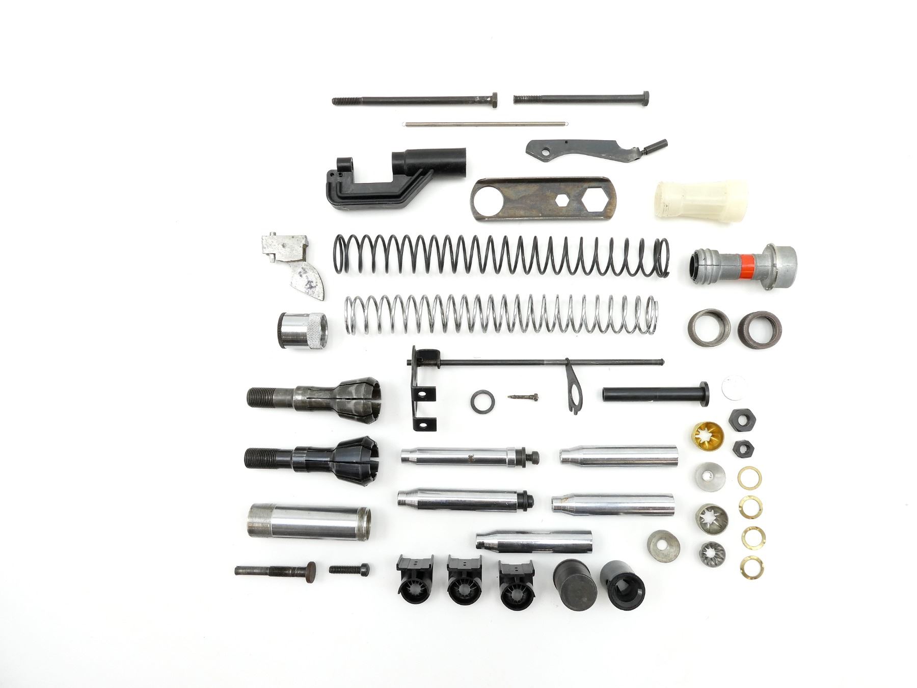 APPROX. (43) PIECES, ASSORTED GAUGES, INCLUDES; VARIOUS CRIMPERS, VARIOUS SIZED SPRINGS, WRENCH, POWDER BAFFLES, LOCKING RINGS, PRIMER ARMS, ETC. SEE PHOTOS.