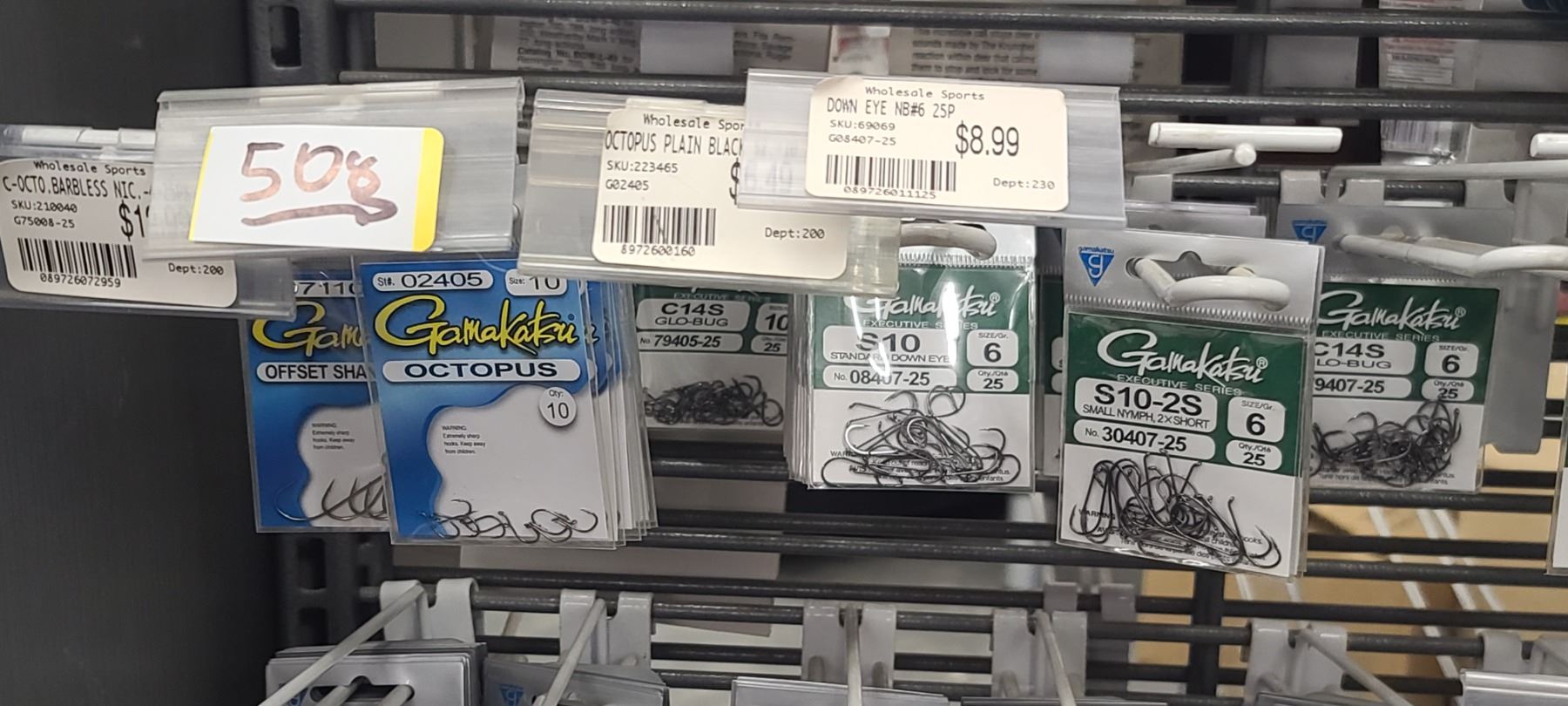ASSORTED MEDIUM HOOKS: GAMAKATSU SIZES: 1,6,8,1 X 127 TOTAL RETAIL PRICE $1,143