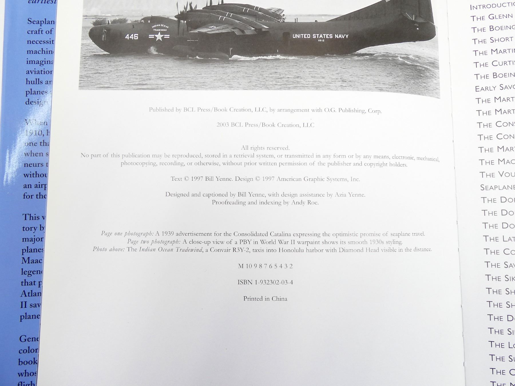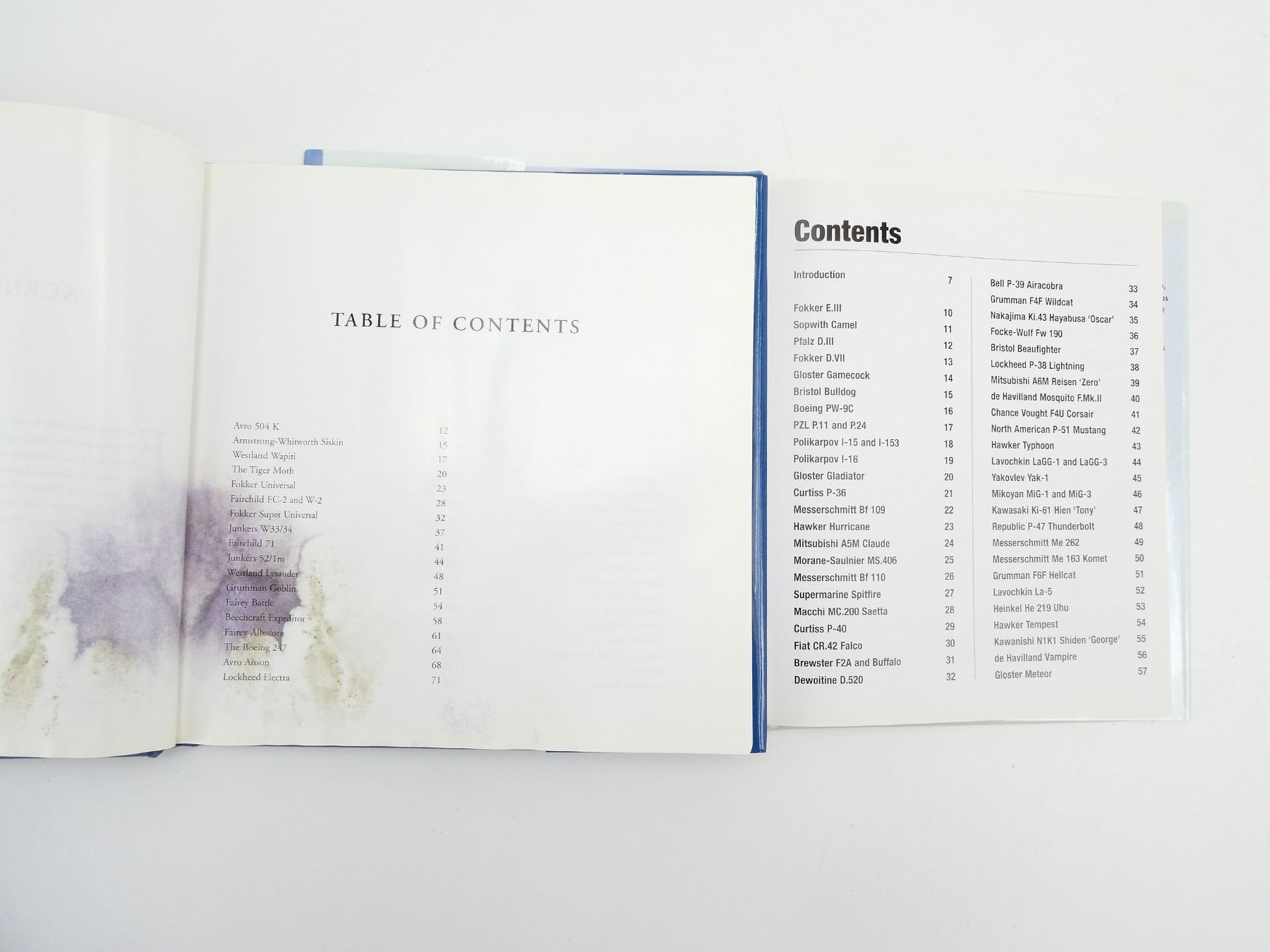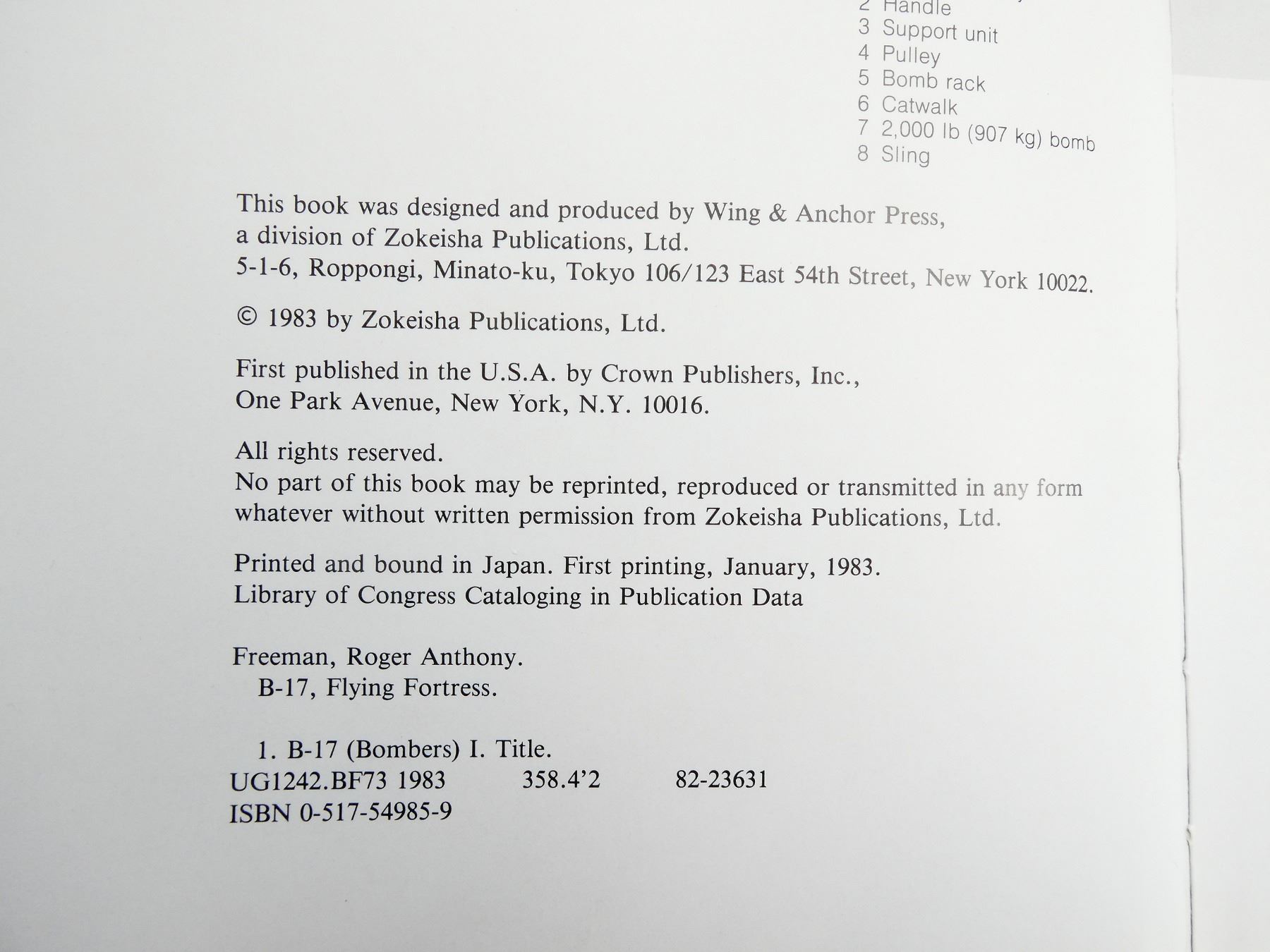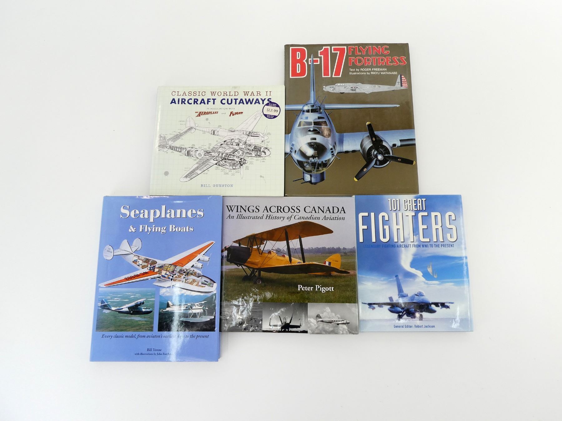 HARD COVERS WITH DUST COVERS, LOT INCLUDES; (1) "WINGS ACROSS CANADA, AN ILLUSTRATED HISTORY OF CANADIAN AVIATION" BOOK BY PETER PIGOTT, ISBN: 1-55002-412-4, (1) "101 GREAT FIGHTERS, LEGENDARY FIGHTING AIRCRAFT FROM WWI TO THE PRESENT" BOOK EDITED BY ROBERT JACKSON, ISBN: 978-1-905704-74-3, (1) "CLASSIC WORLD WAR II AIRCRAFT CUTAWAYS" BOOK BY BILL GUNSTON, ISBN: 978-0-753726-39-6, (1) "B-17 FLYING FORTRESS" BOOK BY ROGER FREEMAN & RIKYU WATANABE, ISBN: 0-517-54985-9 & (1) "SEAPLANES & FLYING BOATS, EVERY CLASSIC MODEL, FROM AVIATION'S EARLIEST DAYS TO THE PRESENT" BOOK BY BILL YENNE & JOHN BATCHELOR, ISBN: 1-932302-03-4. SEE PHOTOS.