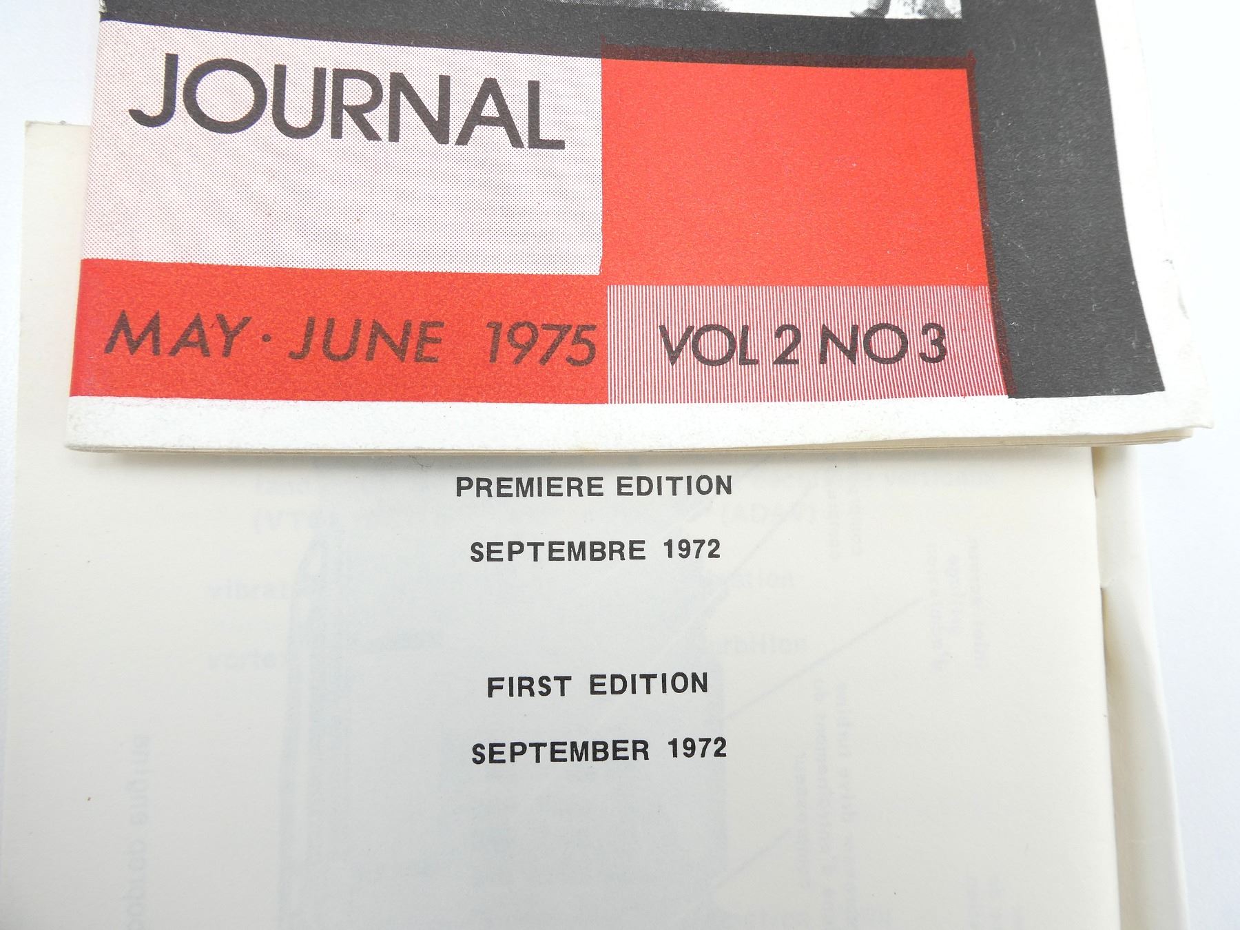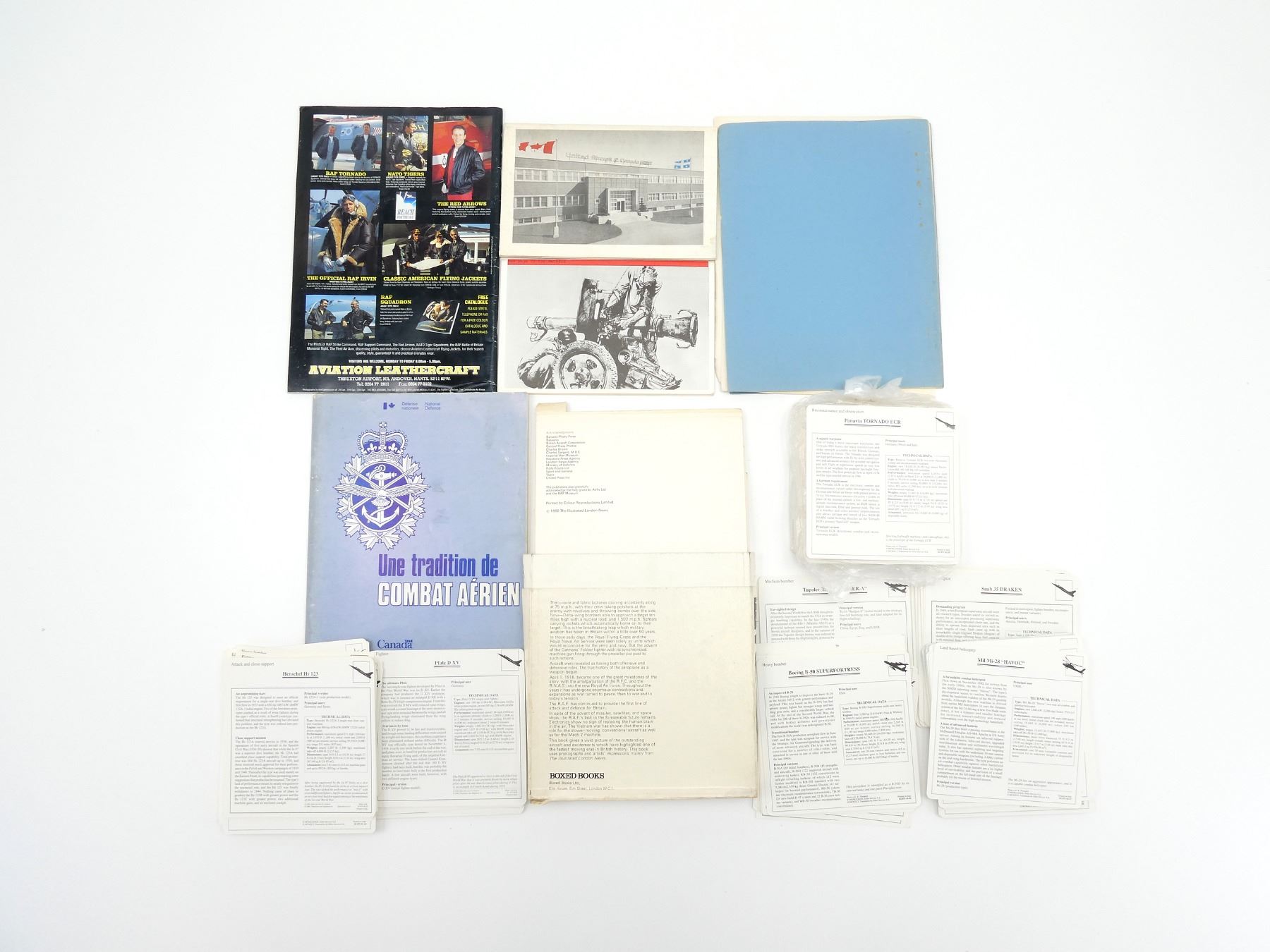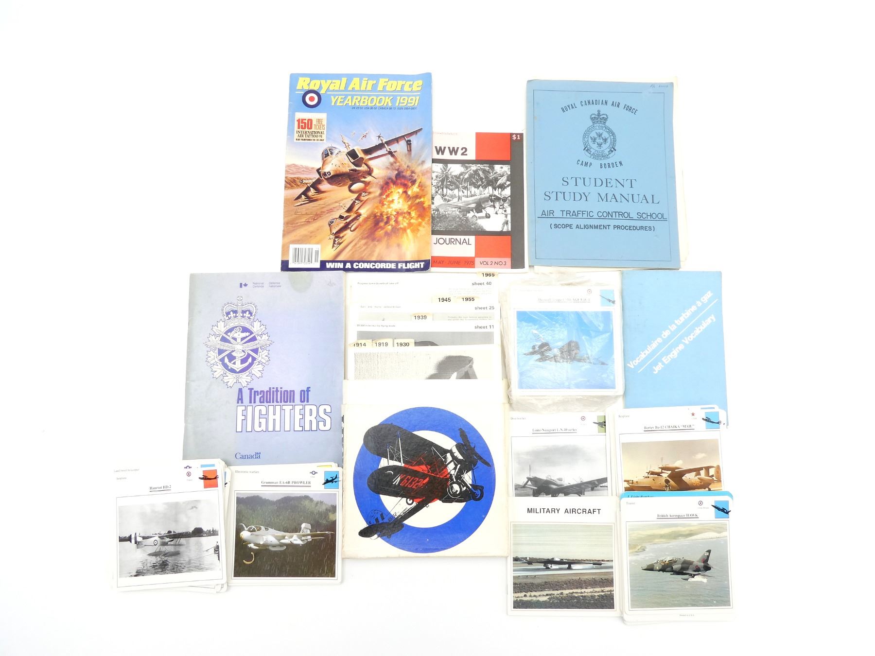 LOT INCLUDES; (1) "WW2 JOURNAL, VOL. 2, NO. 3" MAY-JUNE 1975, SOFT COVER, ISSN: 0043-9223, (1) "JET ENGINE VOCABULARY, VOCABULAIRE DE LA TURBINE A GAZ" BOOK BY UNITED AIRCRAFT OF CANADA LTD., 1972, (1) "A TRADITION OF FIGHTERS" BOOK BY J.A. GRIFFIN, SOFT COVER, (1) "STUDENT STUDY MANUAL AIR TRAFFIC CONTROL SCHOOL" MANUAL, (1) "ROYAL AIRFORCE YEARBOOK 1991" MAGAZINE, 1991, ISSN: 0954-092X, (1) "BOXED BOOKS 1, AIRCRAFT" BOXED BOOK BY ARTHUR REED, 1968 & (1) SET OF AIRCRAFT INFORMATION CARDS, VARIOUS AIRCRAFTS PICTURED WITH INFORMATION ON BACKS OF CARDS. SEE PHOTOS.
