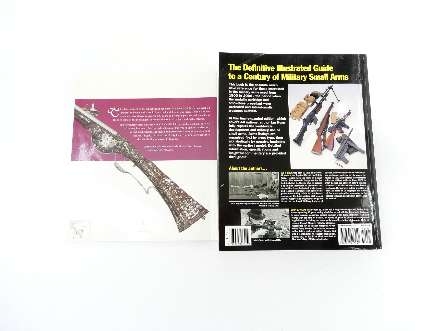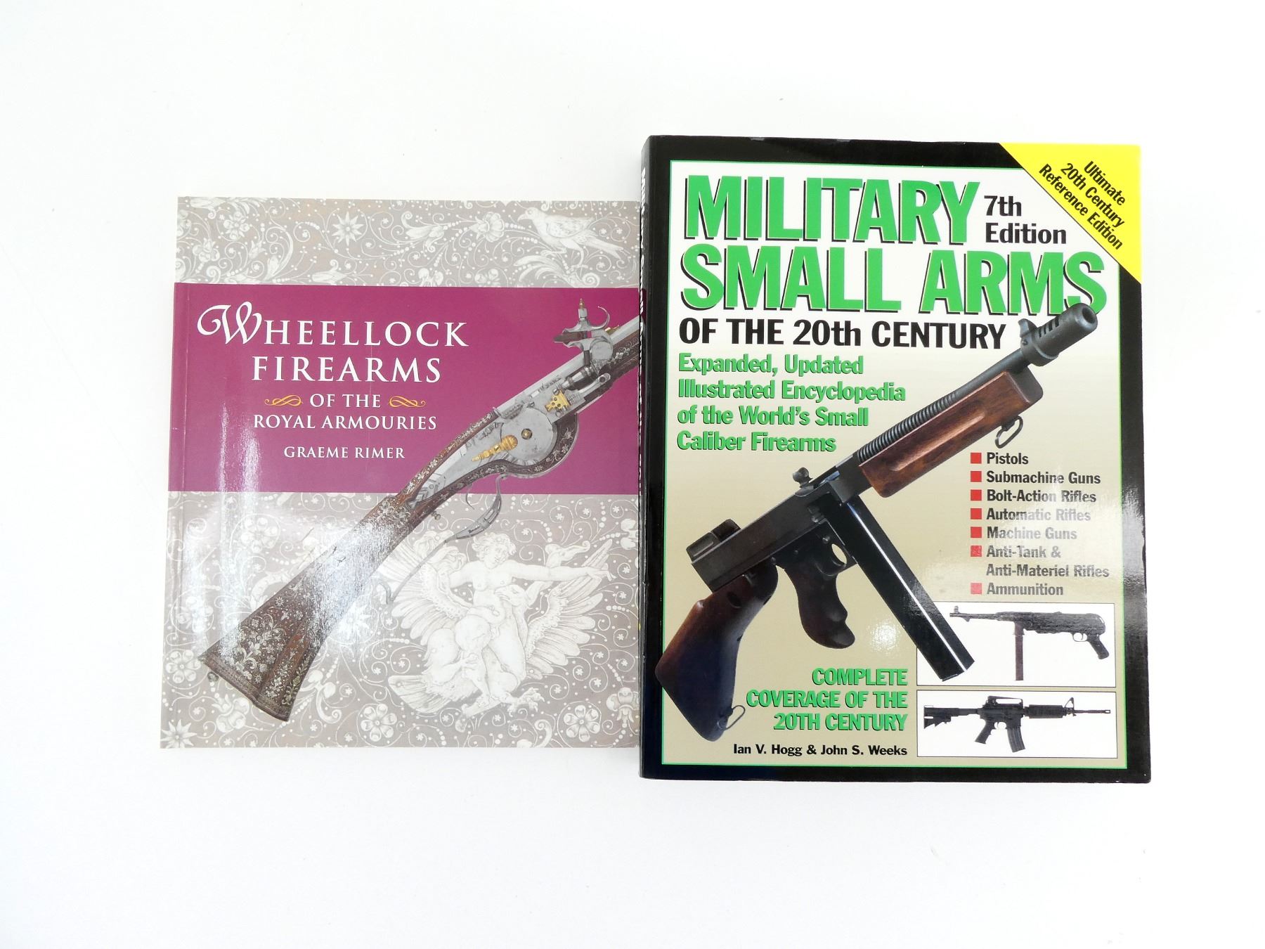 SOFT COVERS, LOT INCLUDES; (1) "MILITARY SMALL ARMS OF THE 20TH CENTURY, 7TH EDITION" BOOK BY IAN V. HOGG & JOHN S. WEEKS, ISBN: 0-87341-824-7 & (1) "WHEELLOCK FIREARMS OF THE ROYAL ARMOURIES" BOOK BY GRAEME RIMER. SEE PHOTOS.