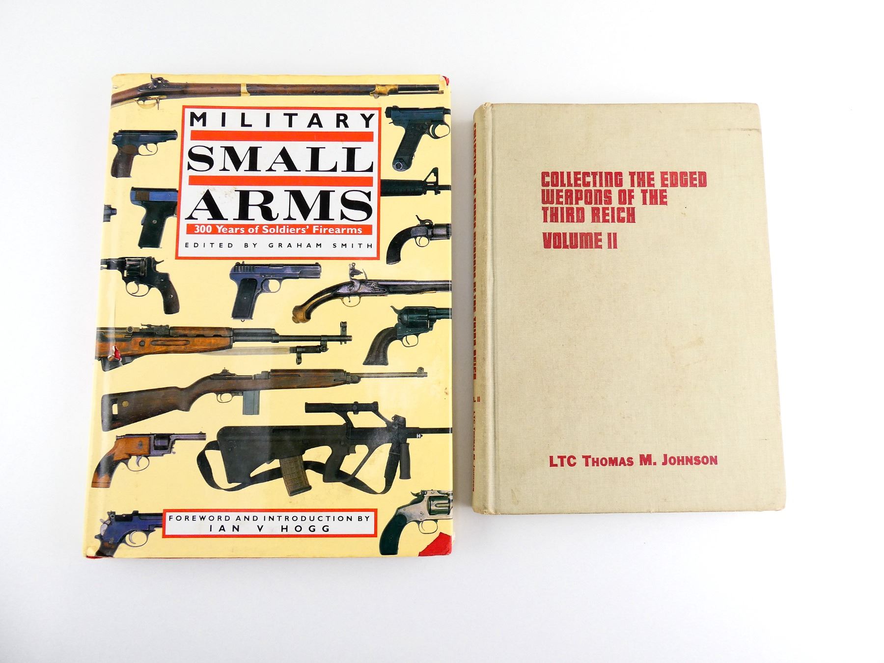 LOT INCLUDES; (1) "COLLECTING THE EDGED WEAPONS OF THE THIRD REICH VOLUME II" BOOK BY THOMAS M. JOHNSON, HARD COVER, ISBN: 0-9600906-2-2 & (1) "MILITARY SMALL ARMS, 300 YEARS OF SOLDIERS' FIREARMS" BOOK EDITED BY GRAHAM SMITH, HARD COVER WITH DUST COVER, ISBN:0-86101-688-2. SEE PHOTOS.