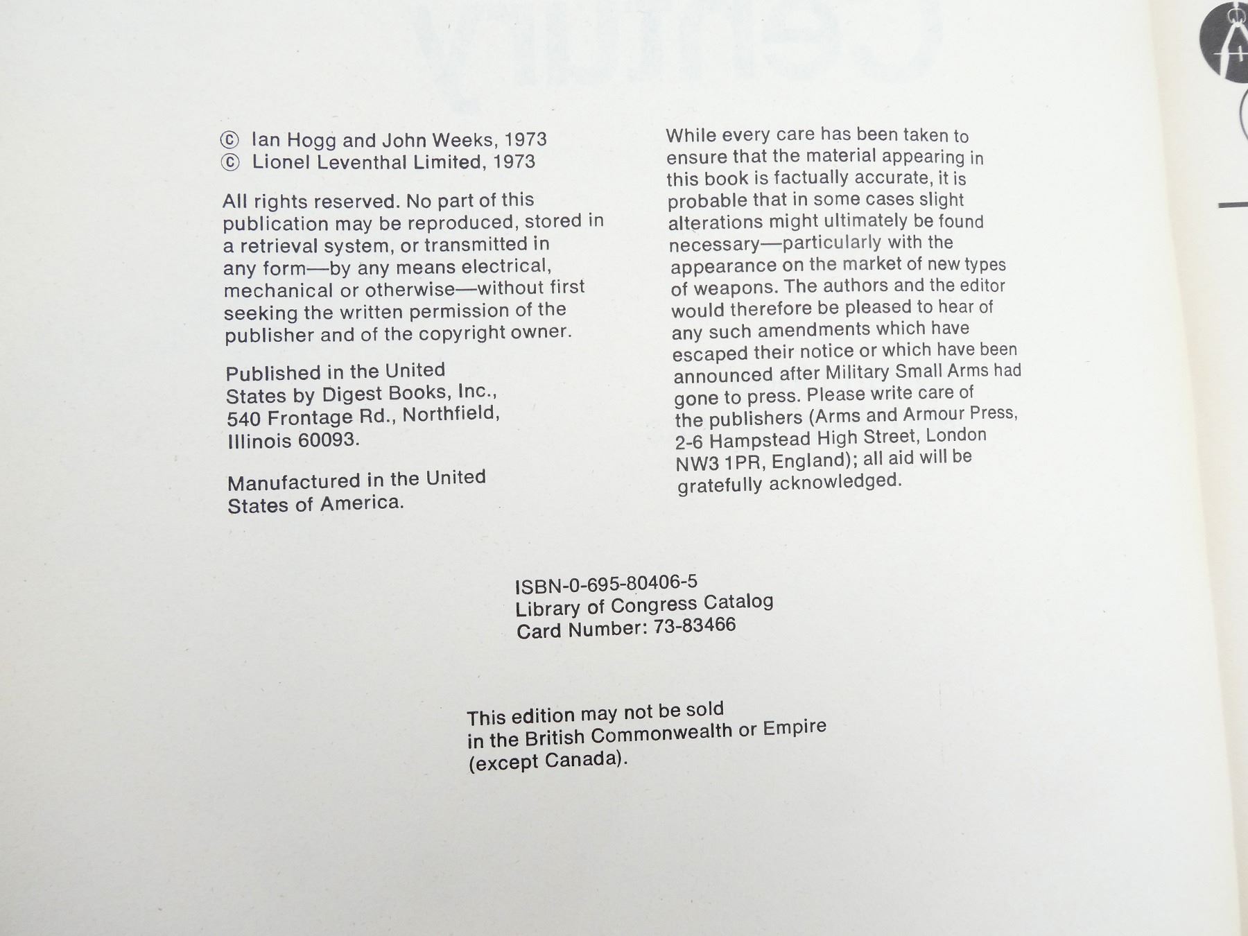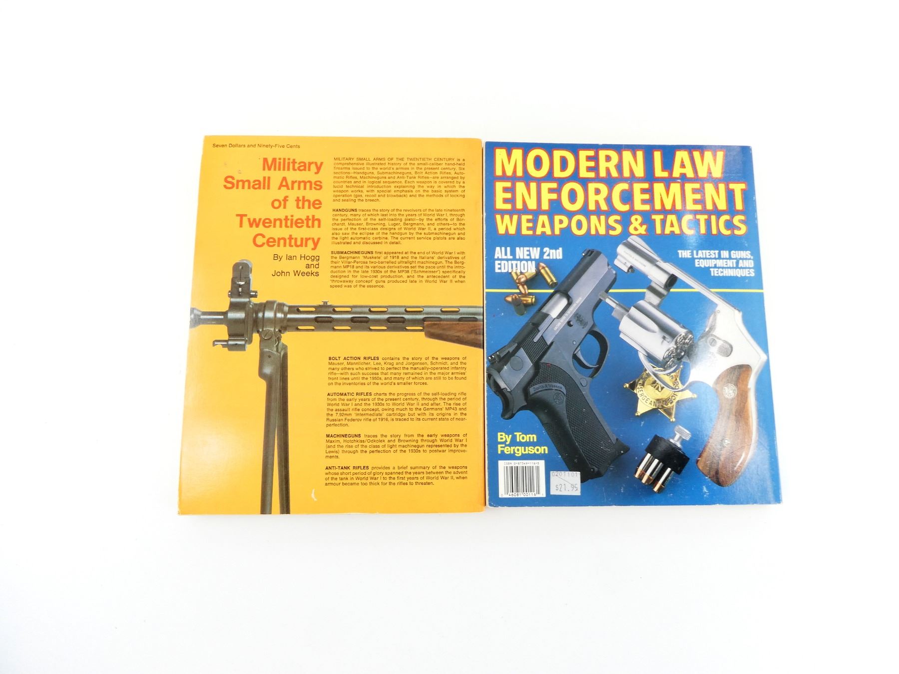 SOFT COVERS, LOT INCLUDES; (1) "MODERN LAW ENFORCEMENT WEAPONS & TACTICS" BOOK BY TOM FERGUSON, ISBN: 0-87349-116-5 & (1) "MILITARY SMALL ARMS OF THE TWENTIETH CENTURY" BOOK BY IAN HOGG & JOHN WEEKS, ISBN: 0-695-80406-5. SEE PHOTOS.