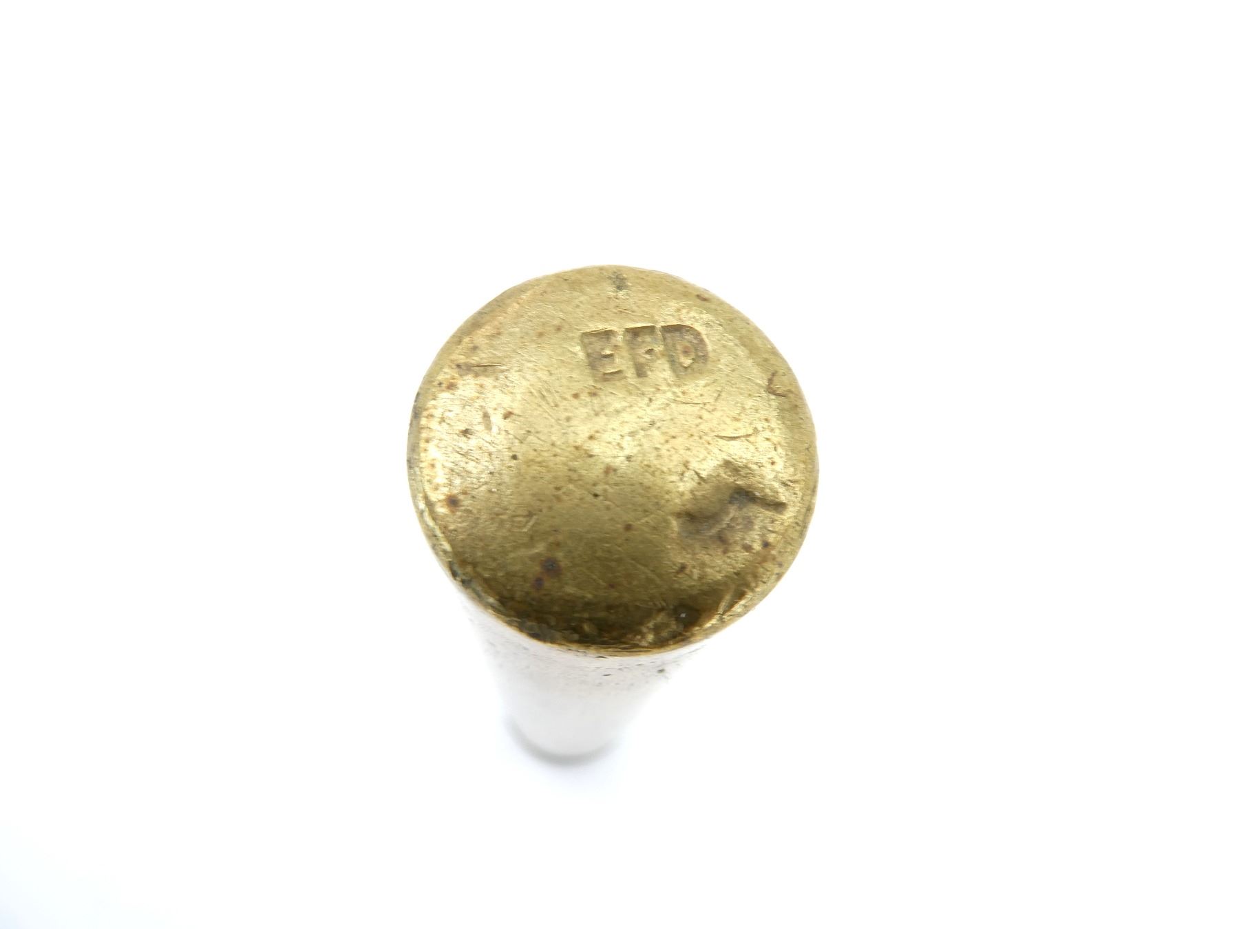 LOT INCLUDES; (1) BRITISH MILITARY ROPE PULL-THRU WITH BRASS WEIGHT, WEIGHT MARKED: CROWN OVER "?" OVER "13" WITH BROAD ARROW, OAL APPROX. 51", (1) BRITISH MILITARY BRASS OILER WITH SPOON, SPOON INTACT, BOTTOM MARKED: "EFD" WITH BROAD ARROW, OAL APPROX. 3.75", (2) CANADIAN / BRITISH MILITARY BLUE / TAN P37 WEB CANVAS LEE ENFIELD STYLE SLINGS, NO VISIBLE MARKINGS, BRASS ENDS, OALS APPROX. 44.5" & 47.5" & (1) BELGIAN LEE ENFIELD GREEN CANVAS AMMO POUCH, MARKED: "ABL, VOLH, '52", 2-POCKET WITH METAL BELT HOOKS. SEE PHOTOS.