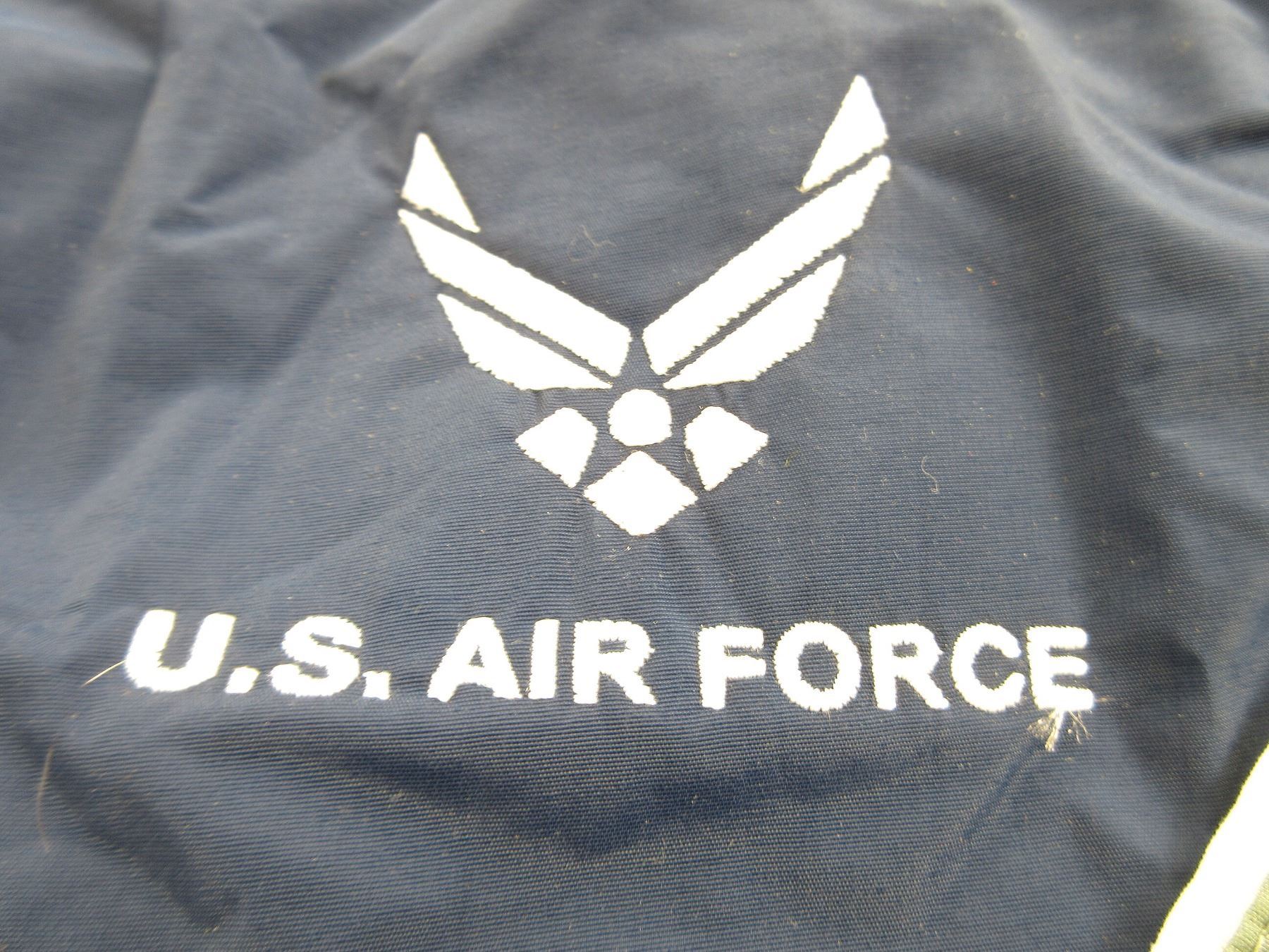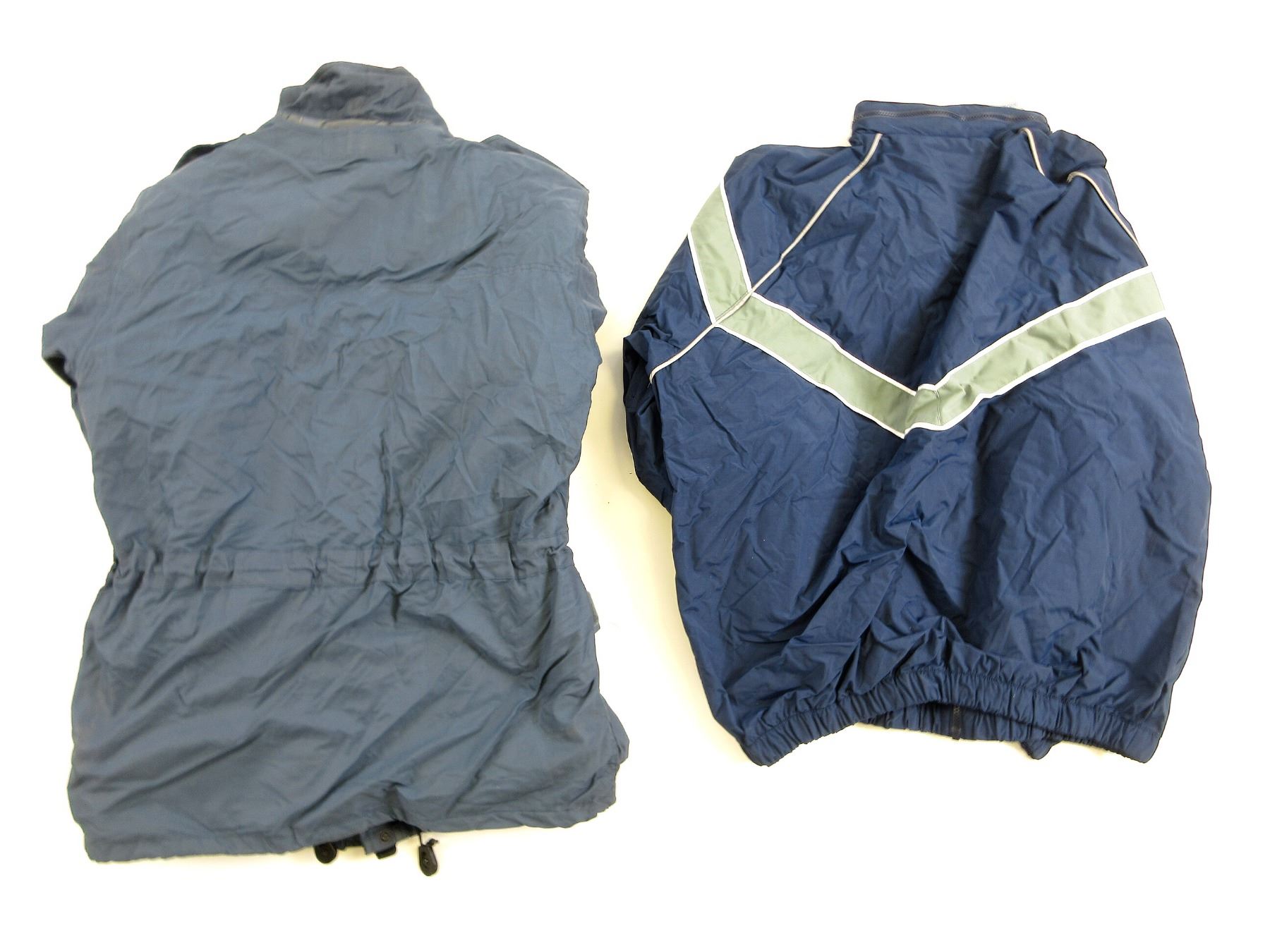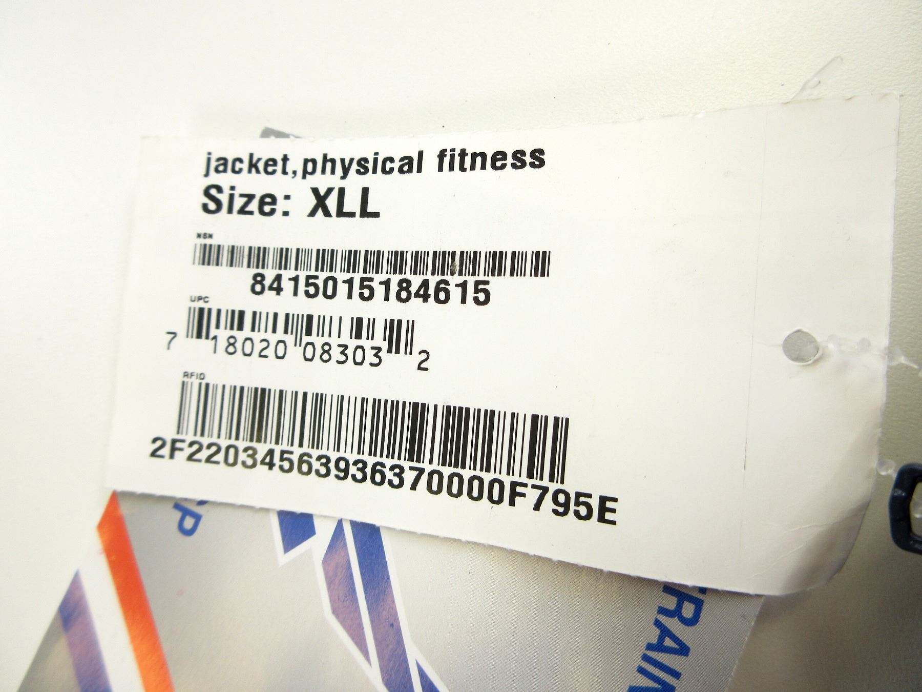 LOT INCLUDES; (1) CANADIAN MILITARY BLUE COLD / WET WEATHER PARKA, SIZE MEDIUM-TALL, ZIPPERED-FLY (WORKS), VARIOUS MARKINGS, BUILT IN HOOD, SHOWS WEAR & (1) U.S. AIRFORCE PHYSICAL FITNESS TRAINING JACKET, SIZE XL-LONG, MARKED: "JWOD, SKILCRAFT, X-LARGE/LONG, 8415-01-518-4615, JACKET, AF, PTU" ETC. & VARIOUS OTHER MARKINGS, APPEARS NOS, TAGS STILL ATTACHED. SEE PHOTOS.