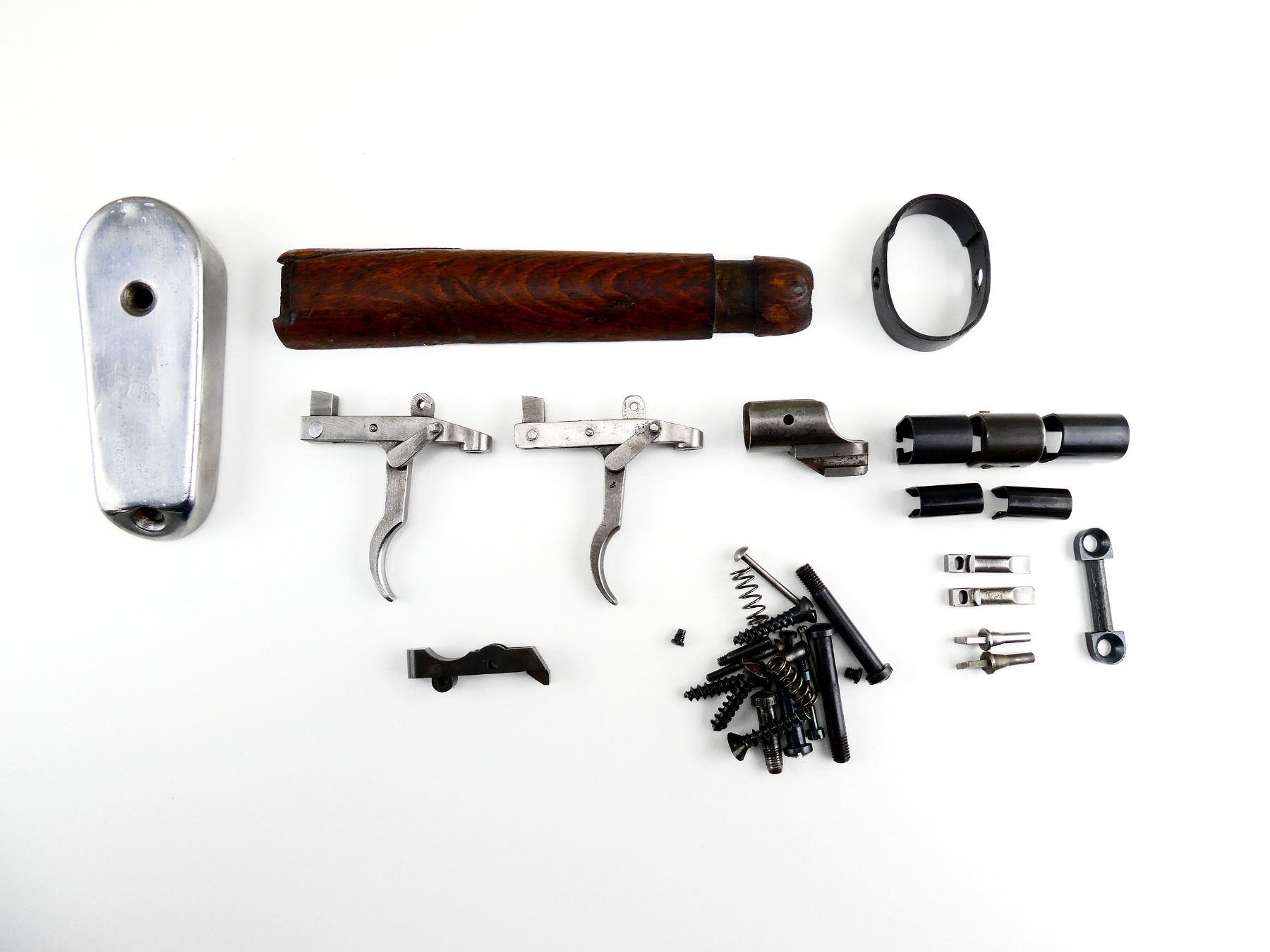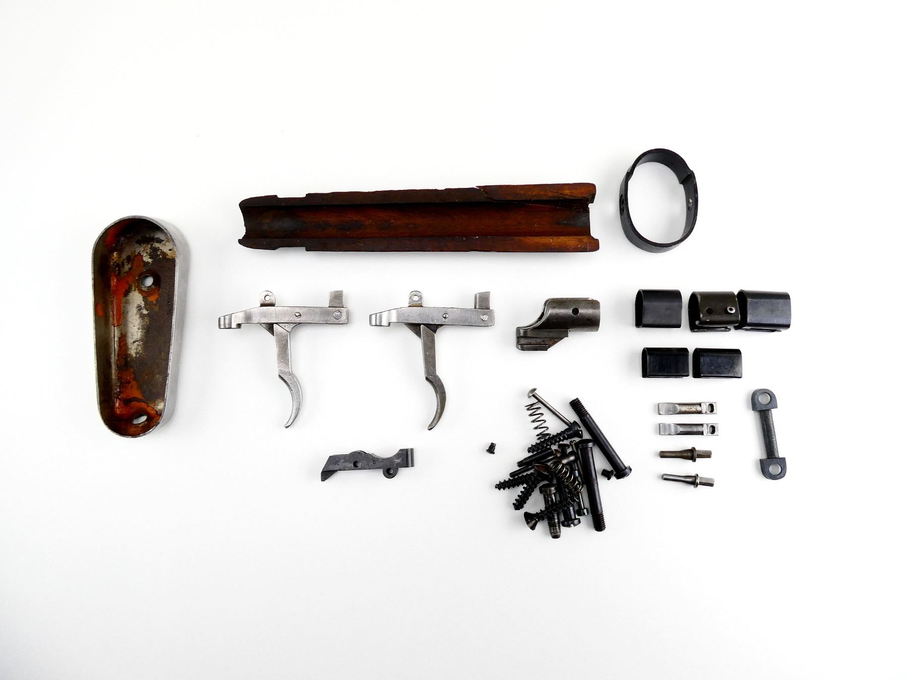 LOT INCLUDES; BUTT PLATE, HAND GUARD, TRIGGERS, BAYONET LUG, FRONT SIGHT HOOD, SCREWS, ETC. MAY REQUIRE FITTING. SEE PHOTOS.