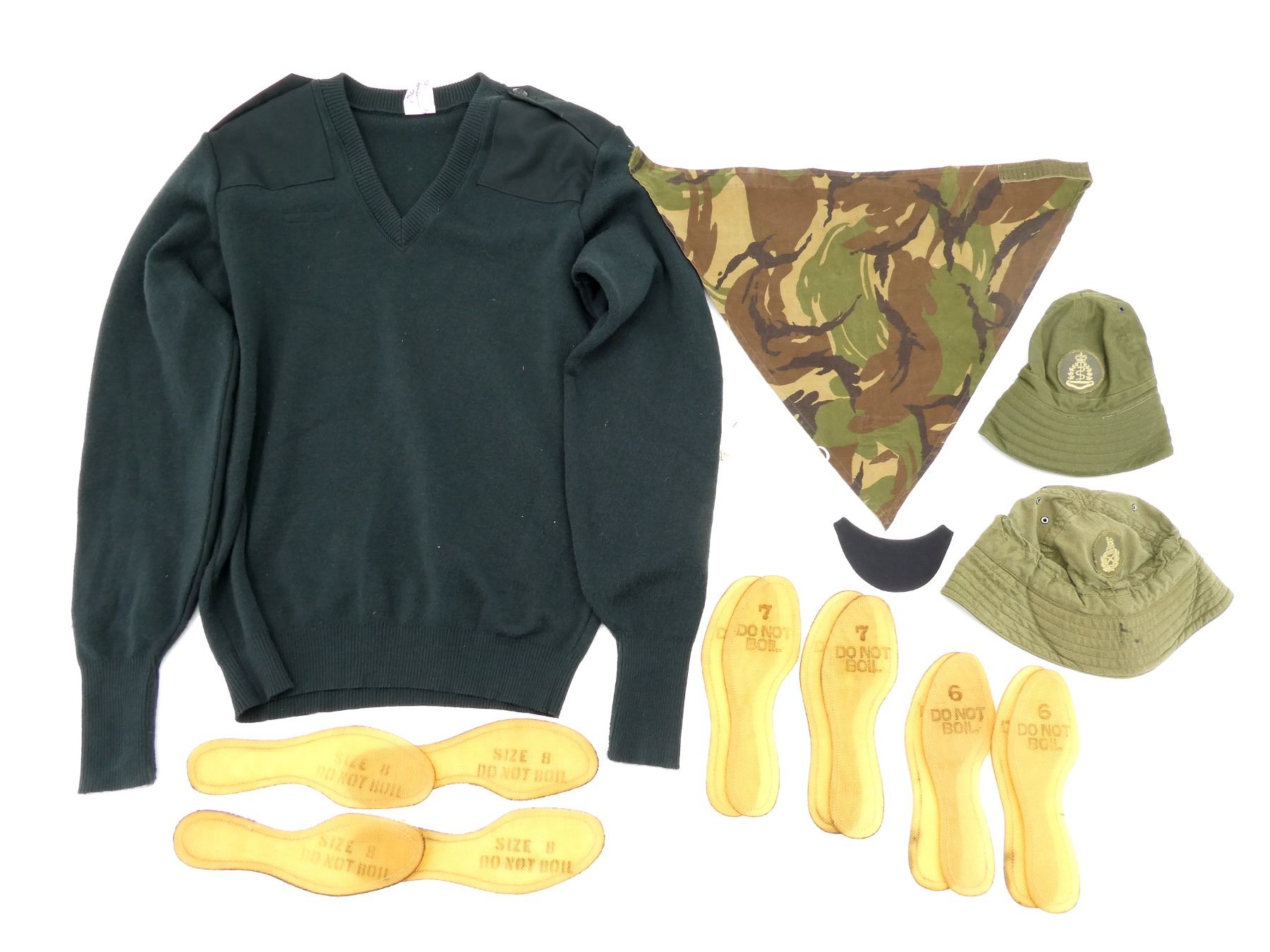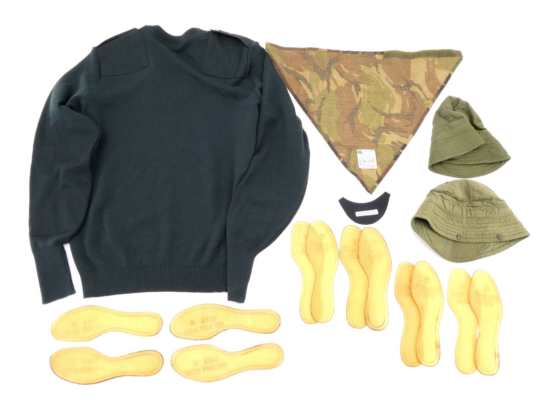 ASSORTED MILITARY SWEATER, INSOLES, KERCHIEF, ETC. LOT