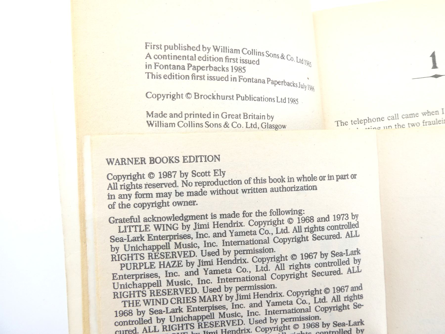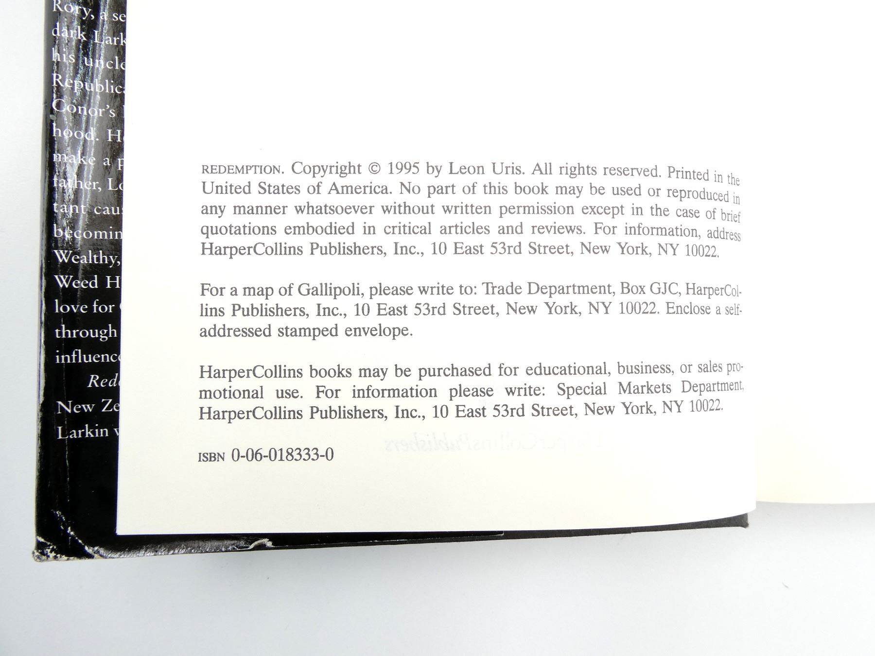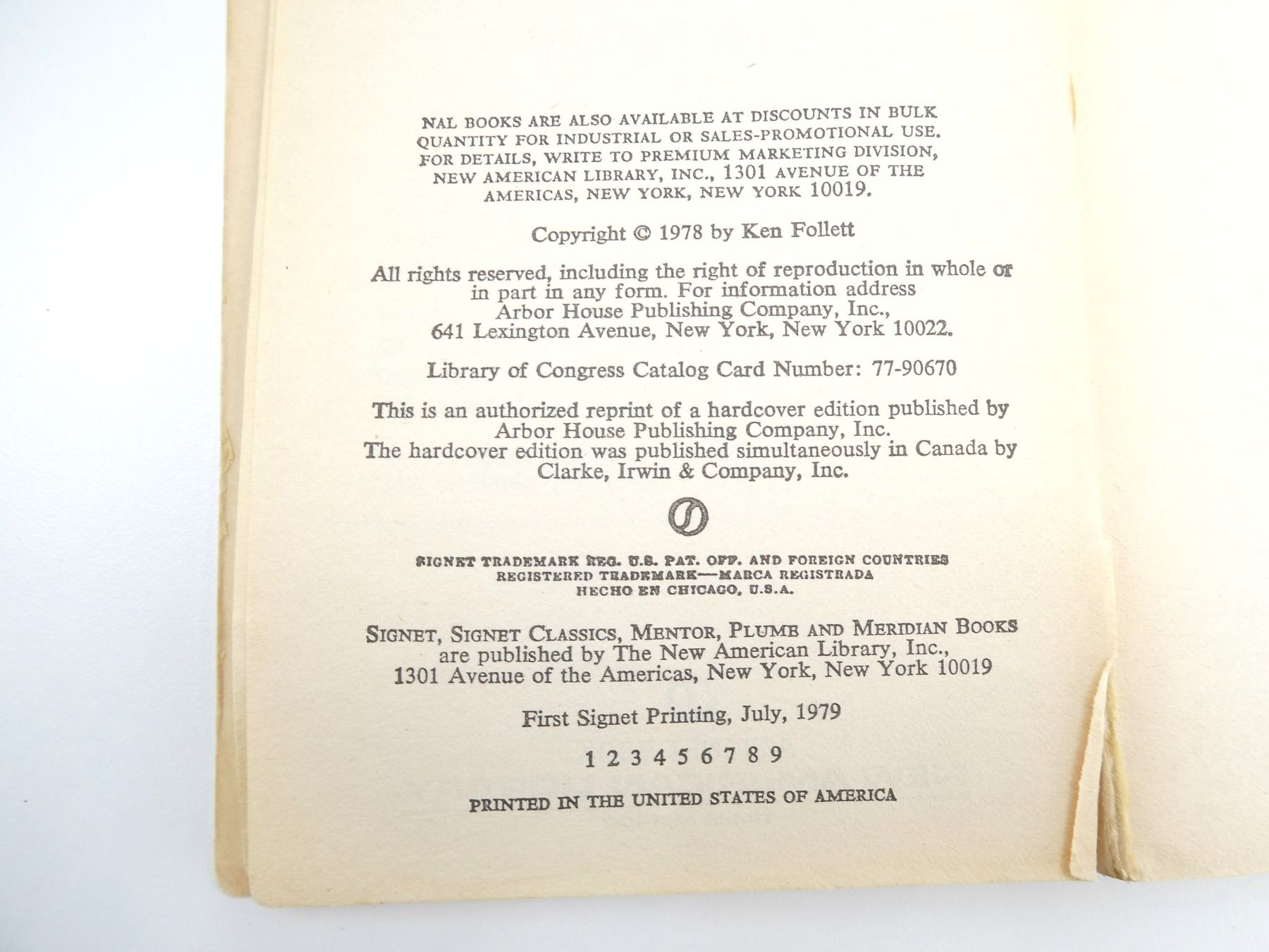 LOT INCLUDES; (1) "SEVEN MINUTES PAST MIDNIGHT" BOOK BY WALTER WINWARD, SOFT COVER, ISBN: 0-425-05035-1, (1) "EYE OF THE NEEDLE" BOOK BY KEN FOLLETT, SOFT COVER, COPYRIGHT 1978, (1) "STAR LIGHT" BOOK BY SCOTT ELY, SOFT COVER, ISBN: 0-446-34911-9, (1) "JUGGERNAUT" BOOK BY DESMOND BAGLEY, SOFT COVER, ISBN: 0-00-617250-4, (1) THE DRUMBEAT OF JIMMY SANDS" BOOK BY MURRAY DAVIES, SOFT COVER, ISBN: 0-00-651155-4 & (1) "REDEMPTION, THE EPIC STORY OF TRINITY CONTINUES…" BOOK BY LEON URIS, HARD COVER WITH DUST COVER, ISBN: 0-06-018333-0. SEE PHOTOS.