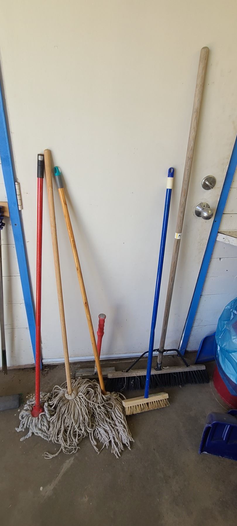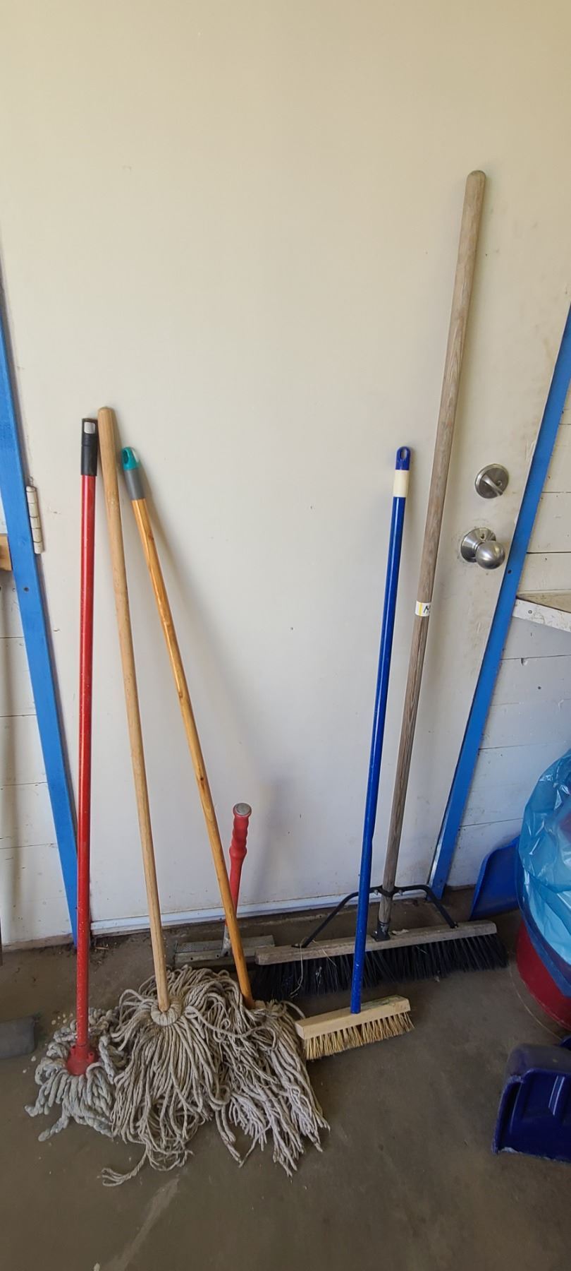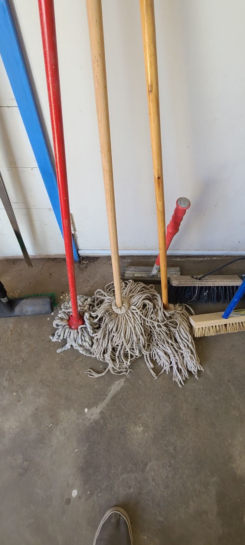 ASSORTED MOPS AND BROOMS