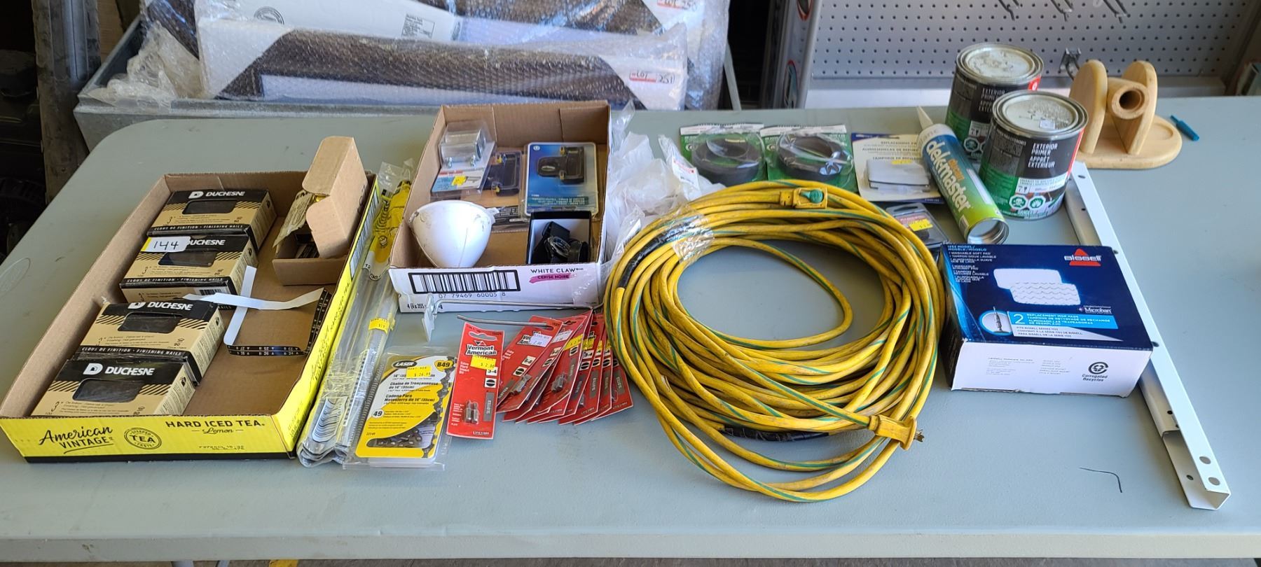 ASSORTED NAILS, TOOLS, POWERCORD AND MISC