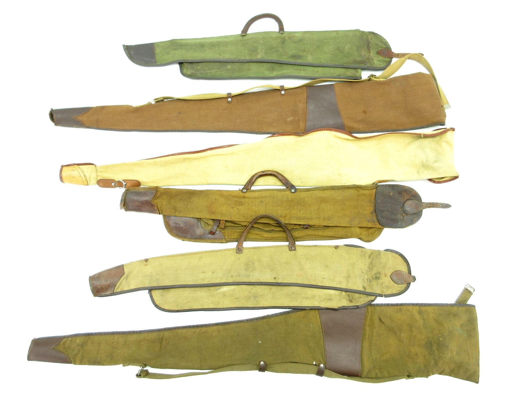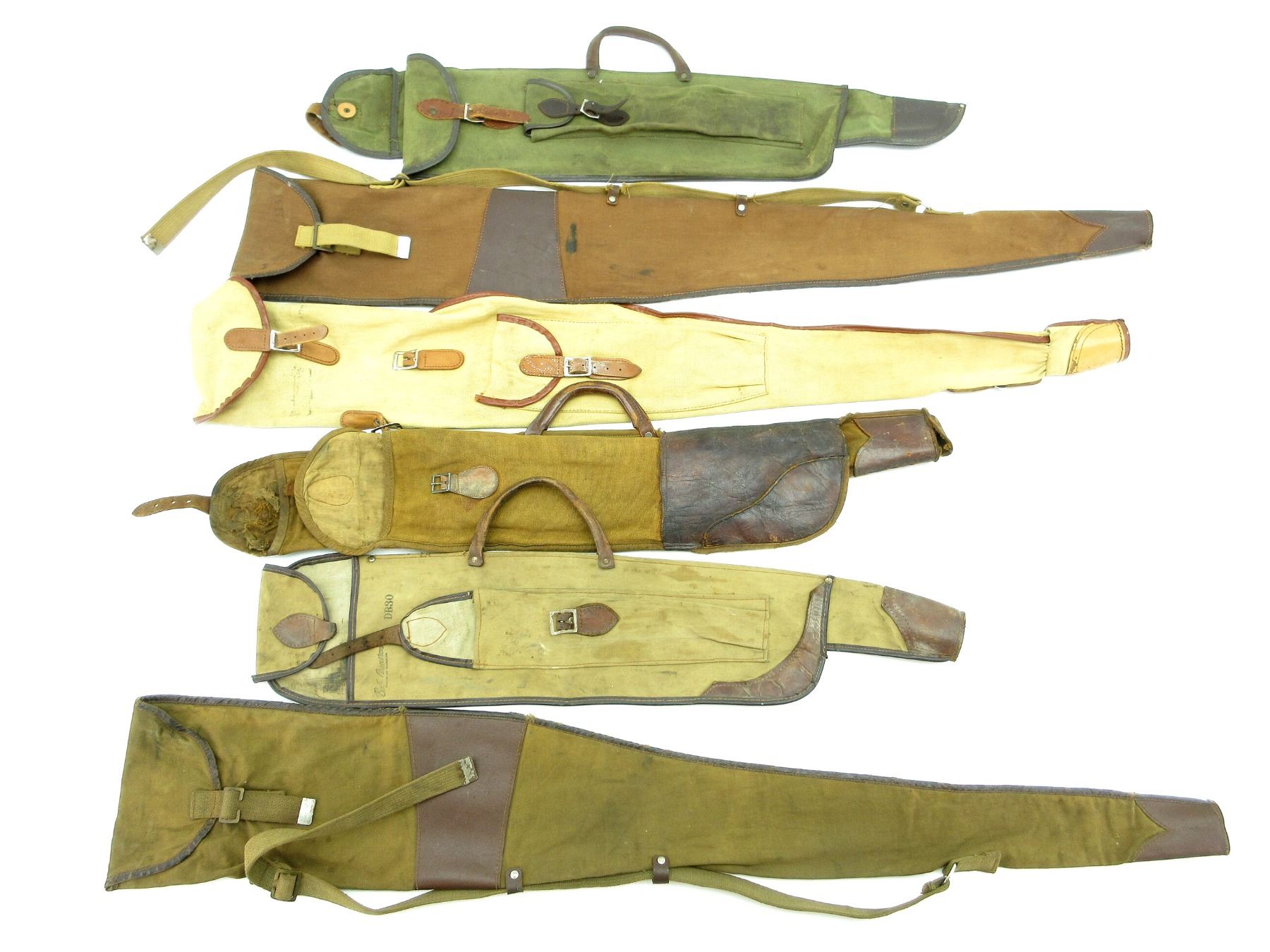 LOT INCLUDES; (6) NON-PADDED GUN CASES, (2) WITH SHOULDER STRAPS, (3) WITH CARRY HANDLES, STRAP AND BUCKELS, SOME HAVE BROKEN STRAPS, APPROX. OAL 27"-44", SHOWS WEAR AND TEAR FROM USAGE, SEE PHOTOS.