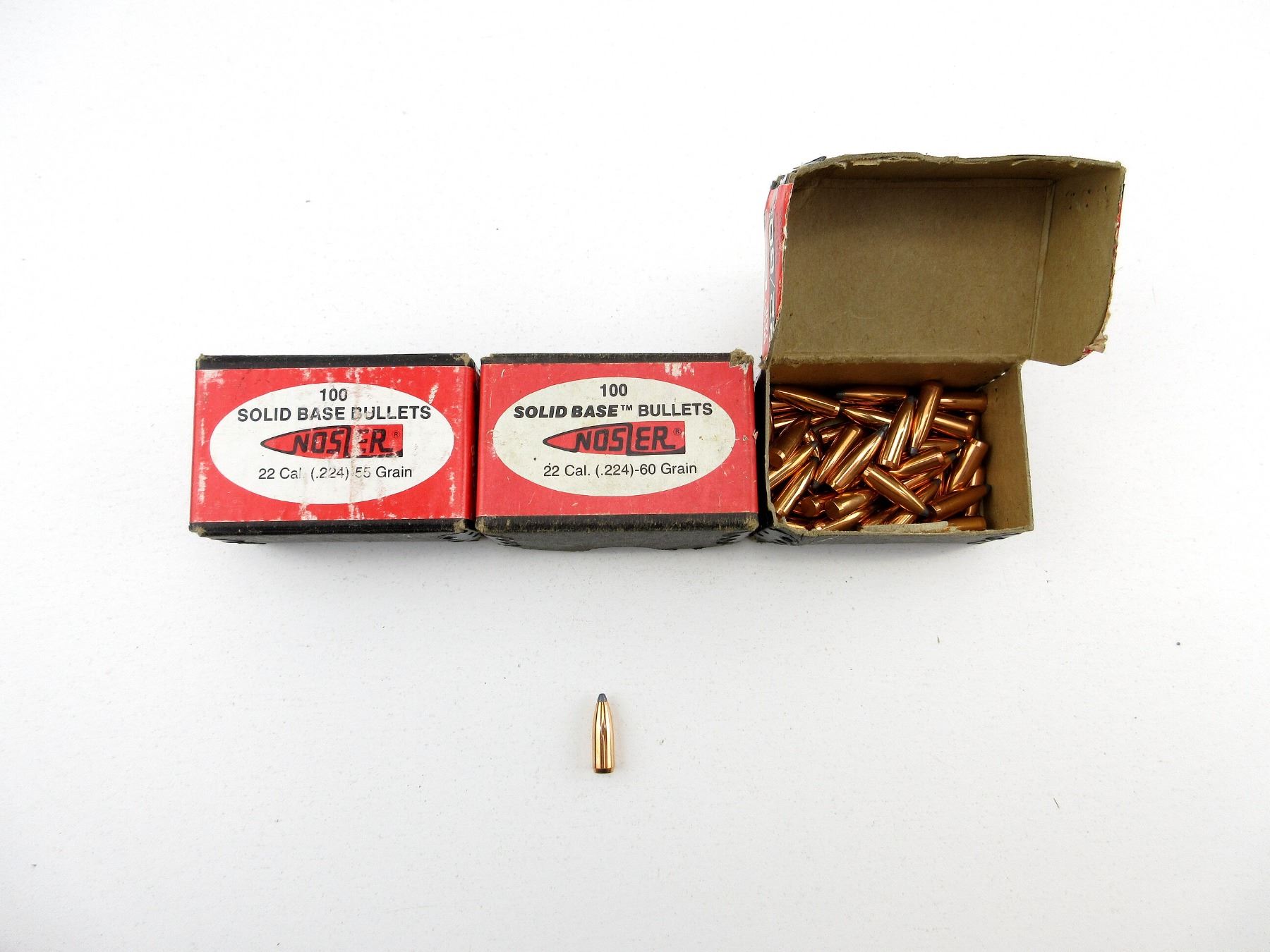 LOT INCLUDES; APPROX. (245) BULLETS, APPROX. DIA .224", 55 GRNS (STATED ON BOX NOT CONFIRMED) SPITZER BT & 60 GRNS (STATED ON BOXES NOT CONFIRMED) SPITZER BT.