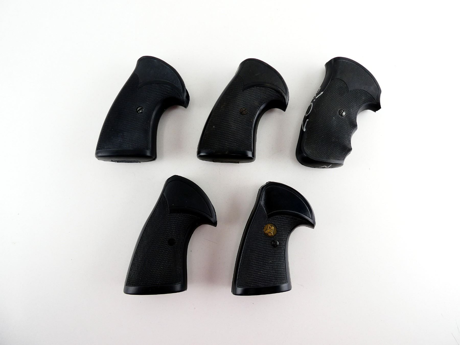 LOT INCLUDES; (1) "K" FRAME CHECKERED BLACK RUBBER MONO GRIP, WITH SCREW, (1) "L" FRAME CHECKERED BLACK RUBBER MONO GRIP, WITH SCREW, (2) "N" FRAME CHECKERED BLACK RUBBER MONO GRIPS, WITH SCREWS & (1) MODEL 29 CHECKERED BLACK RUBBER MONO GRIP, WITH SCREW. MAY REQUIRE FITTING. SEE PHOTOS.