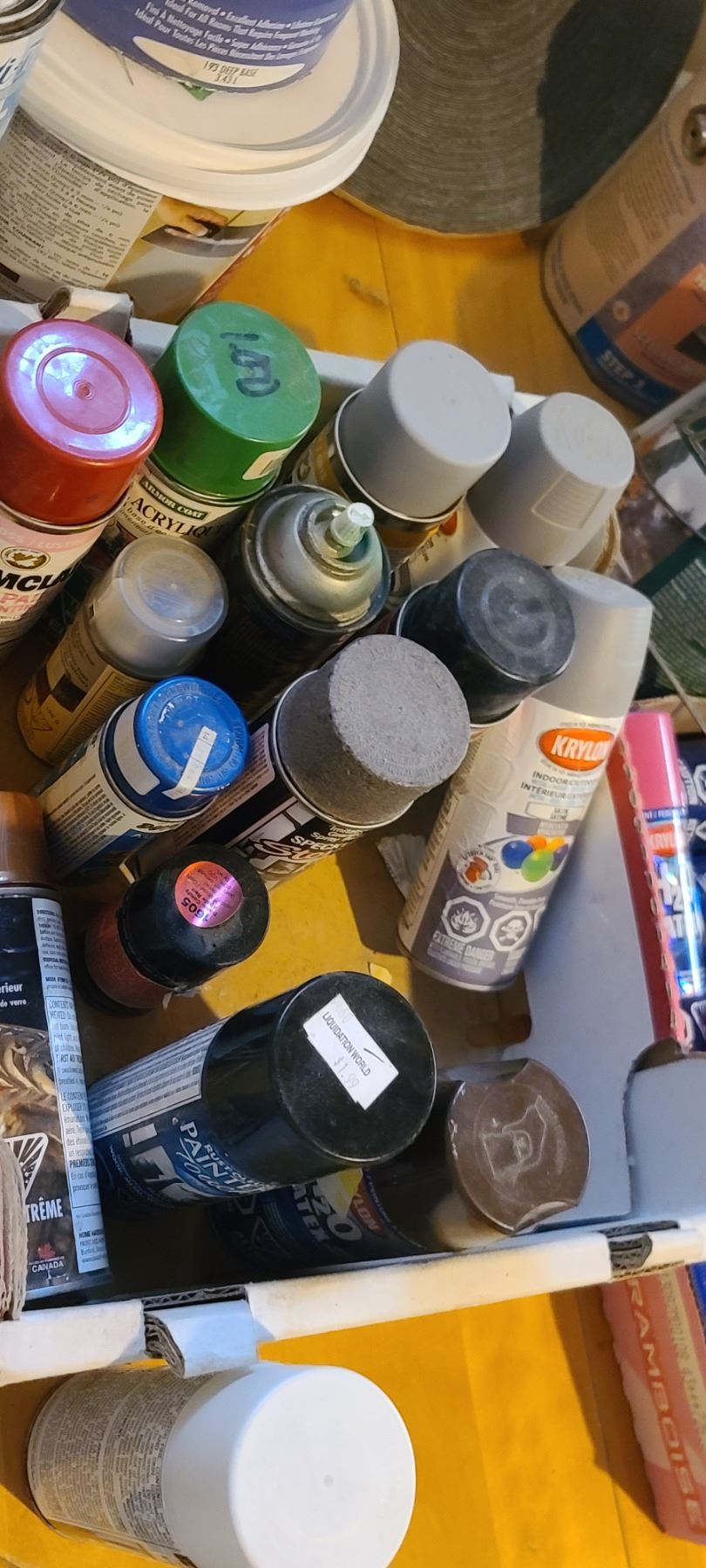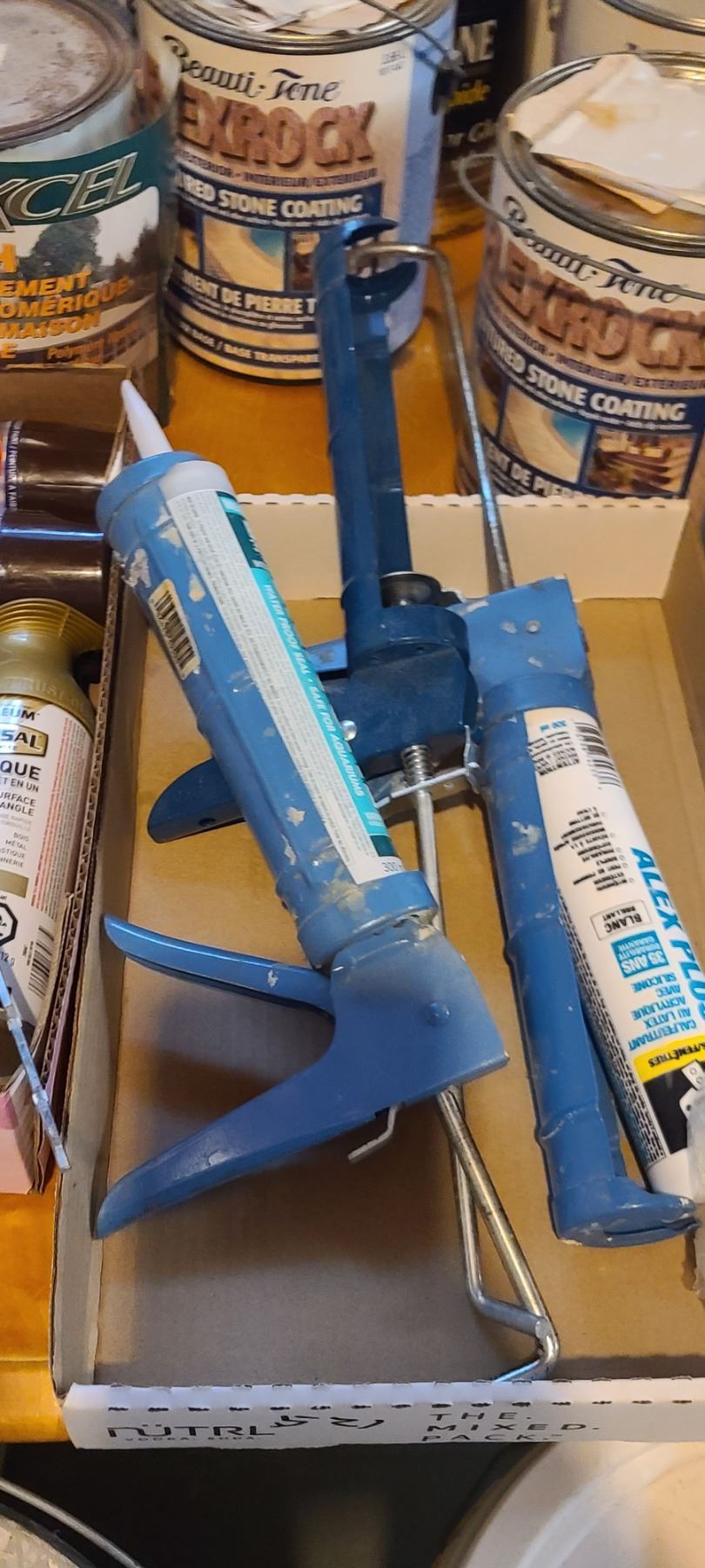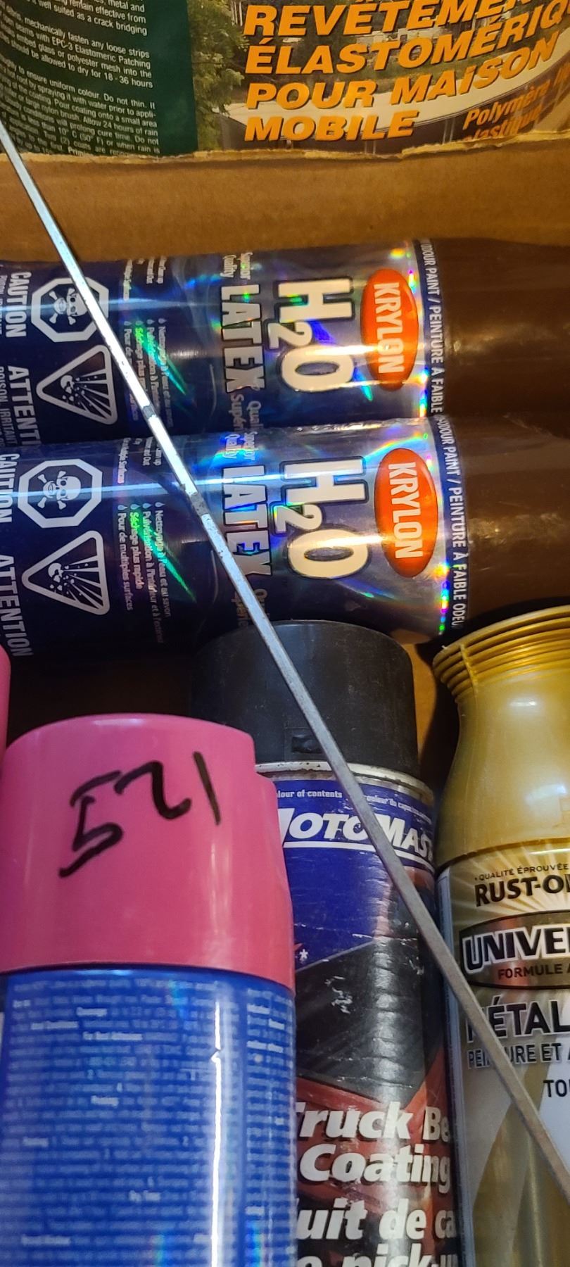 ASSORTED PAINTS(SPRAYS, QTS, & GALS); FLOOR LEVEL/PATCH, CAULKING GUNS w/ CAULK