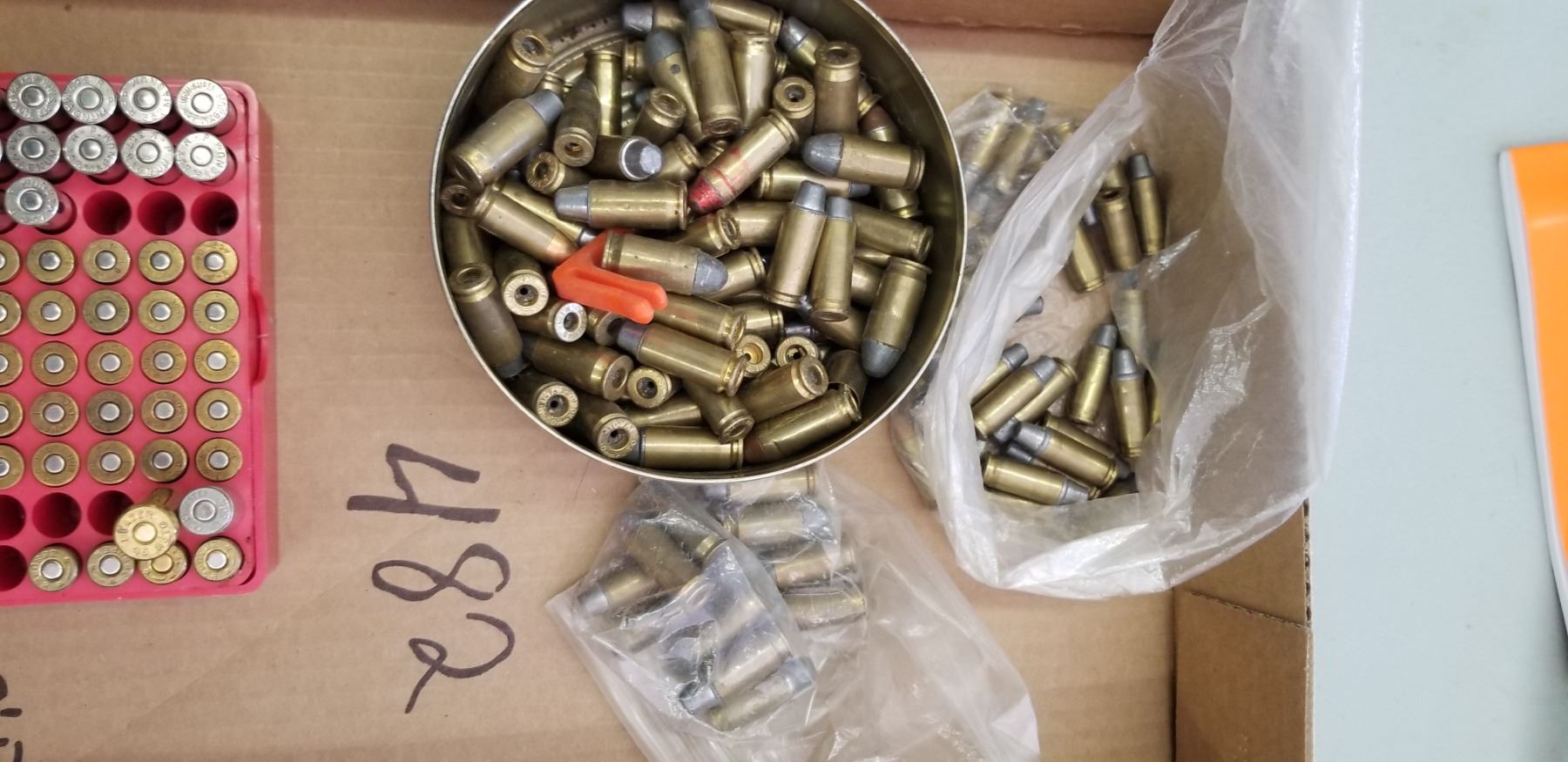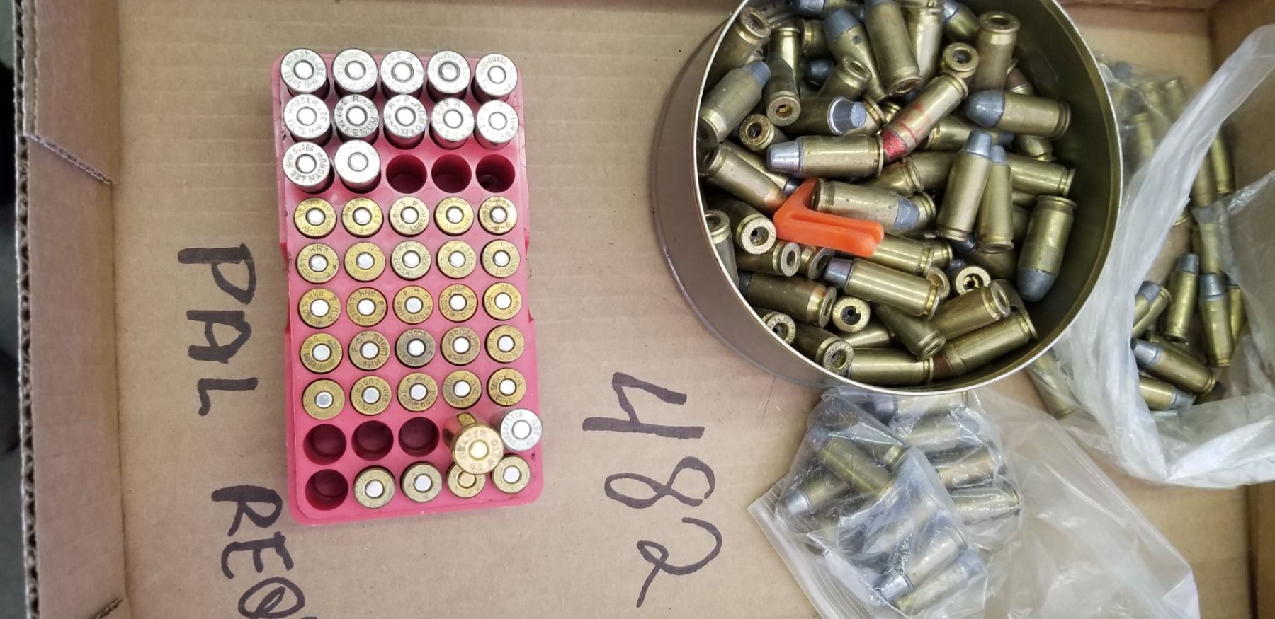 ASSORTED PISTOL AMMO, SOME WITHOUT PRIMERS.PLUS 43 LOADED BULLETS (PAL REQUIRED)