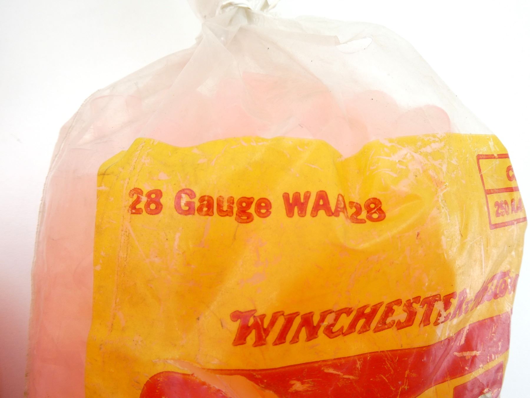LOT INCLUDES; APPROX. (350) WINCHESTER WAA 28 GA. PINK / CLEAR PLASTIC WADS, VARIOUS MARKINGS ON BAGS & APPROX. (125) CLAYBUSTER WAA 12 GA. PINK PLASTIC WADS, VARIOUS MARKINGS ON BAG. SEE PHOTOS.