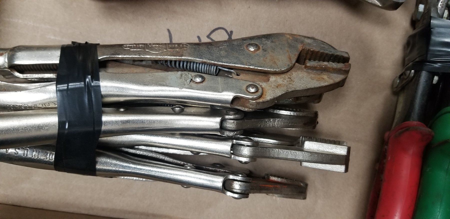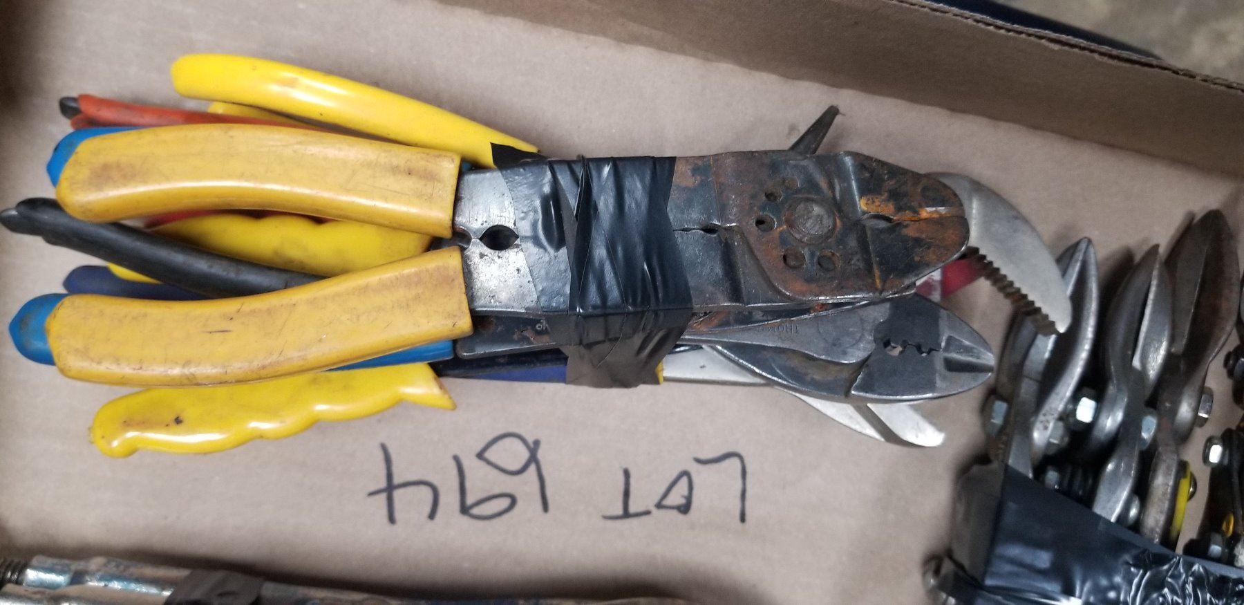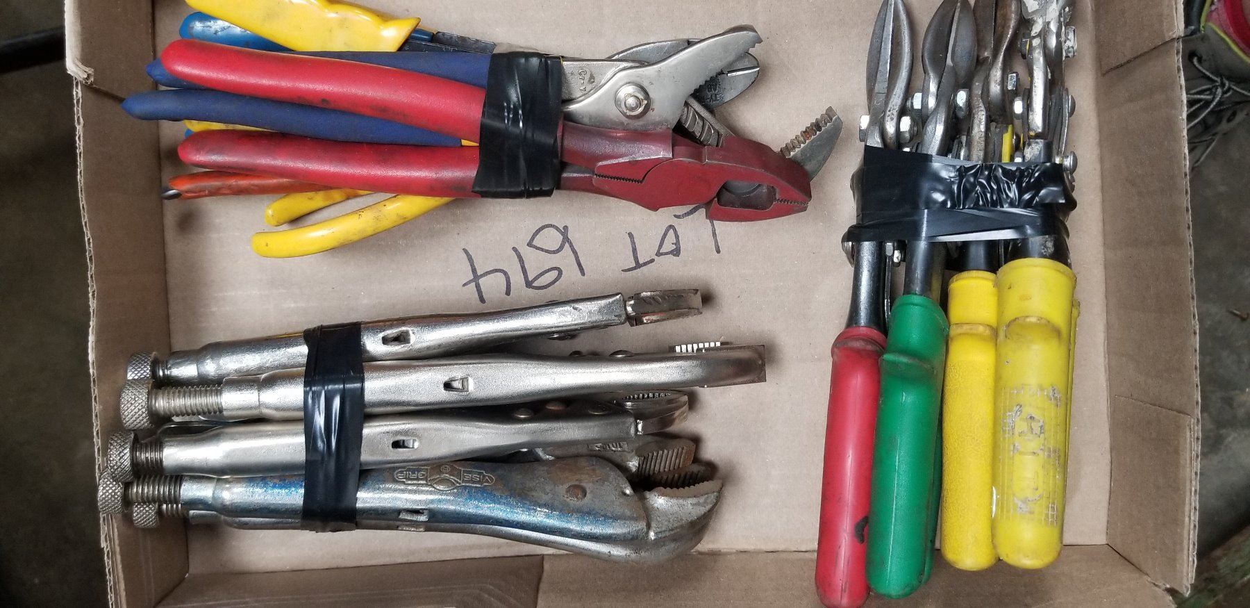 ASSORTED PLIERS, TINSNIPS, VICE GRIPS