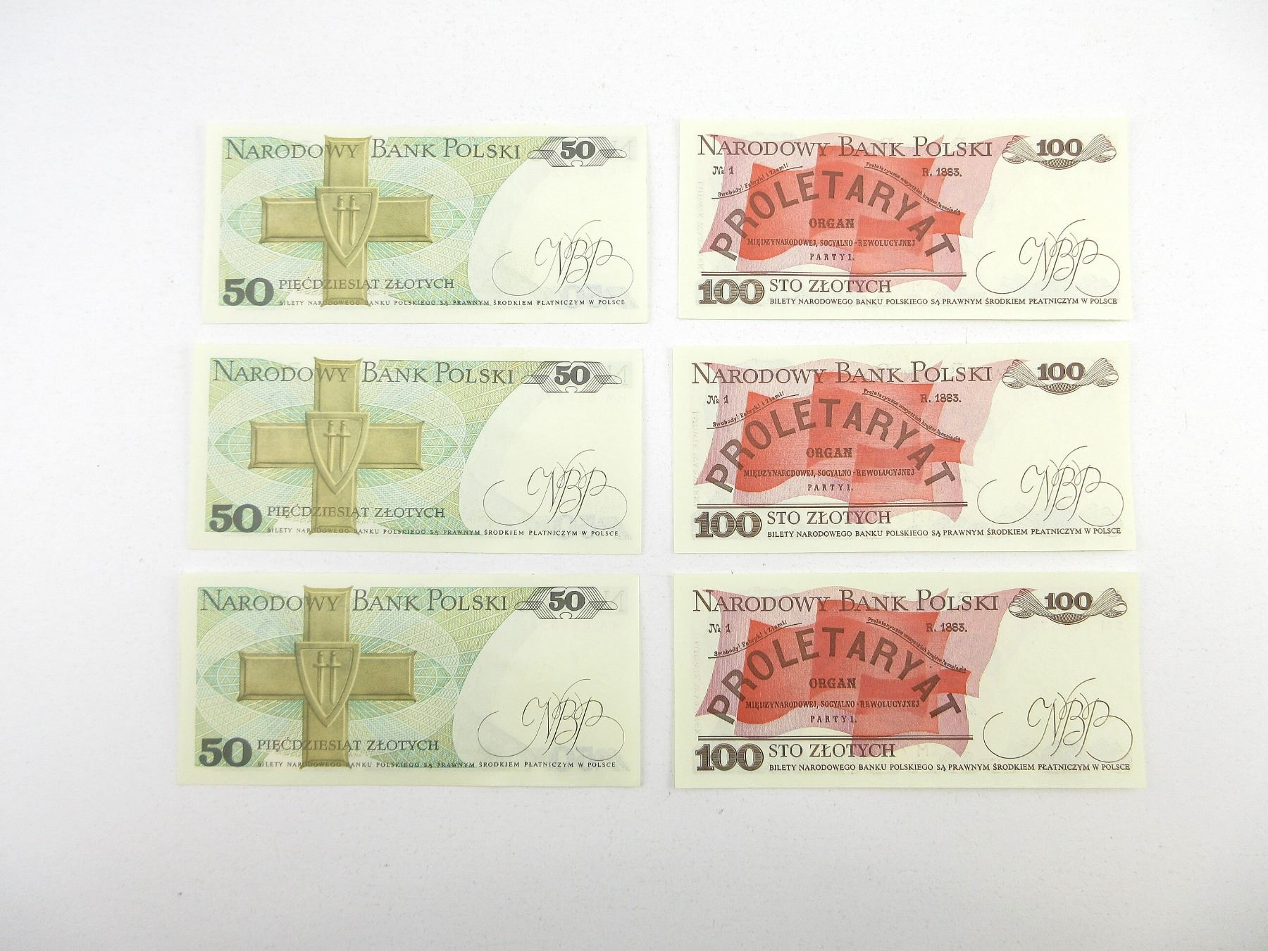 LOT INCLUDES; (3) 100 ZLOTY BANK NOTES & (3) 50 ZLOTY BANK NOTES. SEE PHOTOS.