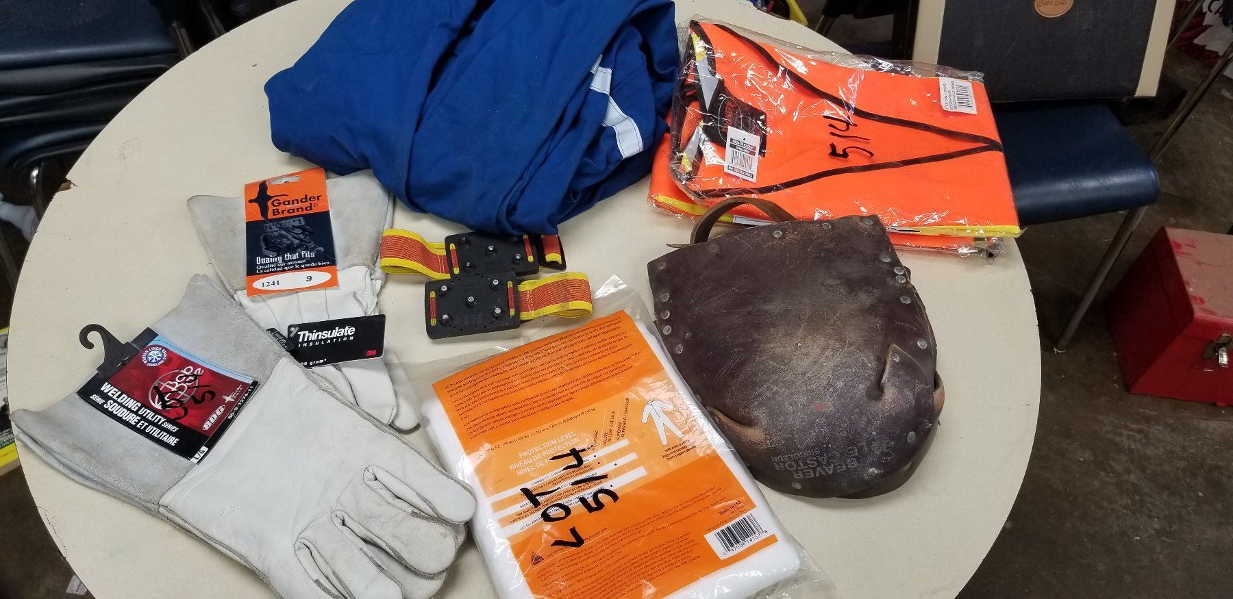 NEW CLASS 2 SAFETY VESTS QTY 2, COVERALLS, KNEE PADS, WELDING GLOVES QTY 2, AND MORE