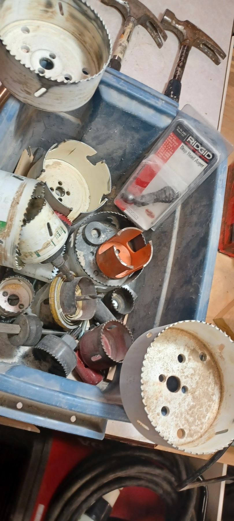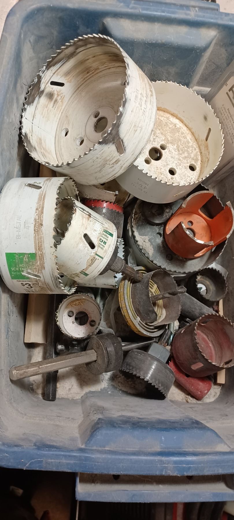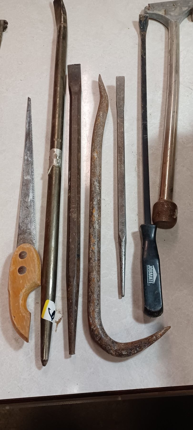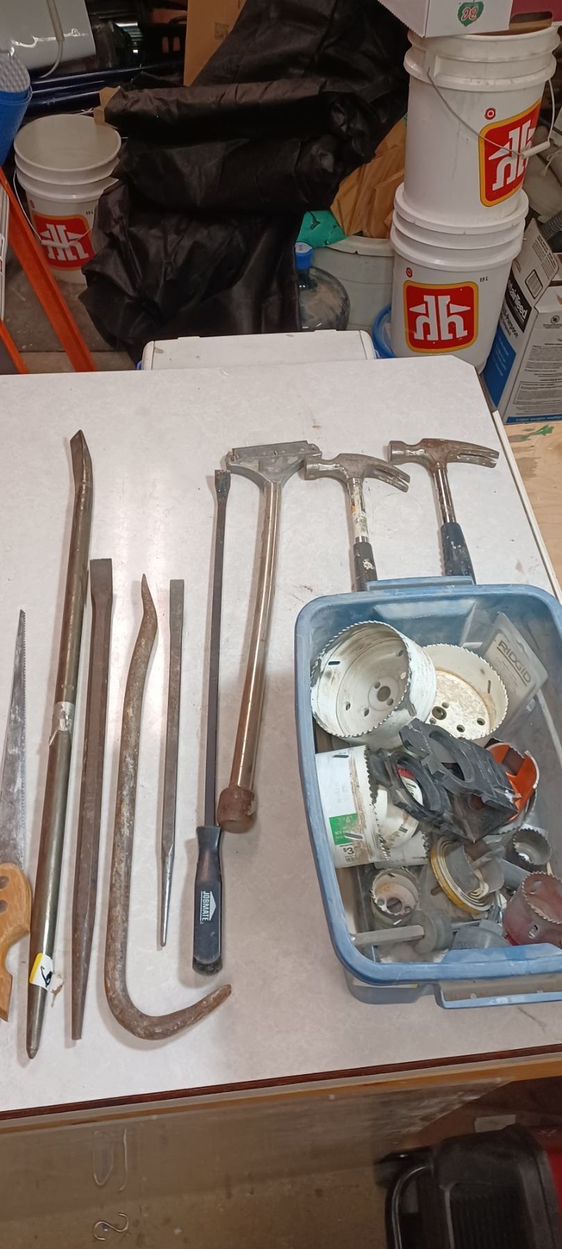 ASSORTED PRY BARS, HOLE SAW BLADES
