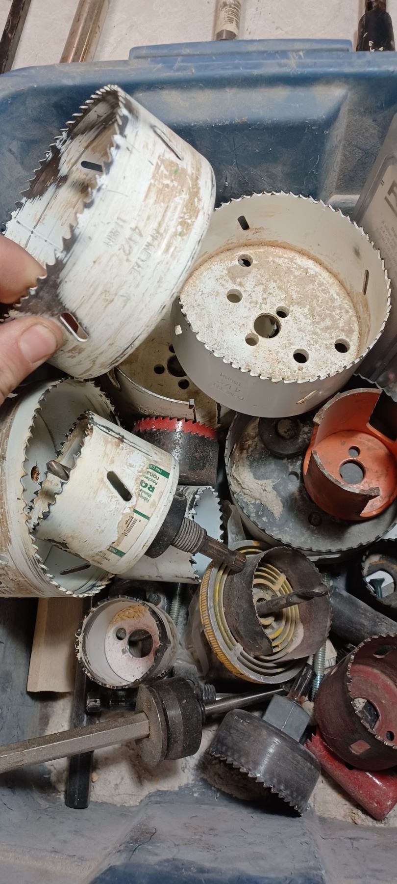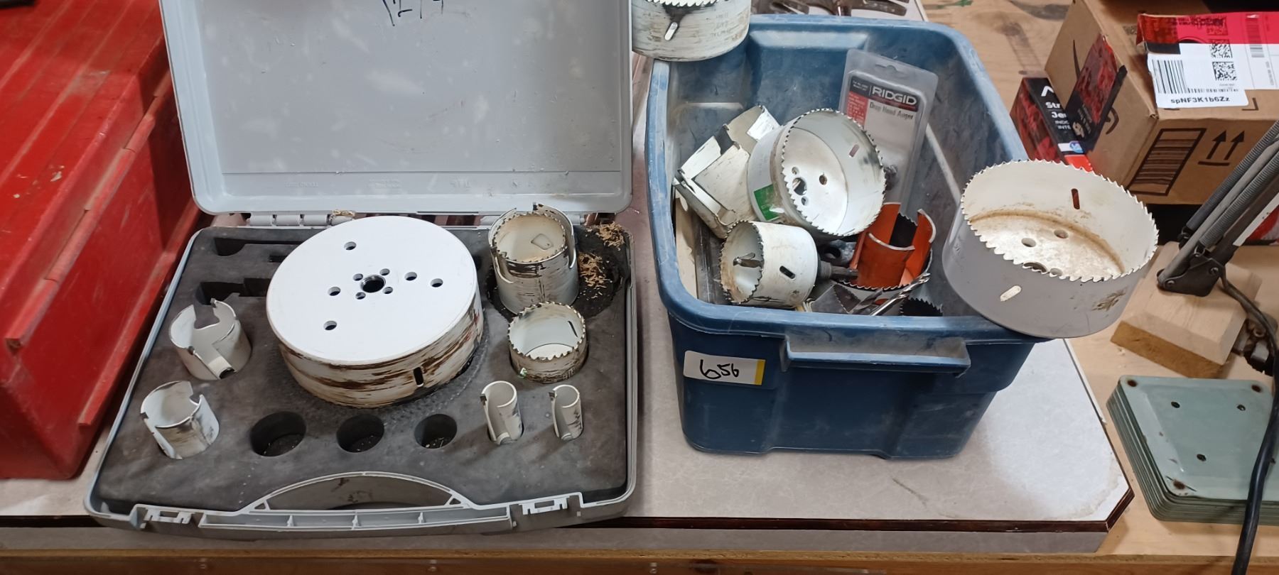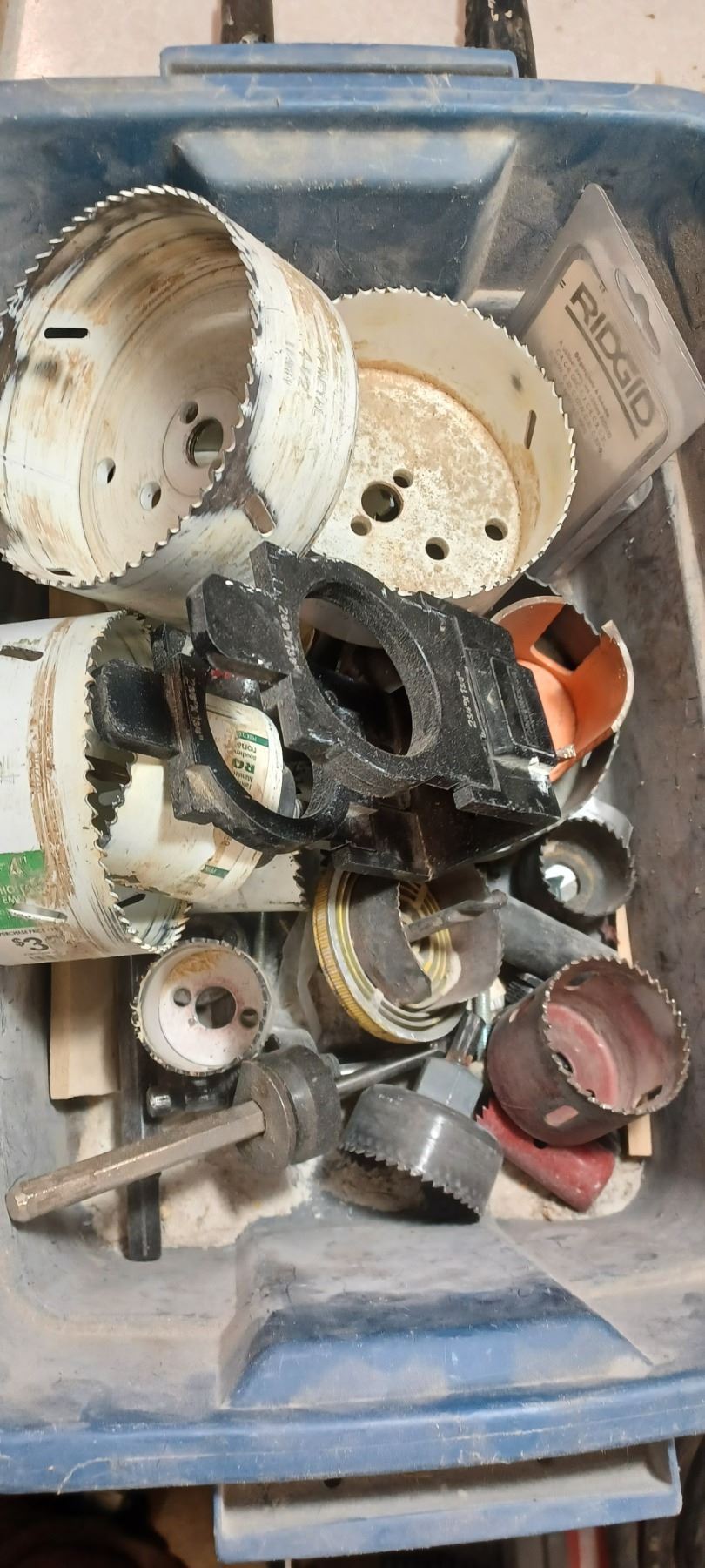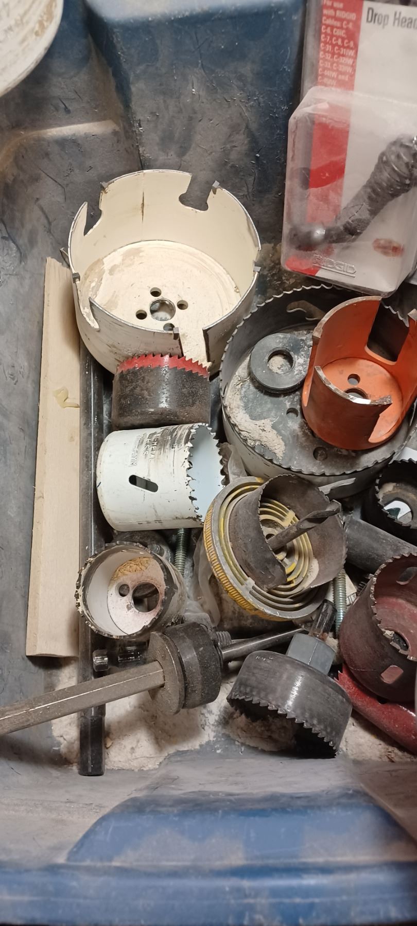 ASSORTED PRY BARS, HOLE SAW BLADES